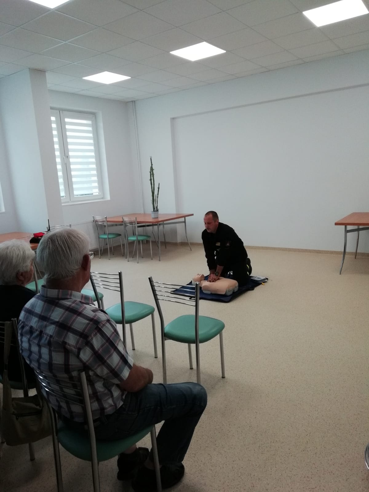 18 i 24 czerwca br. mł. ogn. Michał Koralewski z JRG PSP w Trzciance i druhna Joanna Kowalczyk z OSP Trzcianka uczestniczyli w spotkaniach z przedstawicielami najstarszej grupy wiekowej wśród społeczeństwa, czyli na spotkanie z seniorami w „Dziennym Domu Senior +” w Trzciance. Podczas spotkań poruszane były zagadnienia bezpieczeństwa a także zagrożeń związanych z okresem letnim. Spotkania były doskonałą okazją, do zapoznania z zasadami udzielenia pierwszej pomocy oraz właściwym używaniem defibrylatora AED. Poruszano również kwestie dotyczące właściwego zgłaszania zdarzeń na numery alarmowe. Uczestnicy zadawali mnóstwo pytań, co świadczy o potrzebie spotkań dotyczących prewencji społecznej, które w ostatnim czasie nie mogły się odbywać.