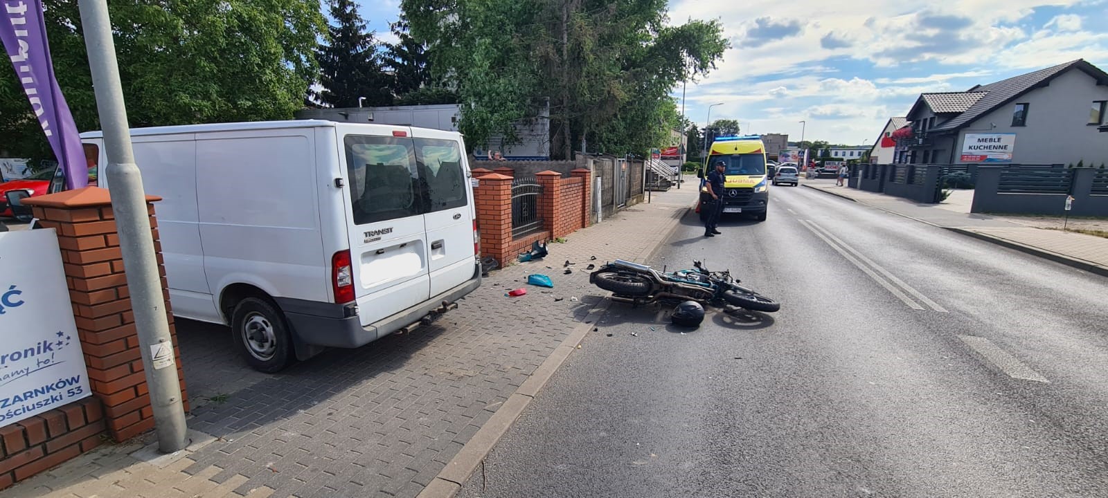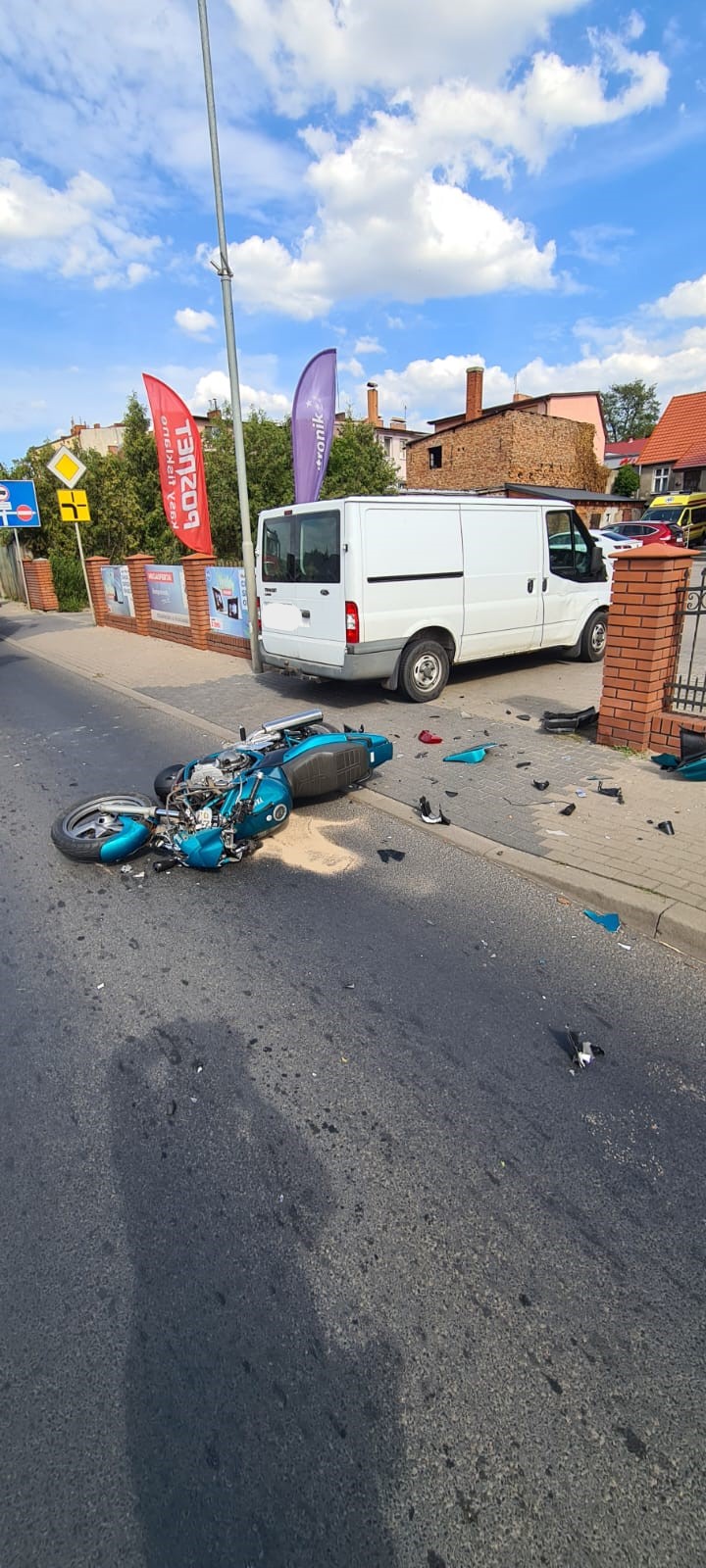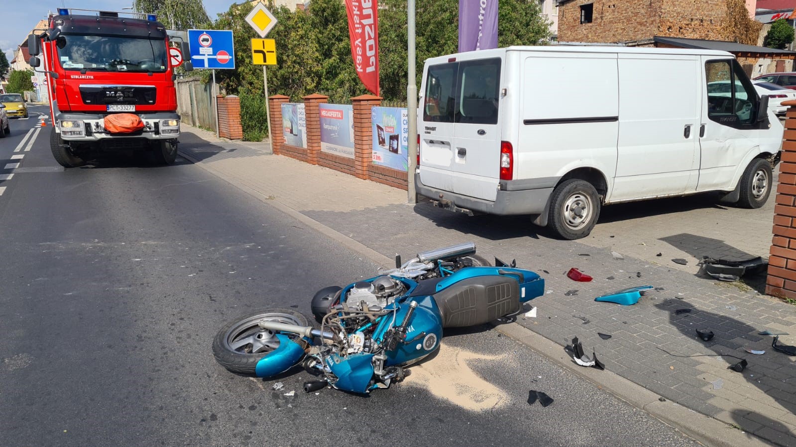 29 lipca 2022 roku o godz. 15:46 do Stanowiska Kierowania Komendanta Powiatowego PSP w Czarnkowie wpłynęło zgłoszenie o zderzeniu samochodu dostawczego z motocyklem. W skutek zdarzenia kierujący motorem odniósł obrażenia w okolicy kończyn dolnych oraz twarzy. Kierujący samochodem nie odniósł żadnych obrażeń. Strażacy po przybyciu na miejsce zdarzenia udzielili kwalifikowanej pierwszej pomocy kierującemu motorem oraz zabezpieczyli miejsce zdarzenia. W działaniach udział brały dwa zastępy z JRG Czarnków, ZRM Czarnków oraz Policja.