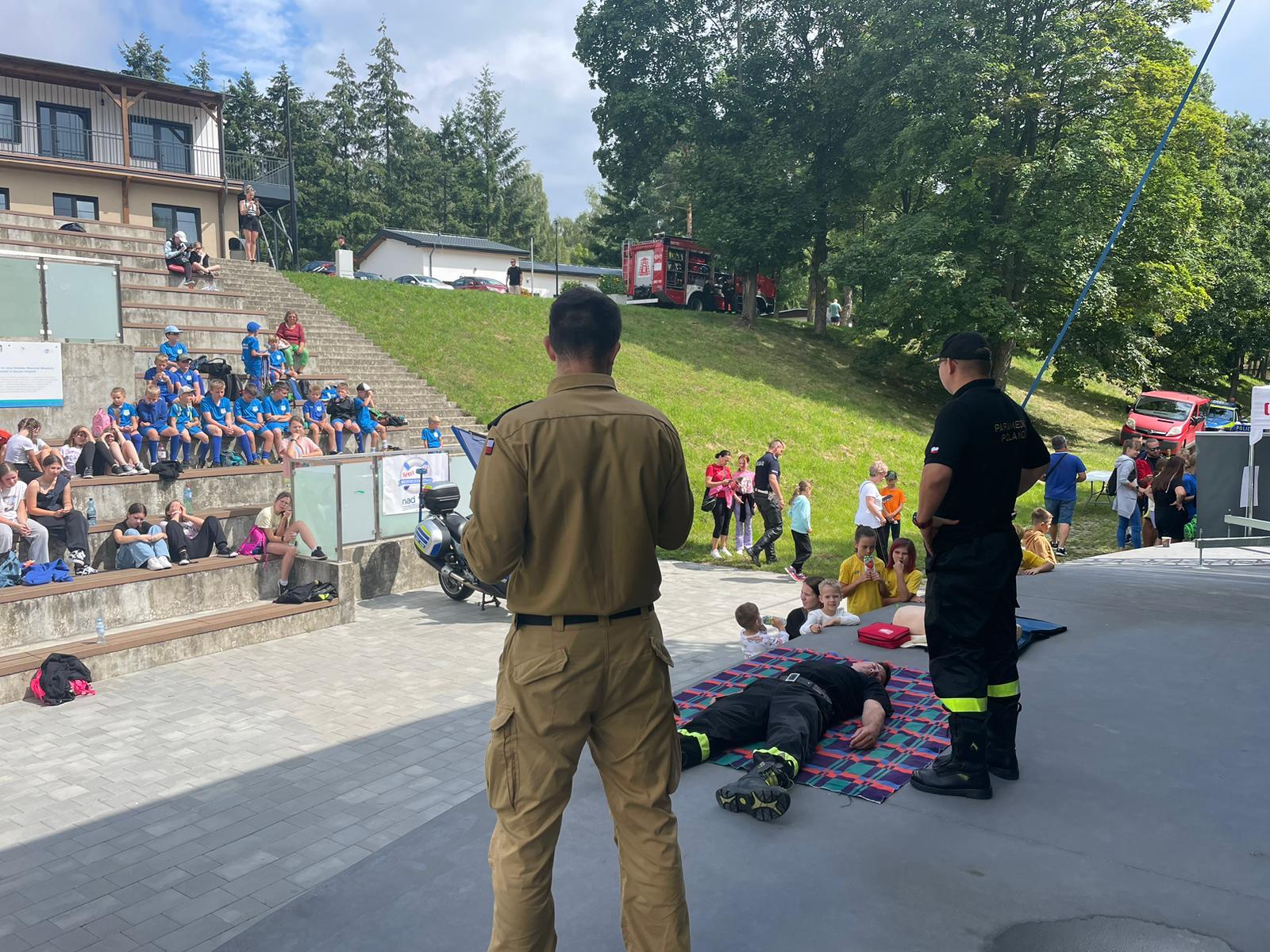 W dniu 24.07.2024 r. strażacy z KP PSP w Człuchowie wzięli udział w akcji „Bezpieczne wakacje” organizowanej przez Powiatową Stacje Sanitarno-Epidemiologiczną w Człuchowie przy współpracy z lokalnymi służbami mundurowymi, która skierowana była do mieszkańców Człuchowa i osób wypoczywających na terenie powiatu człuchowskiego. Strażacy wykonali pokaz sprzętu ratowniczo – gaśniczego i kwalifikowanej pierwszej pomocy.