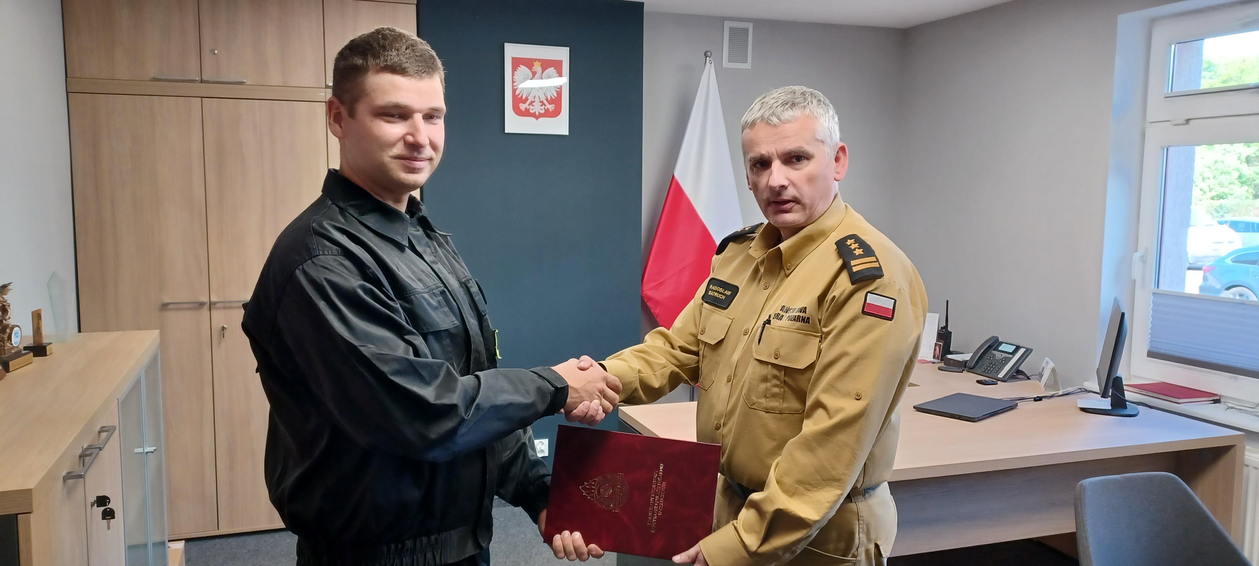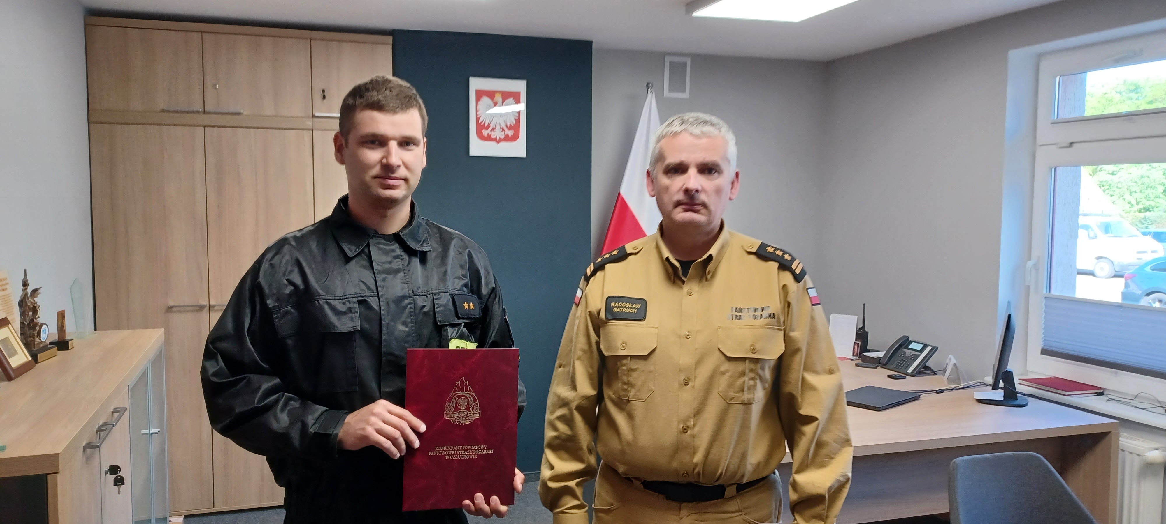 Z dniem 1 czerwca 2023 roku Komendant Powiatowy Państwowej Straży Pożarnej w Człuchowie st. bryg. Radosław Batruch mianował na stanowisko dowódcy zmiany st.asp. Dariusza Buczko. Wręczenie aktu mianowania odbyło się 6 czerwca 2023 r. w Komendzie Powiatowej PSP w Człuchowie.