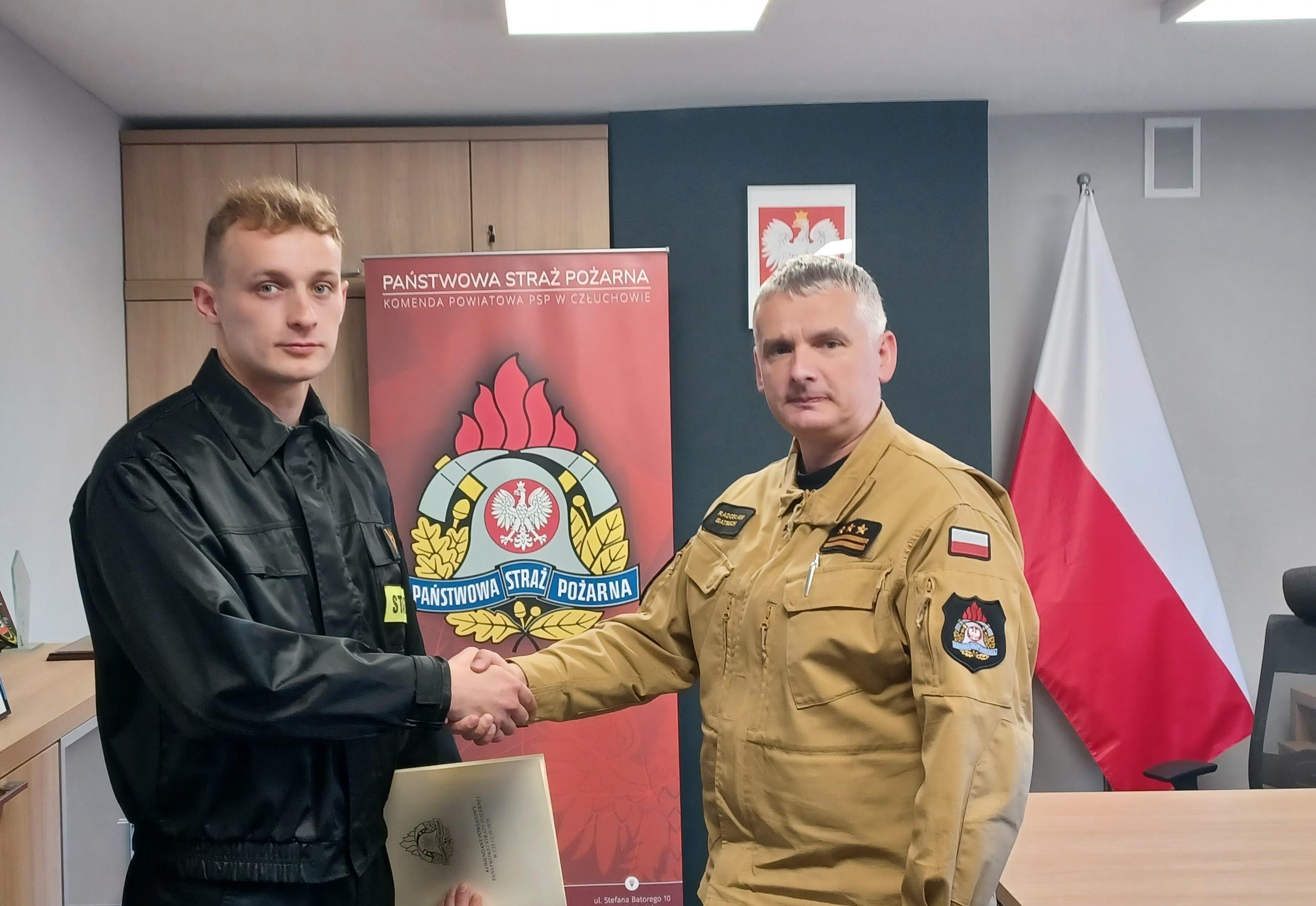 Z dniem 17 czerwca 2024 roku Komendant Powiatowy Państwowej Straży Pożarnej w Człuchowie st. bryg. Radosław Batruch mianował na stanowisko dowódcy zastępu mł.asp. Zbigniewa Wolter. Wręczenie aktu mianowania odbyło się w Komendzie Powiatowej PSP w Człuchowie.