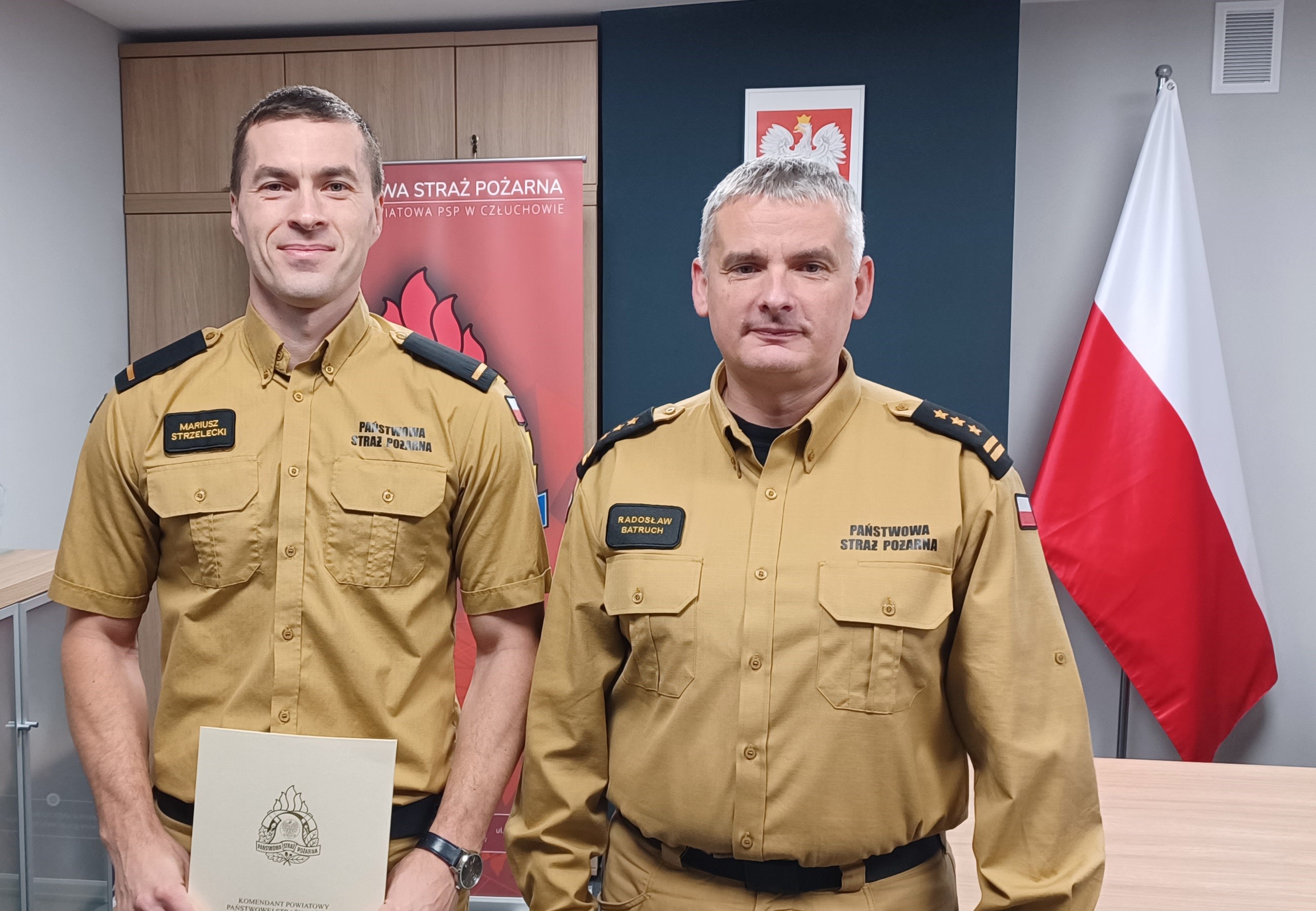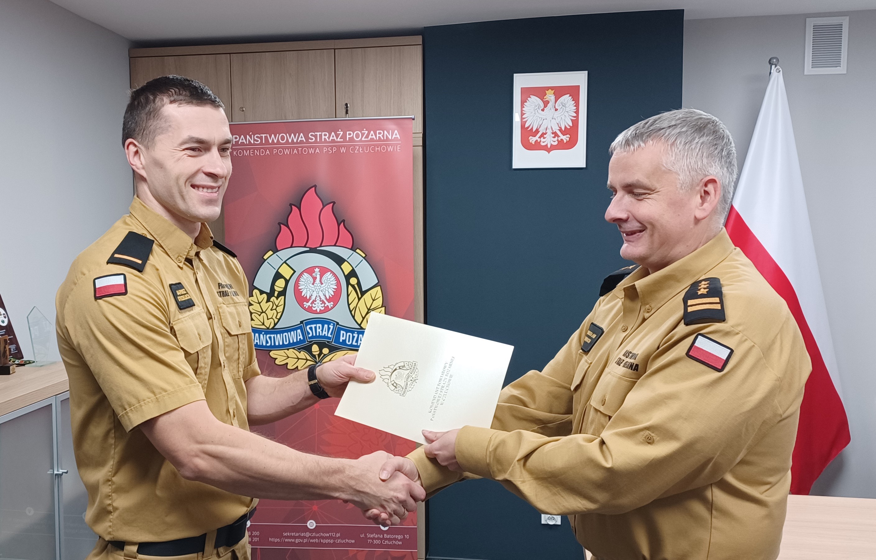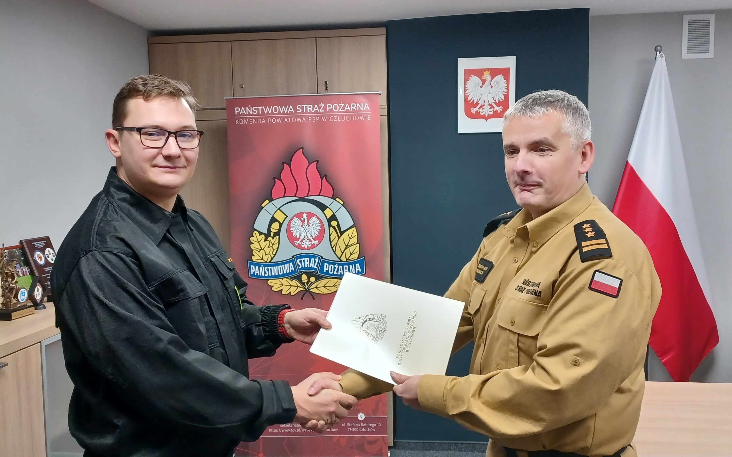 Komendant Powiatowy Państwowej Straży Pożarnej w Człuchowie st. bryg. Radosław Batruch nadał stopień starszego strażaka: