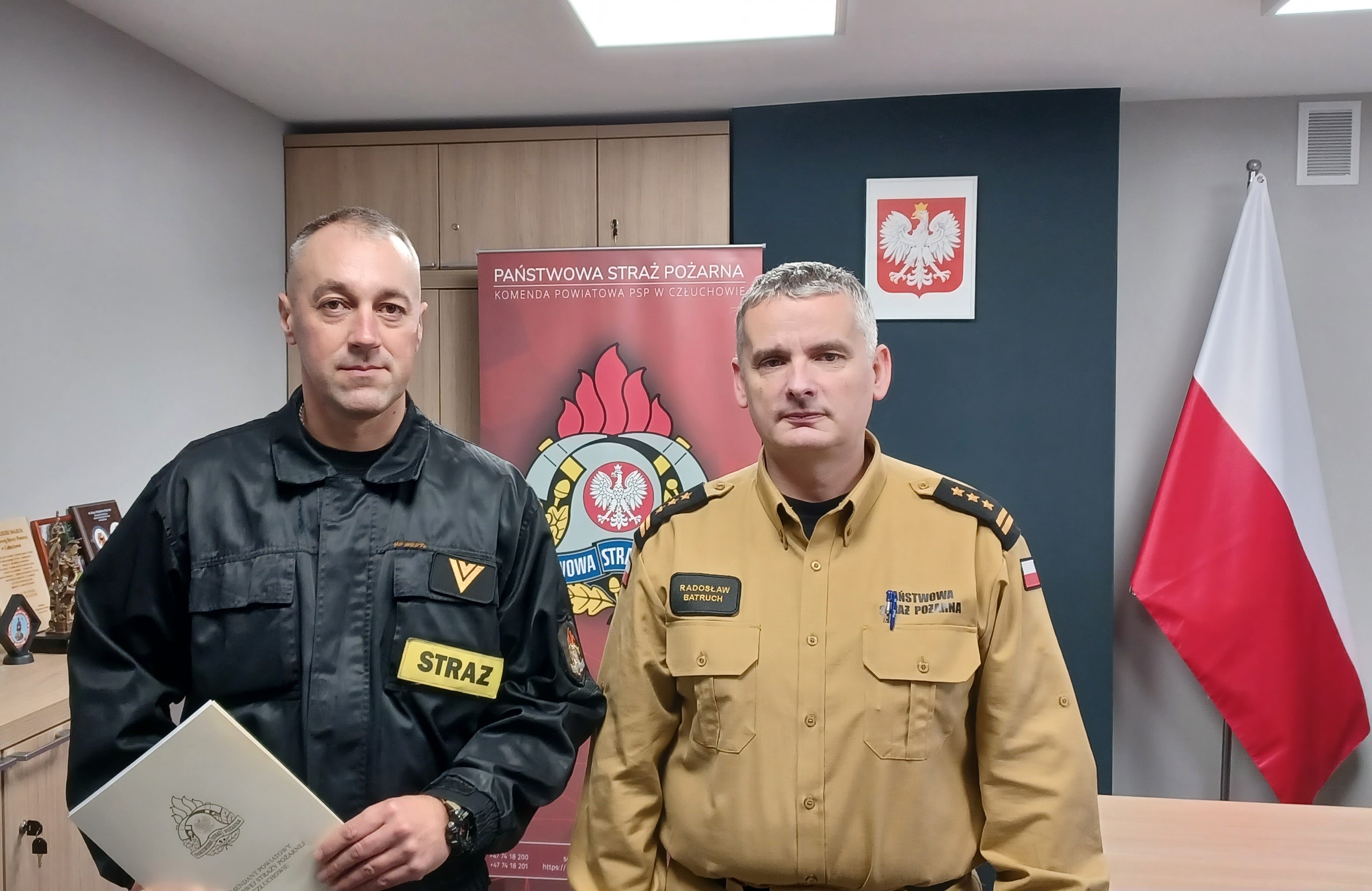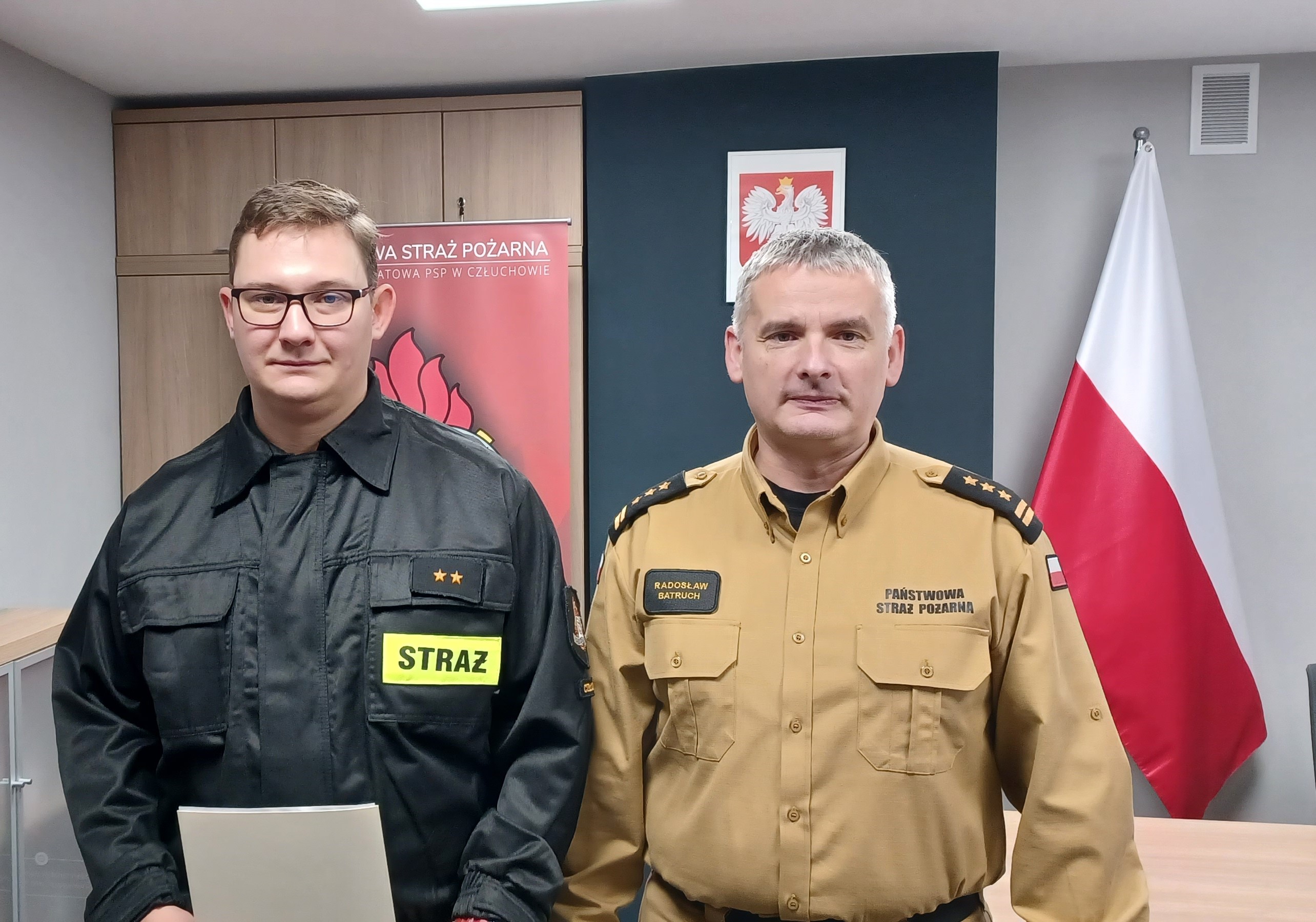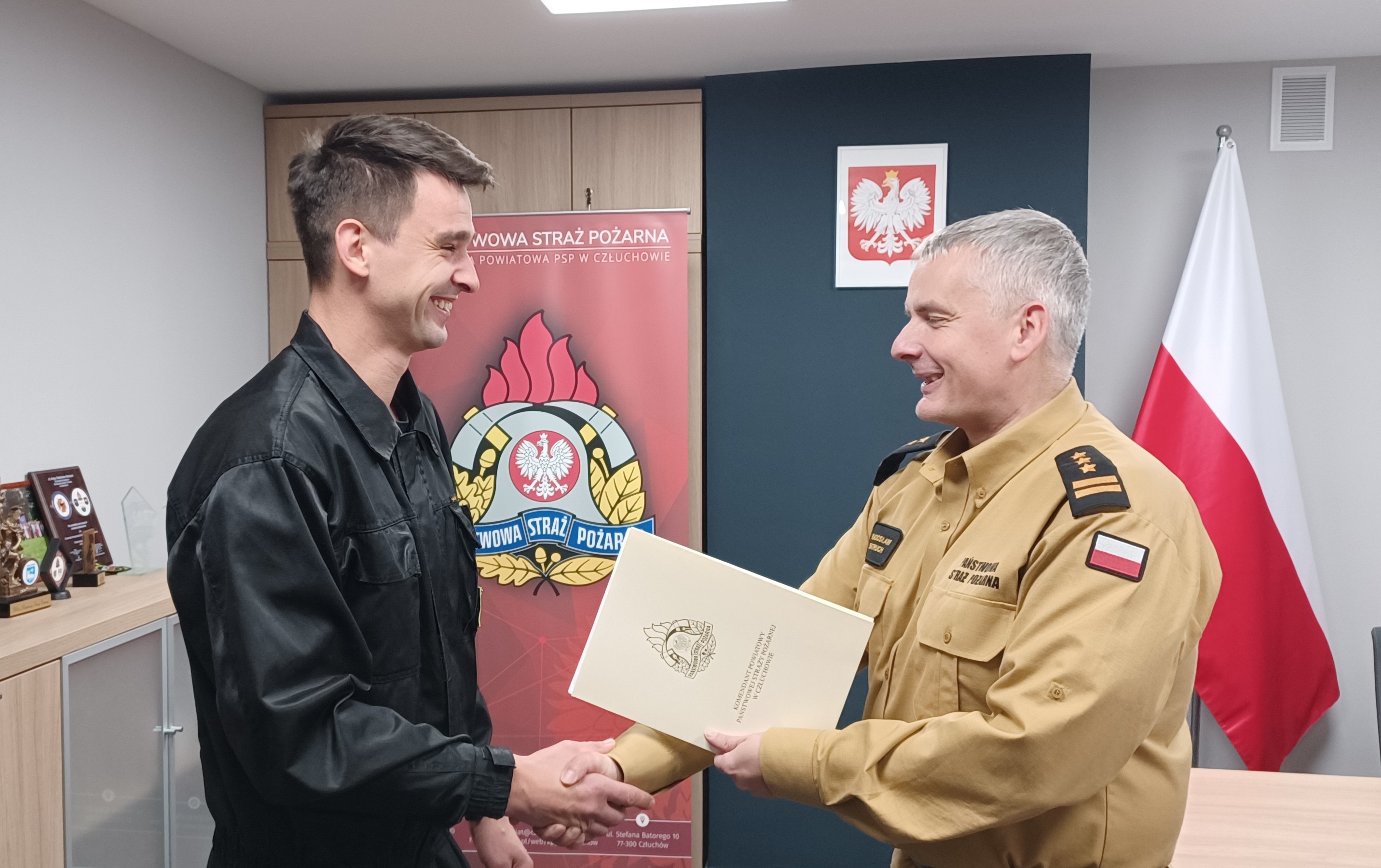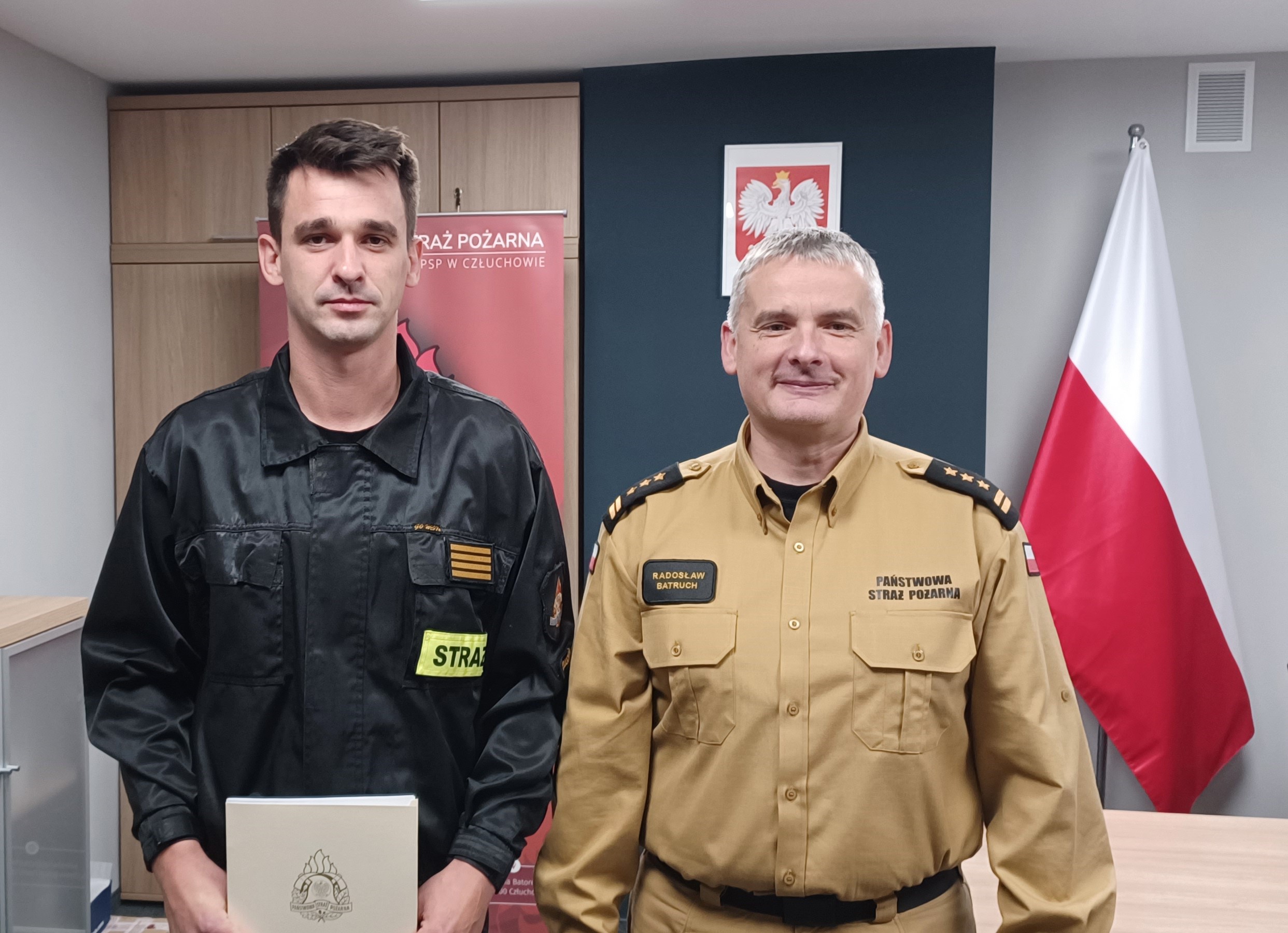 Komendant Powiatowy Państwowej Straży Pożarnej w Człuchowie st. bryg. Radosław Batruch nadał stopień starszego strażaka: