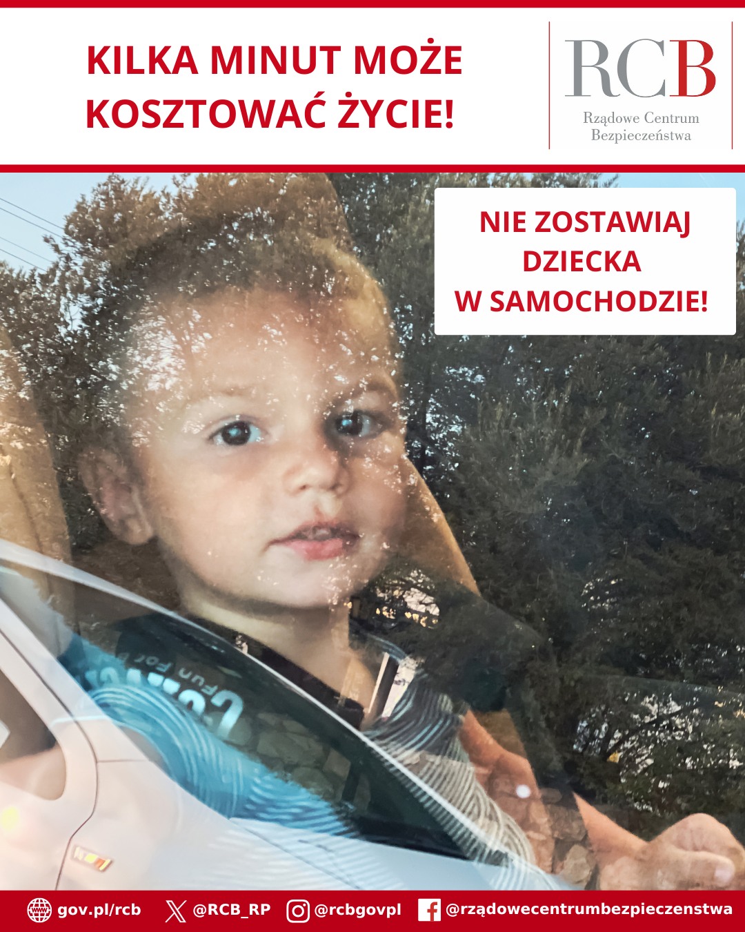 W zamkniętym pojeździe temperatura może wzrosnąć bardzo szybko, co stwarza poważne ryzyko dla życia i zdrowia. Jeśli widzisz pozostawione dziecko w samochodzie – nie bądź obojętny! REAGUJ!