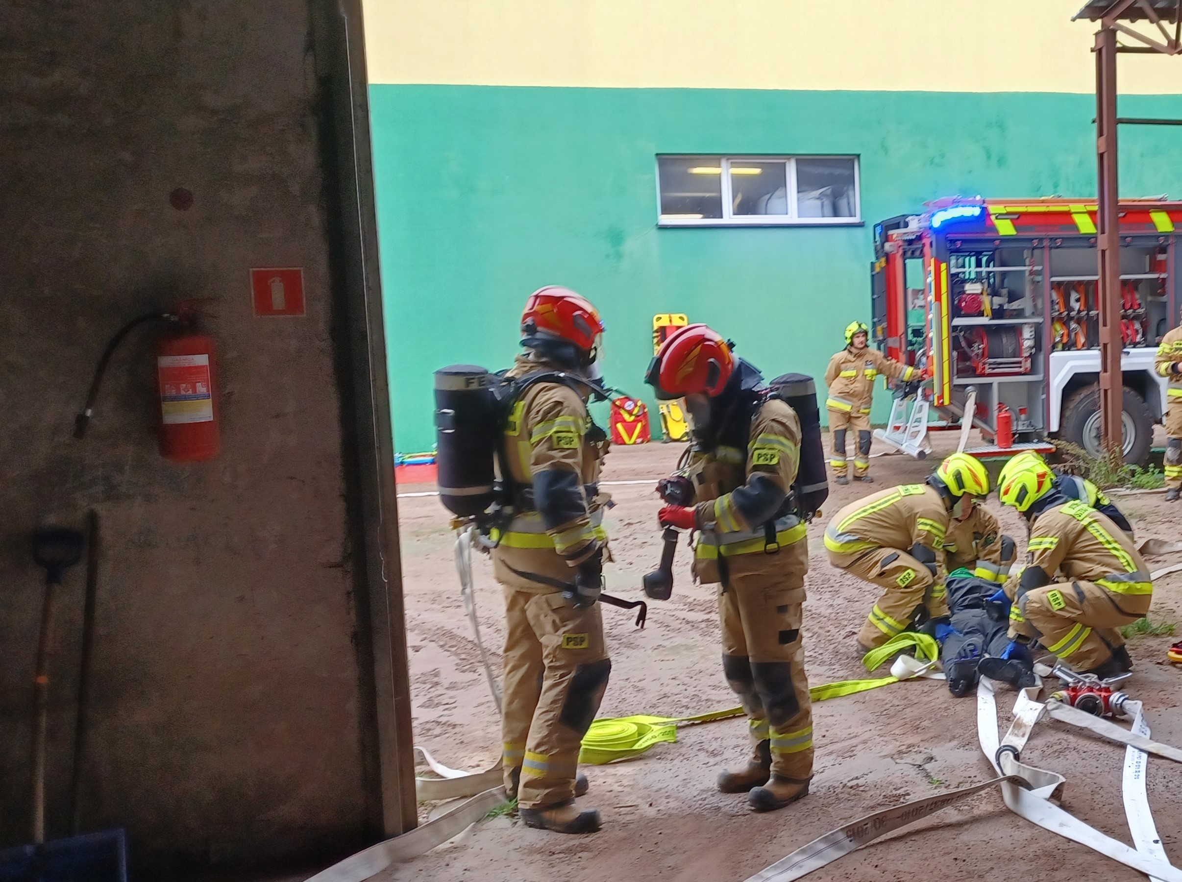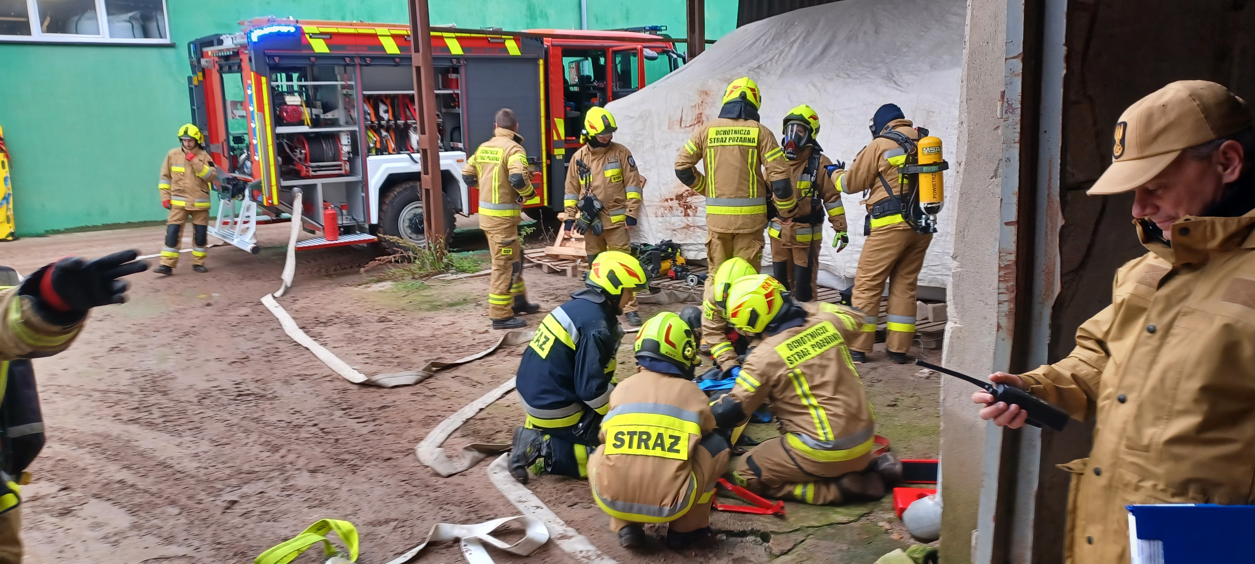 - zweryfikowanie wytypowanych do ćwiczeń zastępów PSP i OSP pod względem gotowości operacyjnej i zrealizowanie założenia taktycznego w zakresie gaszenia pożarów w obiektach magazynowych, w których występują strefy zagrożenia wybuchem i udzielanie kpp poszkodowanym,
