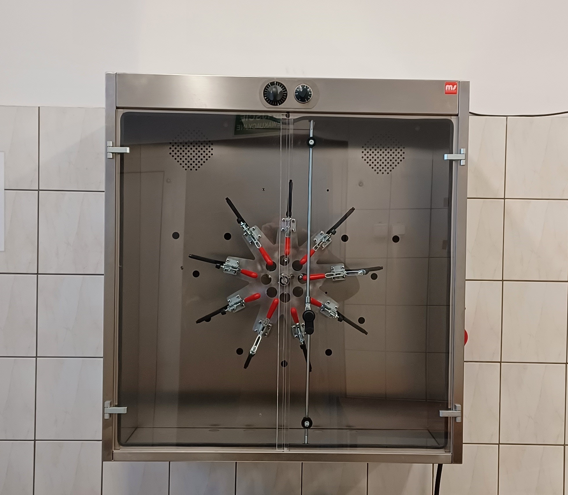- myjkę i suszarkę do masek ochrony układu oddechowego za kwotę 67,5 tysiąca złotych. Urządzenia służą do szybkiego i higienicznego przygotowania do ponownego użycia masek układu oddechowego stosowanych podczas pożarów lub ćwiczeń. Pozwalają na jednoczesne umycie, zdezynfekowanie i wysuszenie dziewięciu masek.