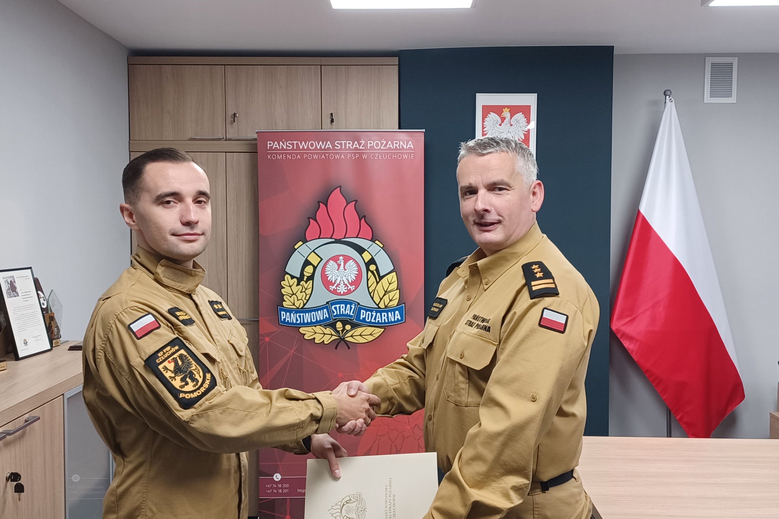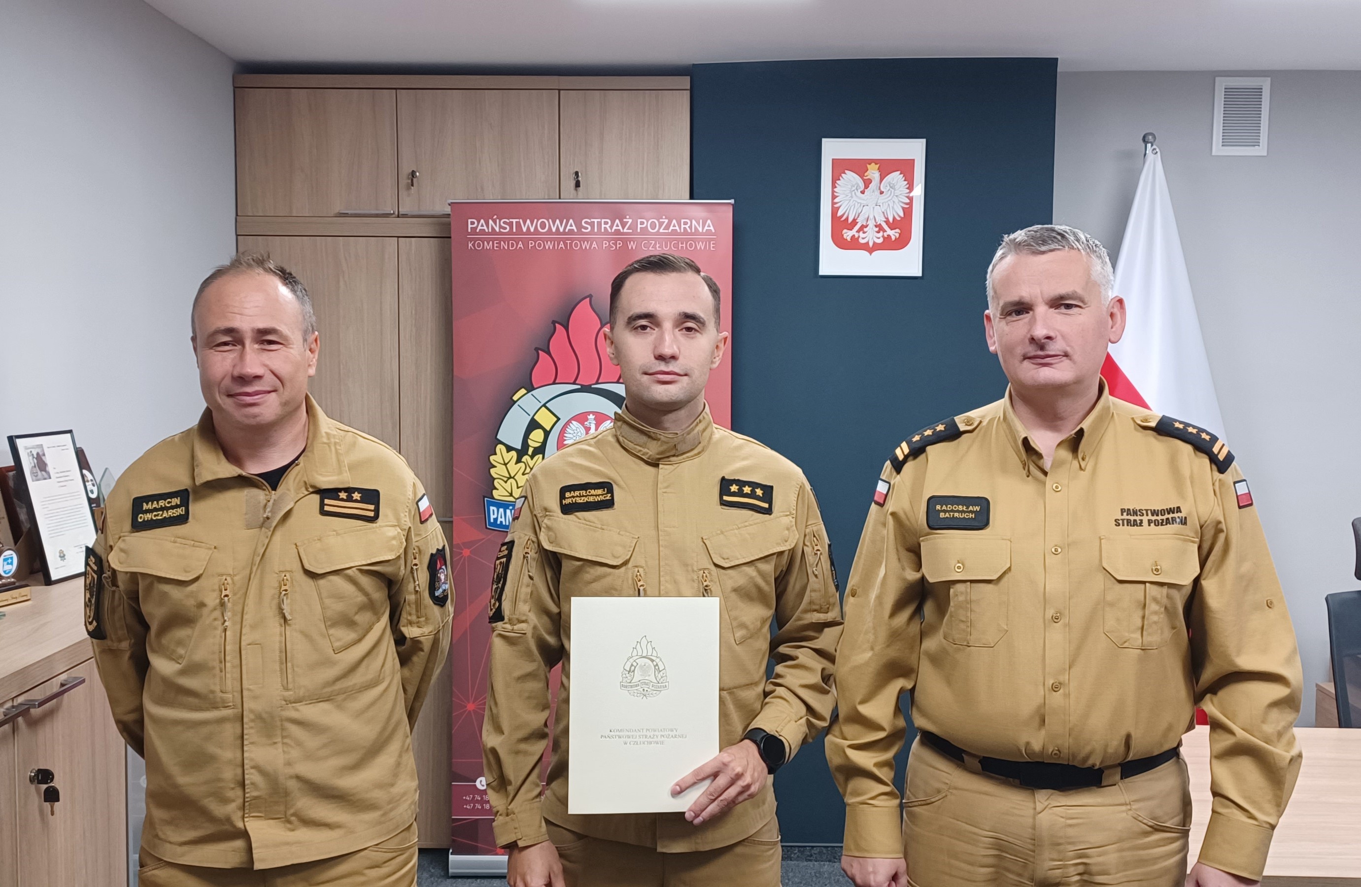 Z dniem 1 listopada 2024 roku Komendant Powiatowy Państwowej Straży Pożarnej w Człuchowie st. bryg. Radosław Batruch mianował na stanowisko Naczelnika Wydziału Operacyjno-Kontrolno-Rozpoznawczego KP PSP w Człuchowie kpt. Bartłomieja Hryszkiewicza. Wręczenie aktu mianowania odbyło się 21 października 2024 r. w Komendzie Powiatowej PSP w Człuchowie.