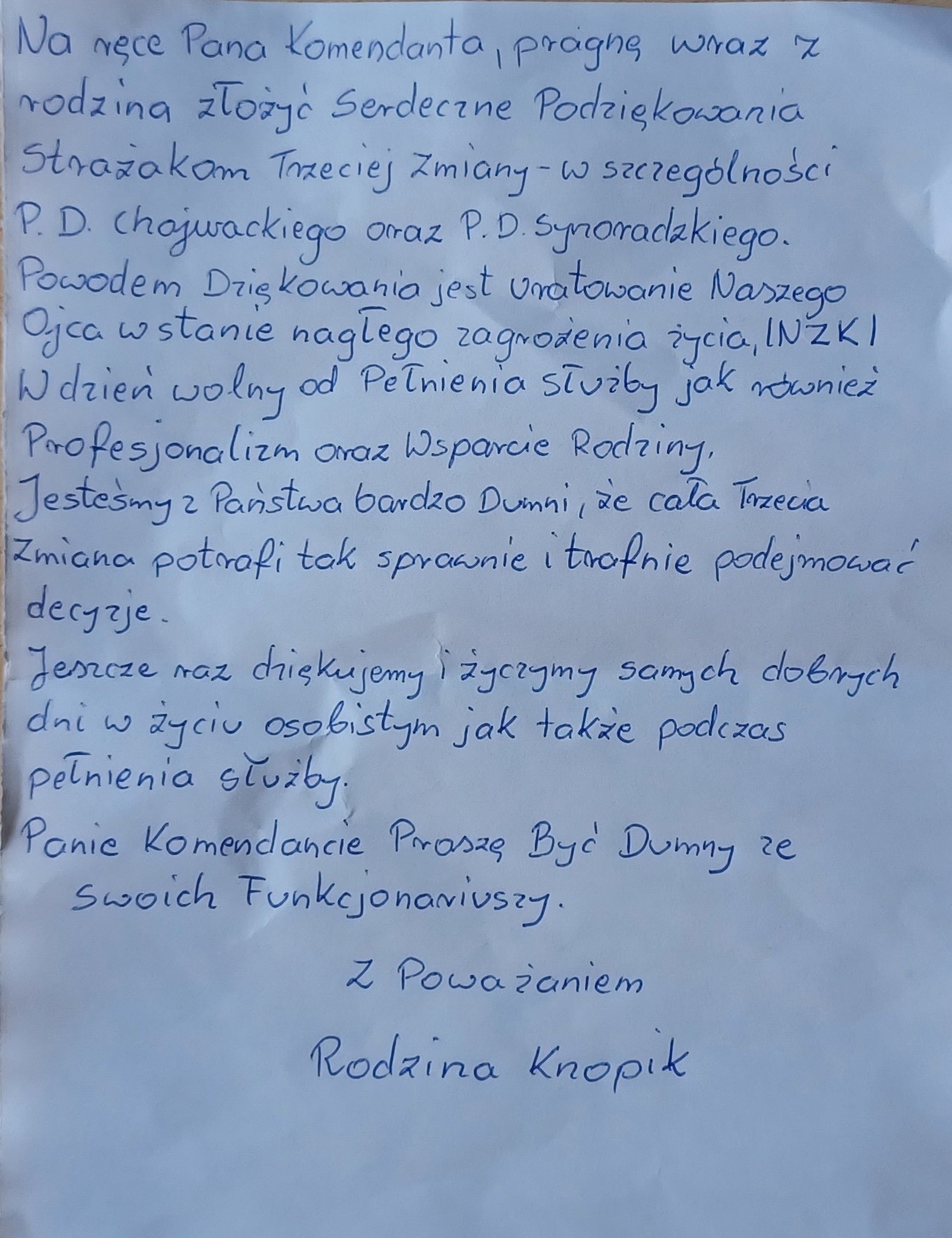 Podziękowania dla strażaków z KP PSP w Człuchowie