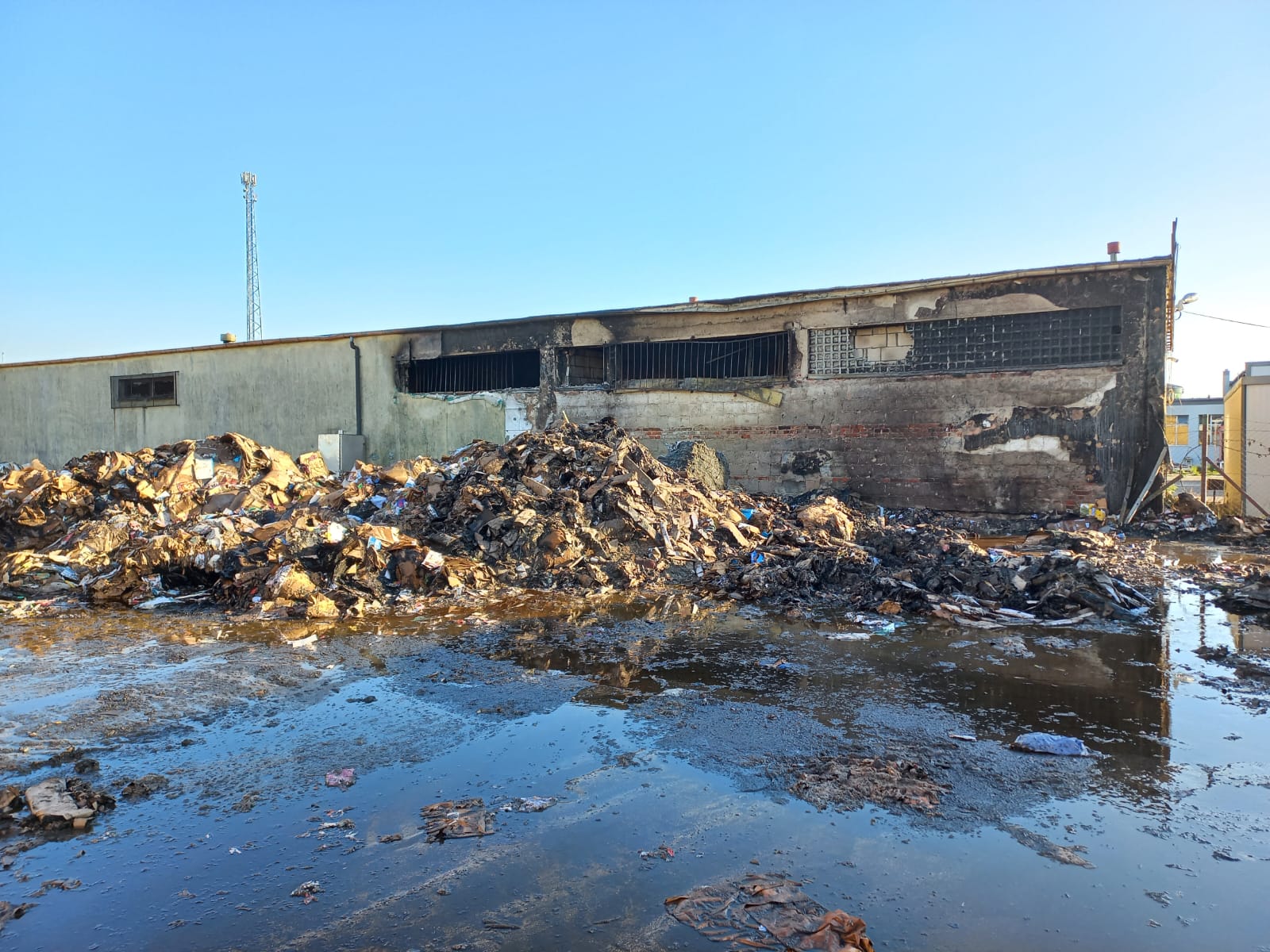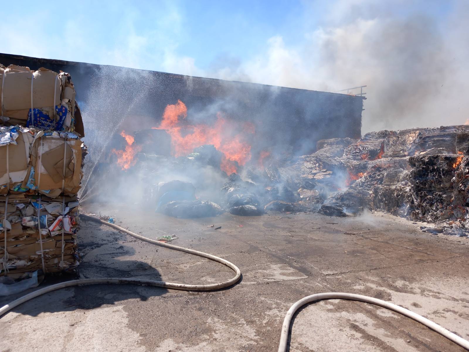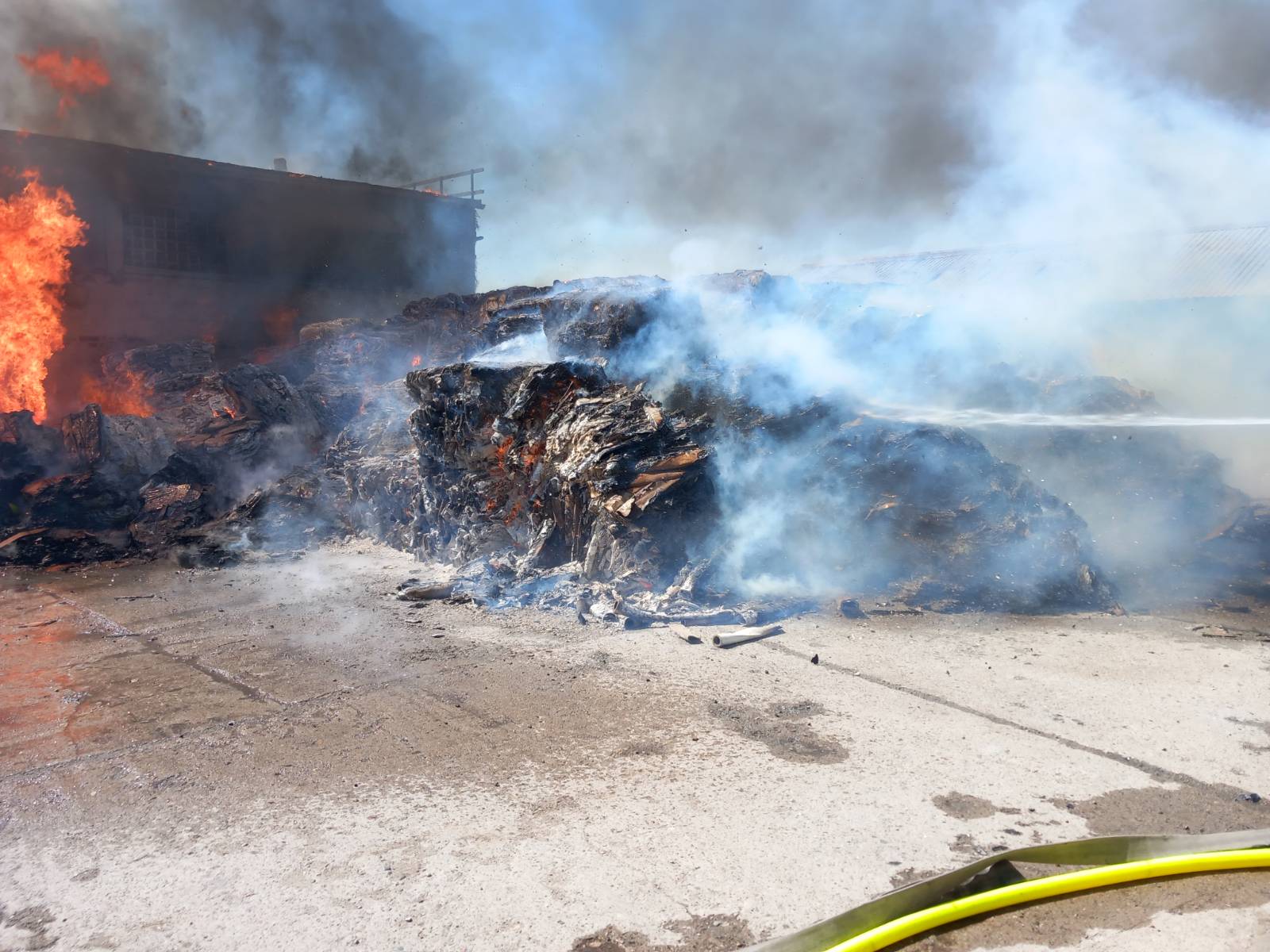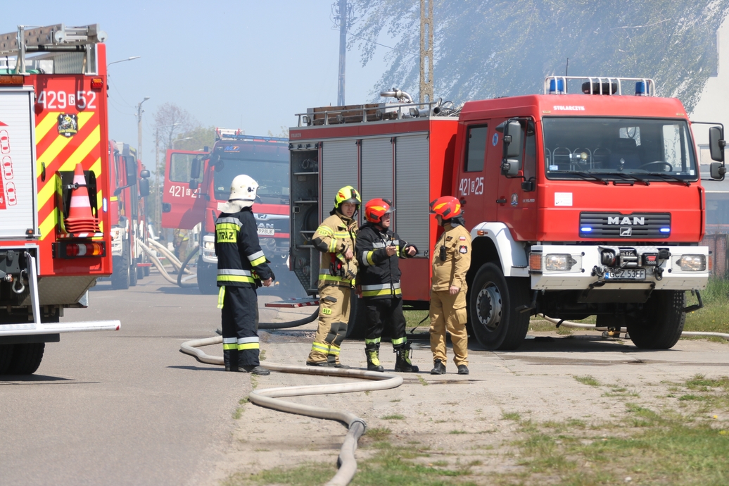 Pożar składowiska makulatury i budynku magazynowego na ulicy Mickiewicza w Człuchowie