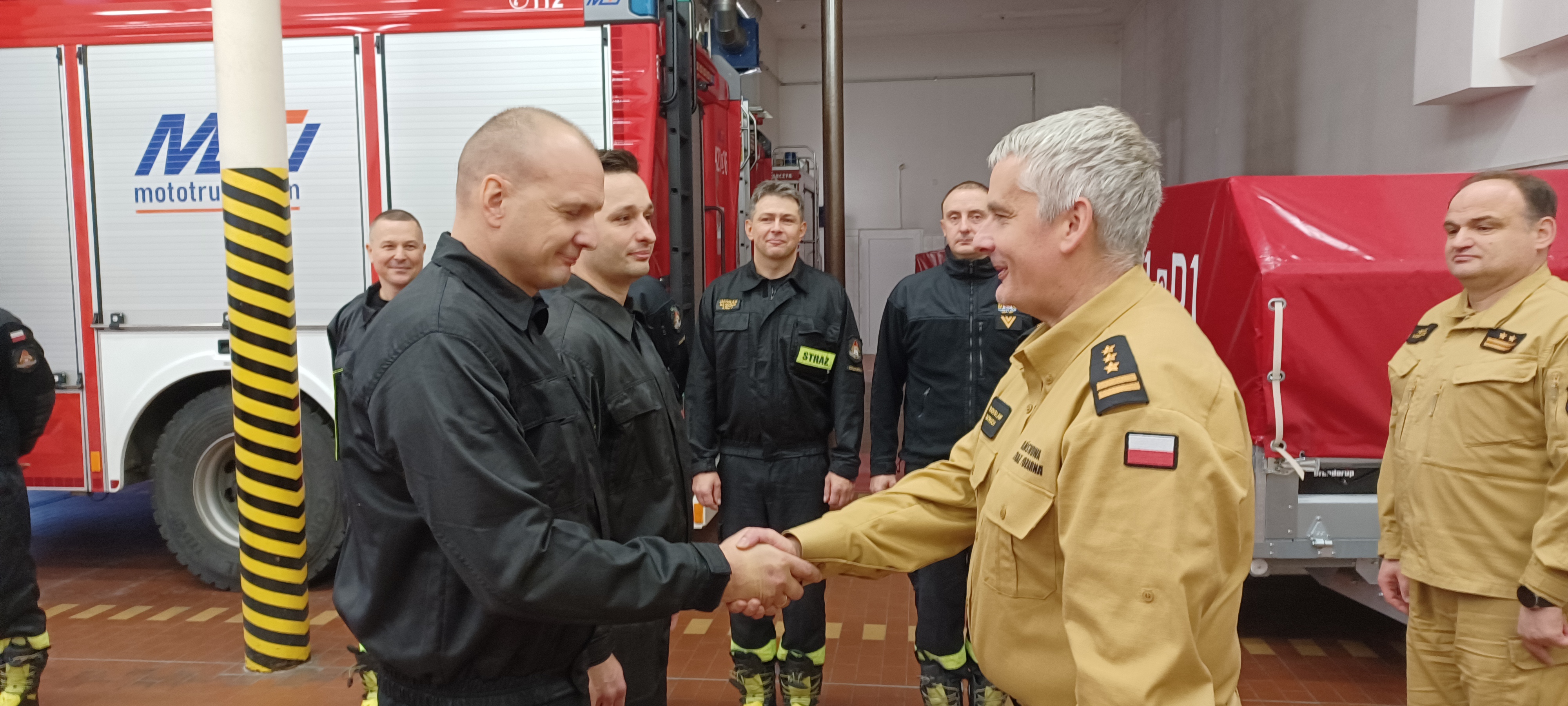 Komendant Powiatowy Państwowej Straży Pożarnej w Człuchowie st. bryg. Radosław Batruch przyznał nagrodę finansową ogn. Damianowi Chojnackiemu i st. str. Dawidowi Synoradzkiemu w związku z udzieleniem w dniu 30.09.2023 r. kwalifikowanej pierwszej pomocy nieprzytomnemu mężczyźnie, u którego doszło do nagłego zatrzymania krążenia, polegającej na wykonaniu resuscytacji i przywróceniu czynności życiowych przez w/w funkcjonariuszy poza służbą. Komendant Powiatowy Państwowej Straży Pożarnej w Człuchowie st. bryg. Radosław Batruch złożył wyrazy uznania funkcjonariuszom za ich postawę i profesjonalne działania.