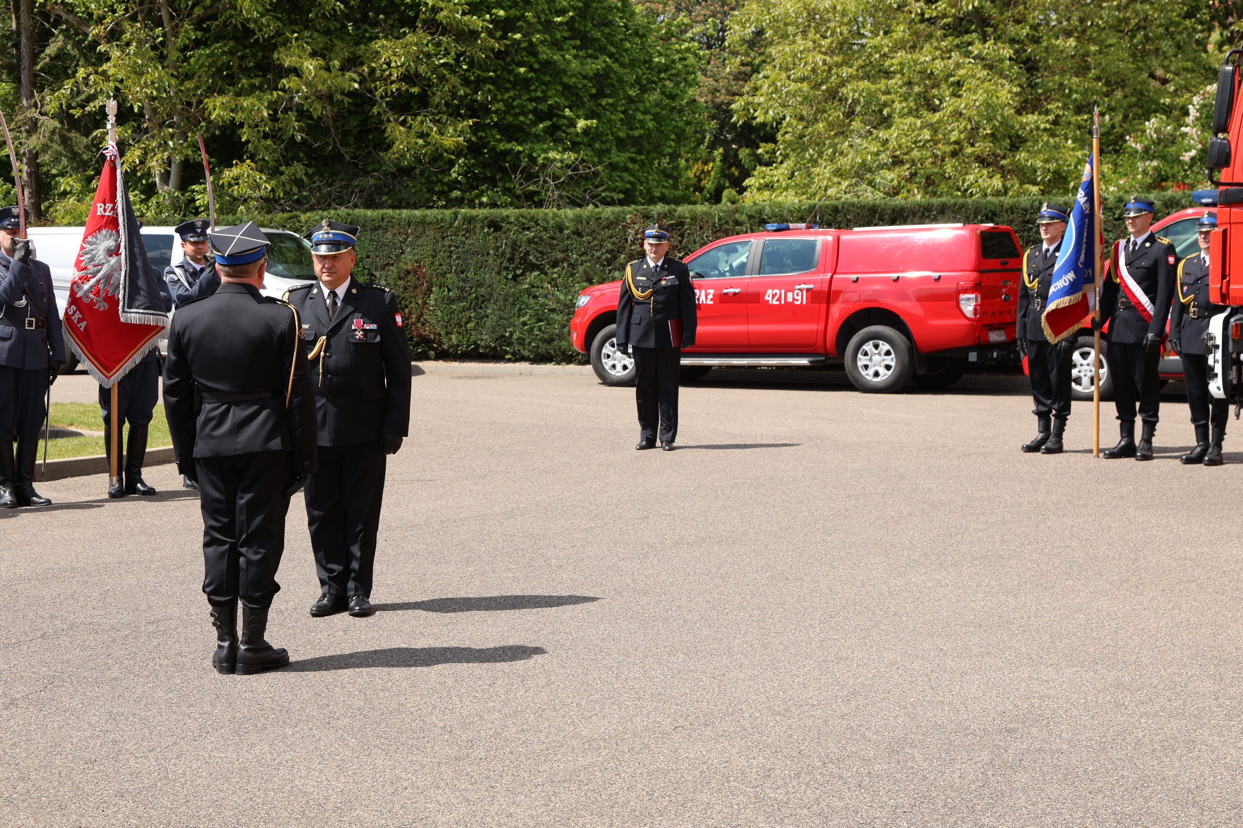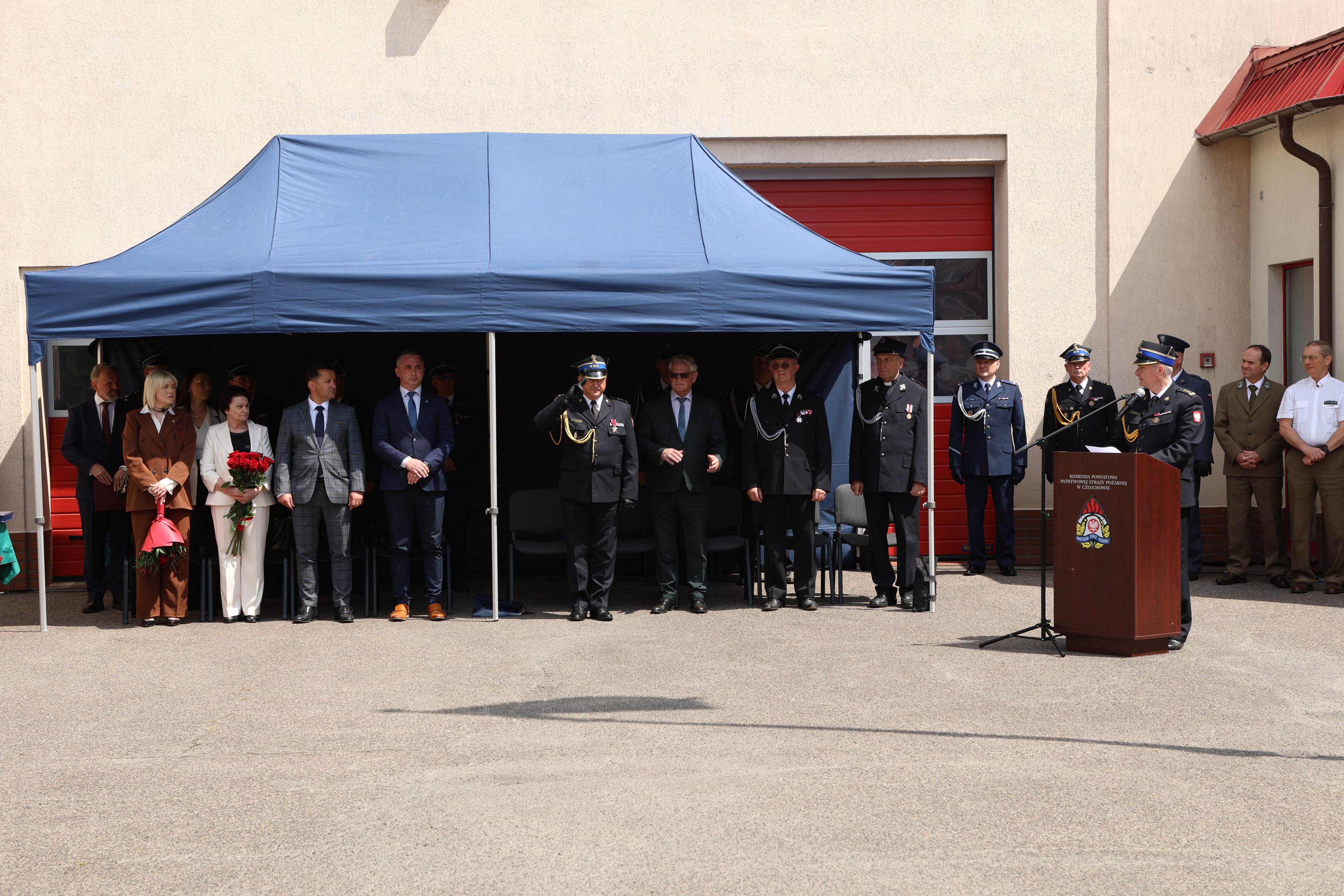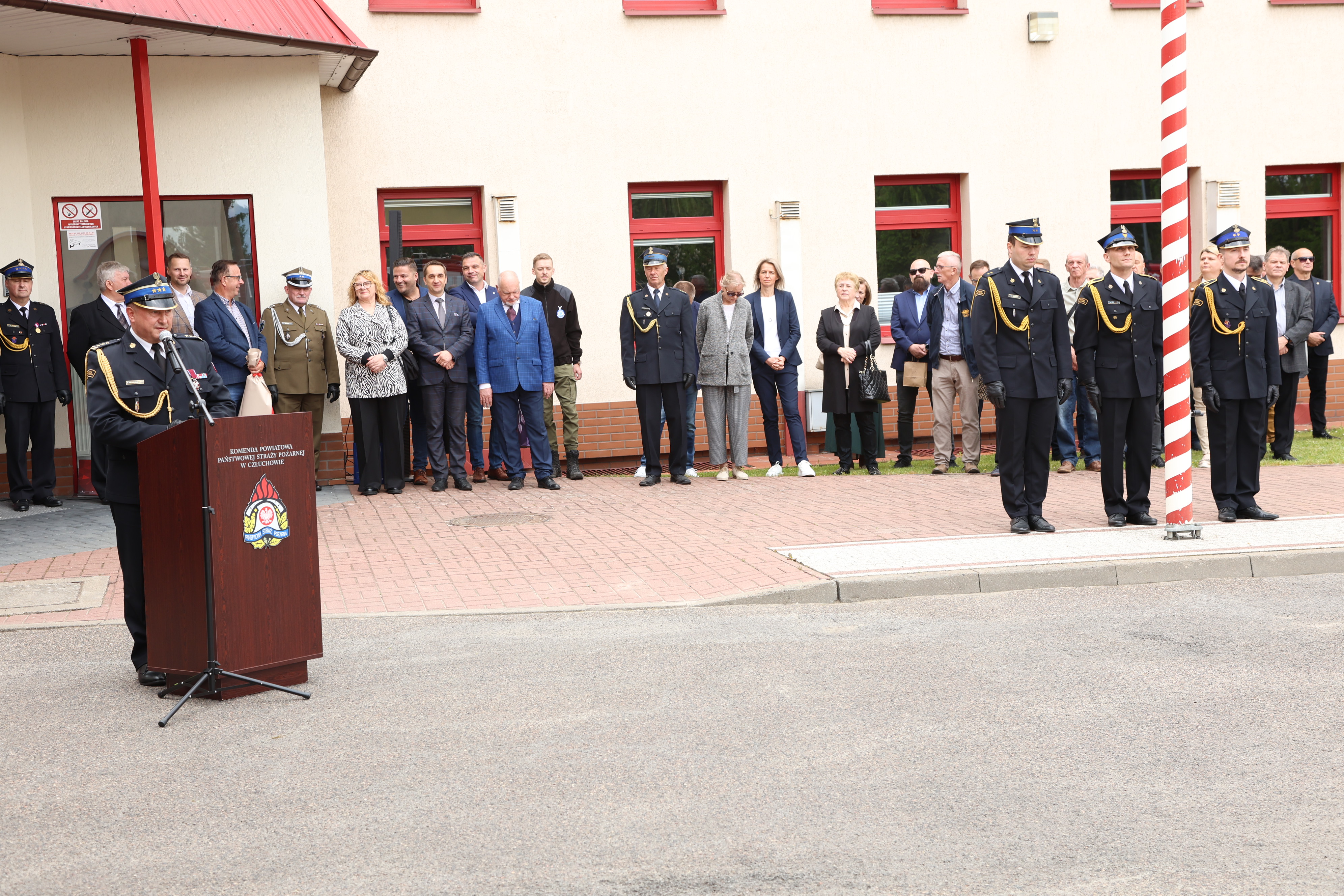 W dniu 27.05.2025 r. o godz. 12:00 odbyła się uroczystość wręczenia awansów, medali i wyróżnień. Uroczysta zbiórka rozpoczęła się od złożenia meldunku Pomorskiemu Komendantowi Wojewódzkiemu Państwowej Straży Pożarnej st. bryg. Jackowi Niewęgłowskiemu przez dowódcę uroczystości. Następnie nastąpiło uroczyste podniesienie flagi państwowej oraz odśpiewanie hymnu państwowego.