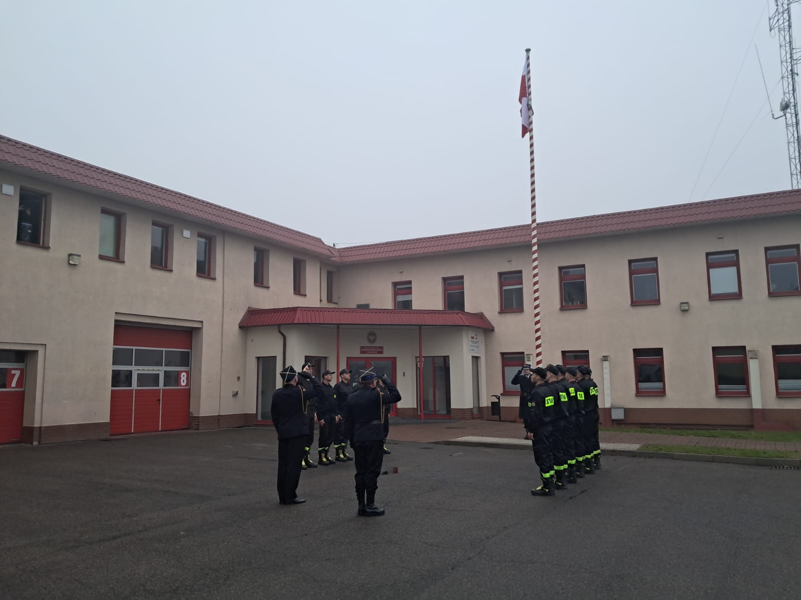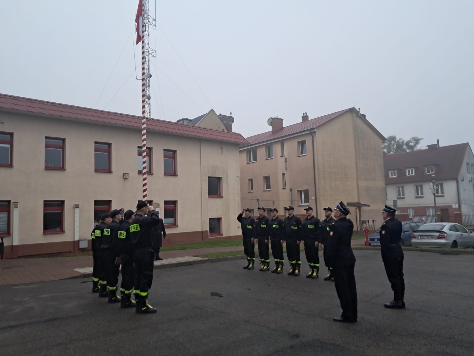 11 listopada 2025 r. w Komendzie Powiatowej PSP w Człuchowie z okazji Narodowego Święta Niepodległości została przeprowadzona uroczysta zmiana służby. W uroczystości uczestniczyli Zastępca Komendanta Powiatowego PSP w Człuchowie bryg. Dariusz Dwulit, dowódca jednostki ratowniczo – gaśniczej mł. bryg. Piotr Frankenstein oraz strażacy, zdający i przyjmujący służbę. Przy odśpiewanym hymnie narodowym podniesiono flagę państwową.