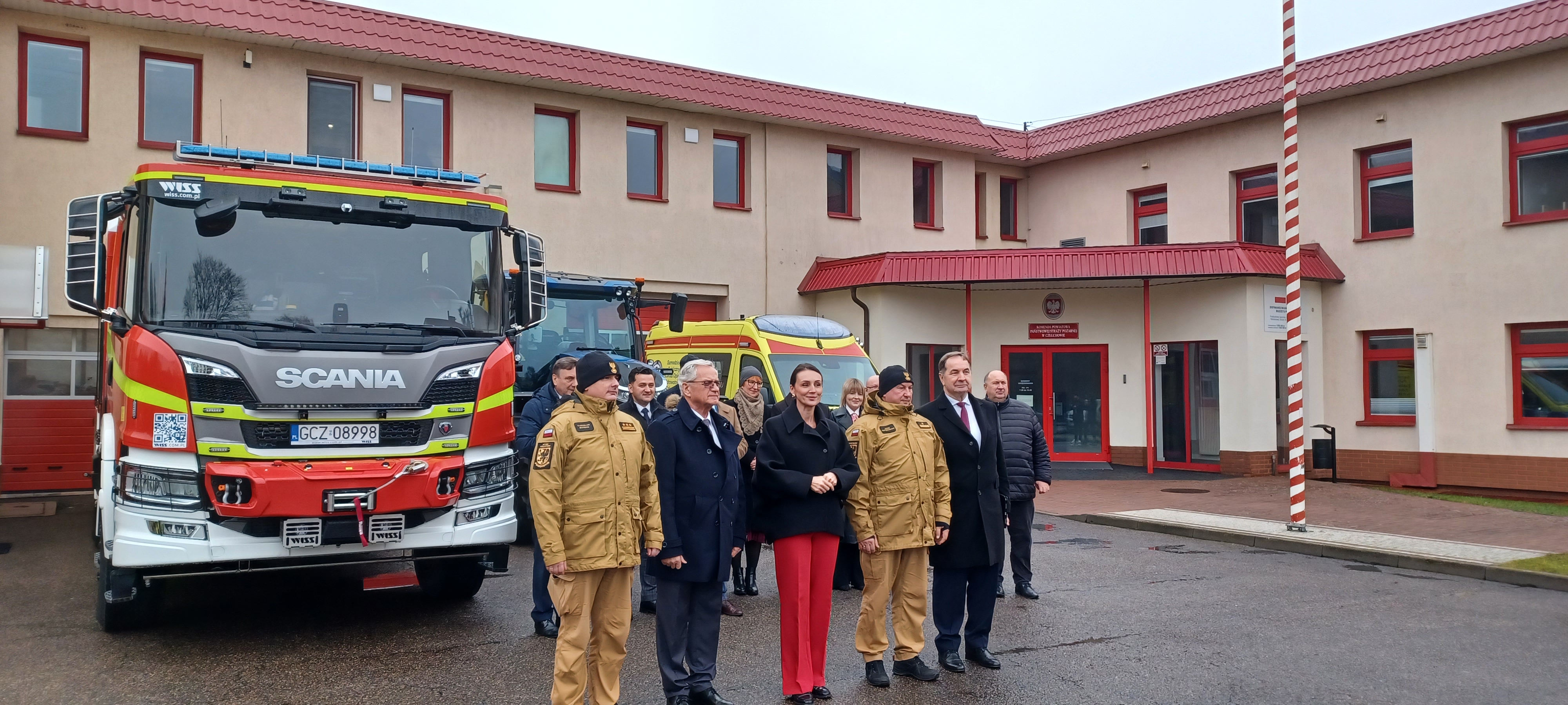 Wizyta Wojewody Pomorskiej – Pani Beaty Rutkiewicz, Pomorskiego Komendanta Wojewódzkiego PSP – nadbryg. Jacka Niewęgłowskiego, posła na sejm RP - Pana Stanisława Lamczyka, Starosty Powiatu Człuchowskiego – Pana Aleksandra Gappa oraz przedstawicieli władz samorządowych z powiatu człuchowskiego w Komendzie Powiatowej PSP w Człuchowie. Podczas wizyty zaprezentowano pojazdy specjalne i ich wyposażenie zakupione ze środków rządowego Programu Ochrony Ludności i Obrony Cywilnej.