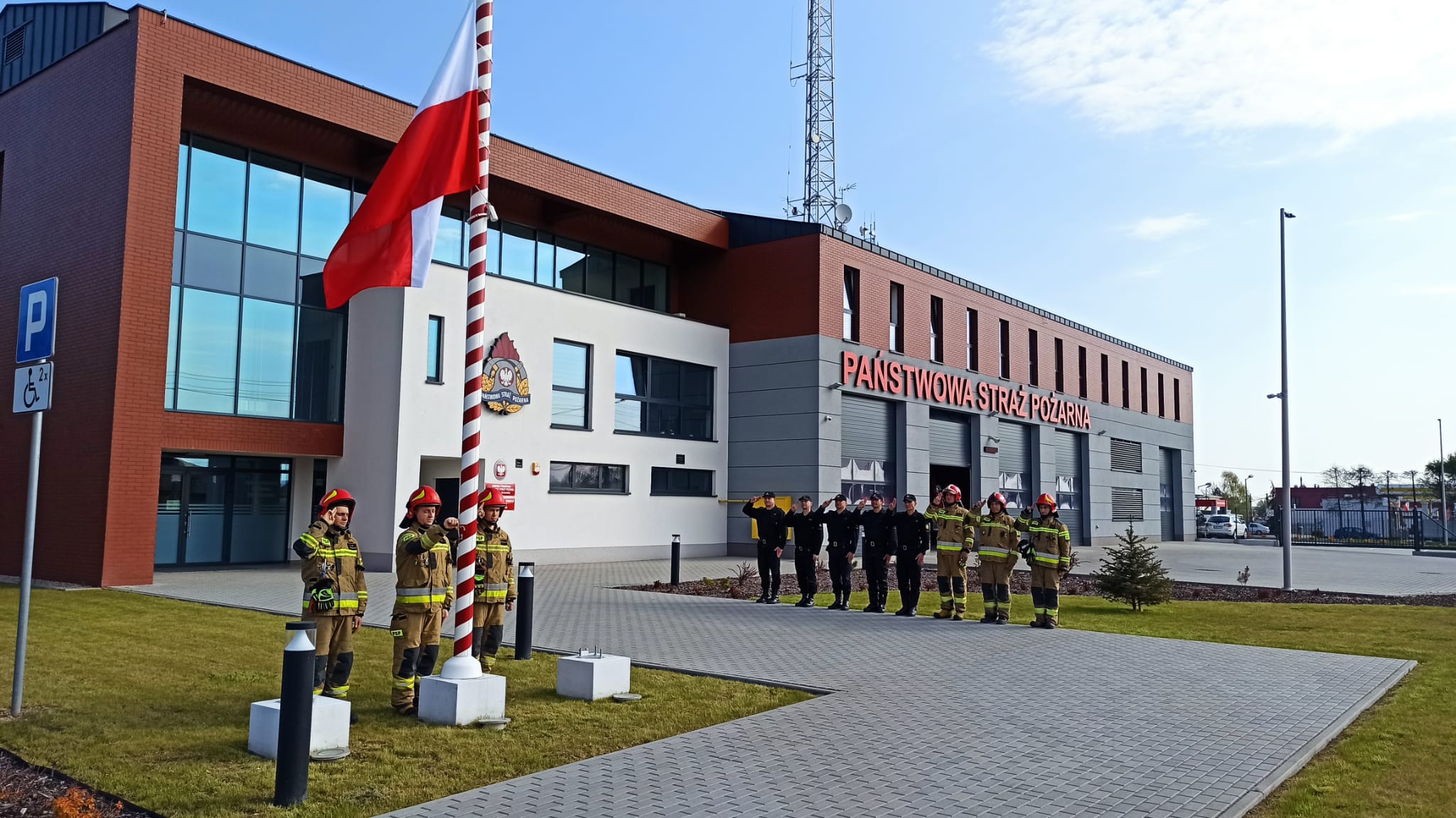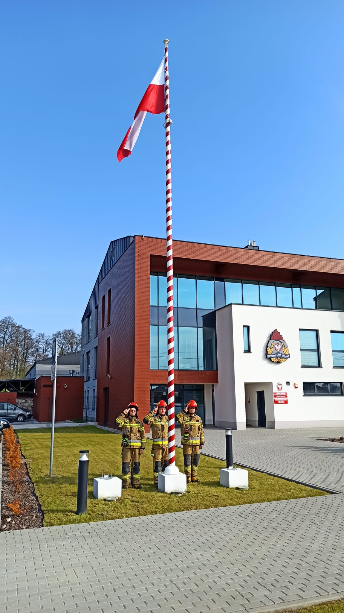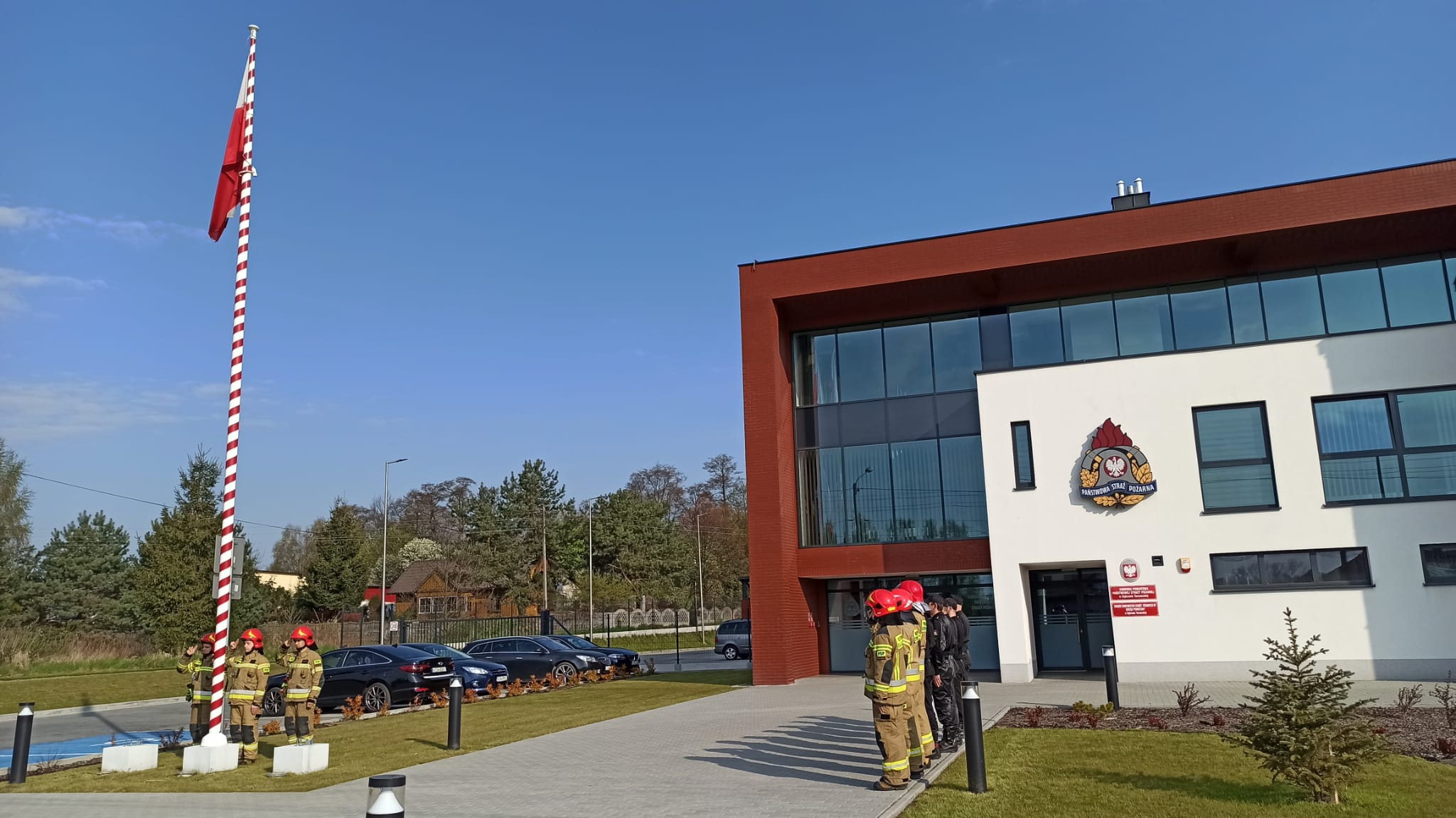 Przed siedzibą Komendy Powiatowej Państwowej Straży Pożarnej w Dąbrowie Tarnowskiej odbyła się uroczysta zbiórka, podczas której strażacy zmiany służbowej Jednostki Ratowniczo-Gaśniczej, a także przedstawiciele Komendy na czele z Komendantem Powiatowym PSP st. kpt. Markiem Batorem i jego zastępcą st. kpt. Krzysztofem Romańskim dokonali podniesienia flagi państwowej.