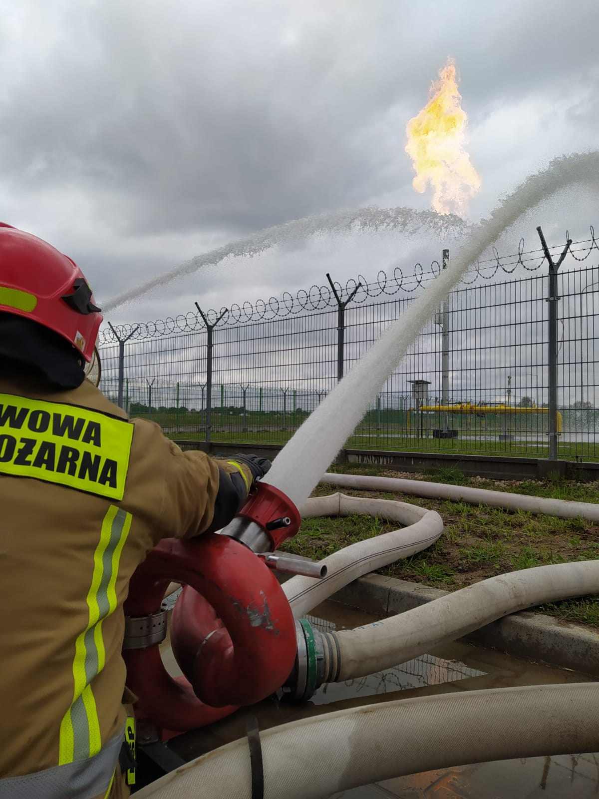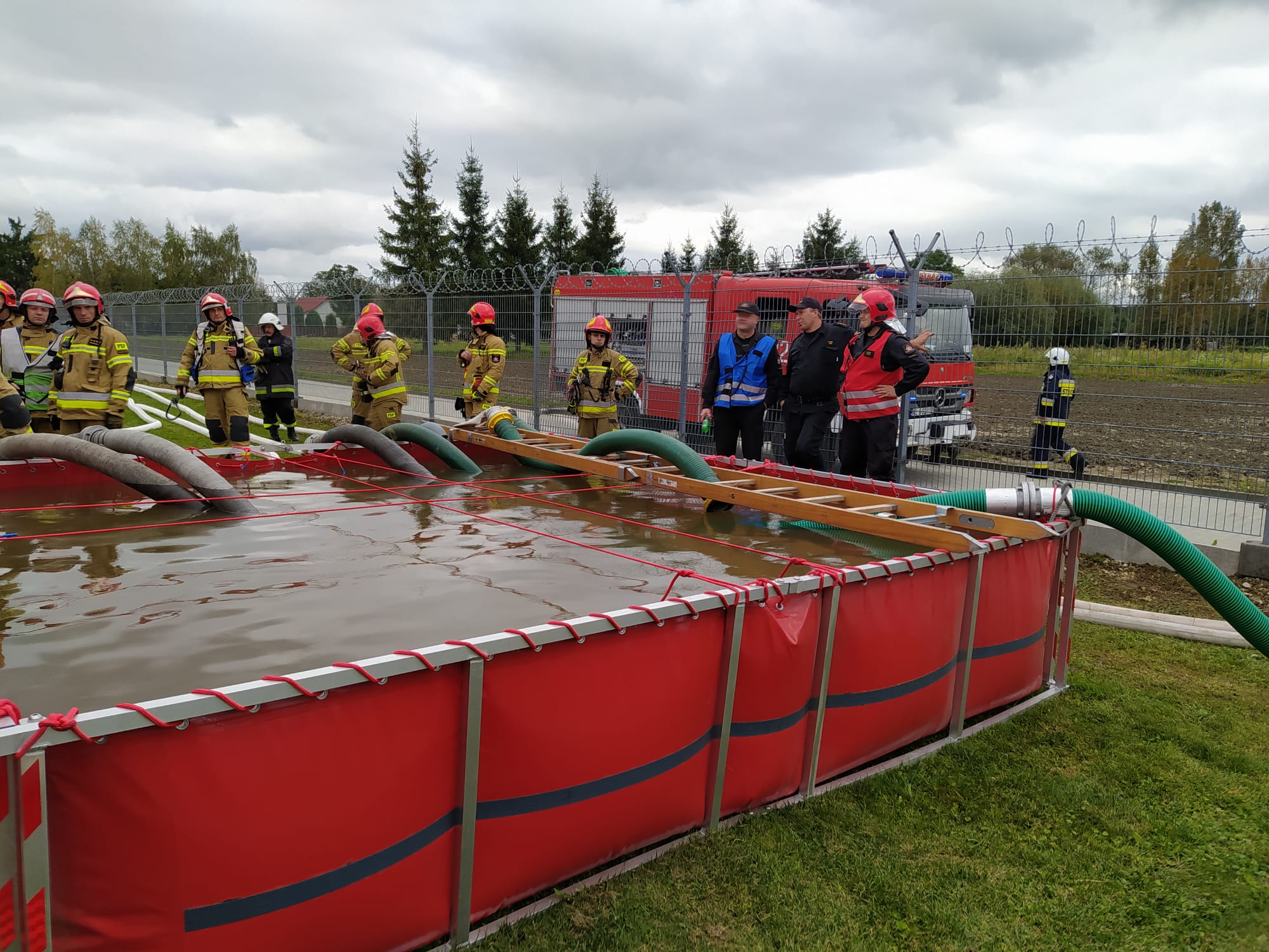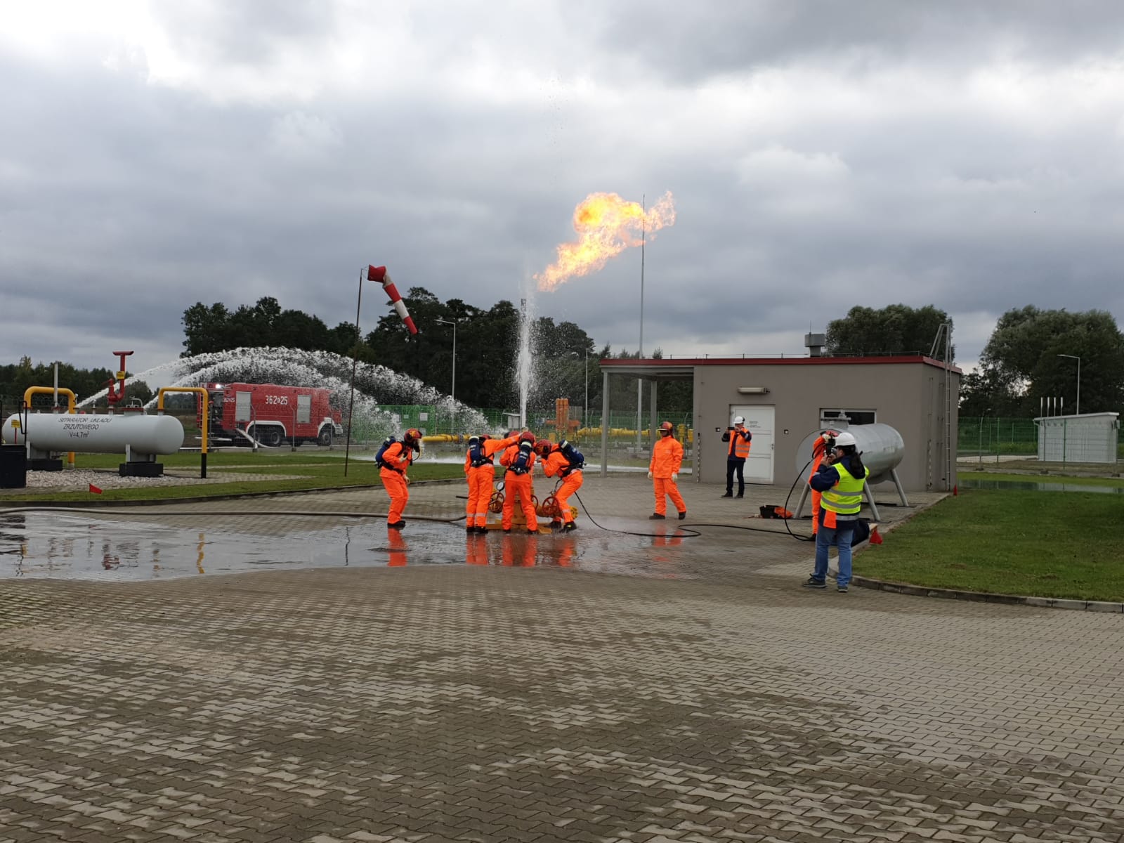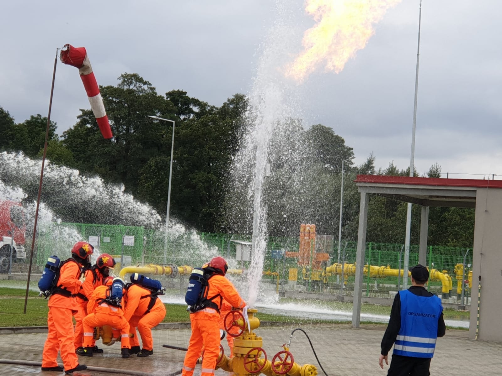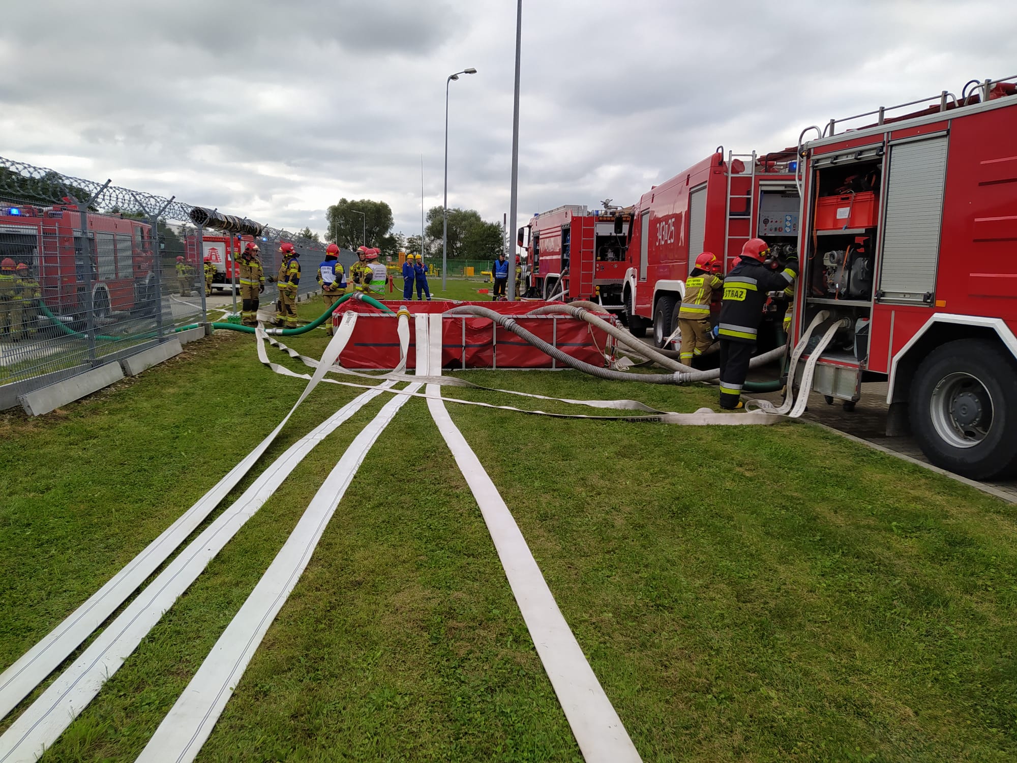 Scenariusz ćwiczeń zakładał budowę zaopatrzenia wodnego na rzece Breń przy wykorzystaniu 2 pomp dużej wydajności, budowę 5 linii wężowych W110 o długości ok. 400 m i dostarczeniu wody do zbiornika zewnętrznego. Następnie woda ze zbiornika została podana na pożar przy pomocy 3 działek wodno-pianowych przenośnych (DWP 6500). Równocześnie w tym samym czasie Specjalistyczna Grupa Ratownictwa Chemiczno-Ekologicznego zabezpieczyła wyciek metanolu z cysterny oraz uszczelniła uszkodzony zawór.