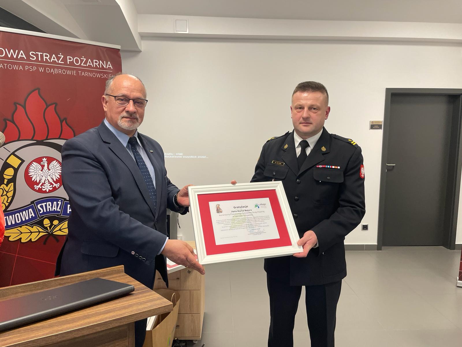 Przekazane zostały również podziękowania za współpracę od Prezesa WFOŚIGW Kazimierza Koprowskiego dla Komendanta Powiatowego, Panów Starostów oraz Prezesa Powiatowego ZOSP RP w Dąbrowie Tarnowskiej.