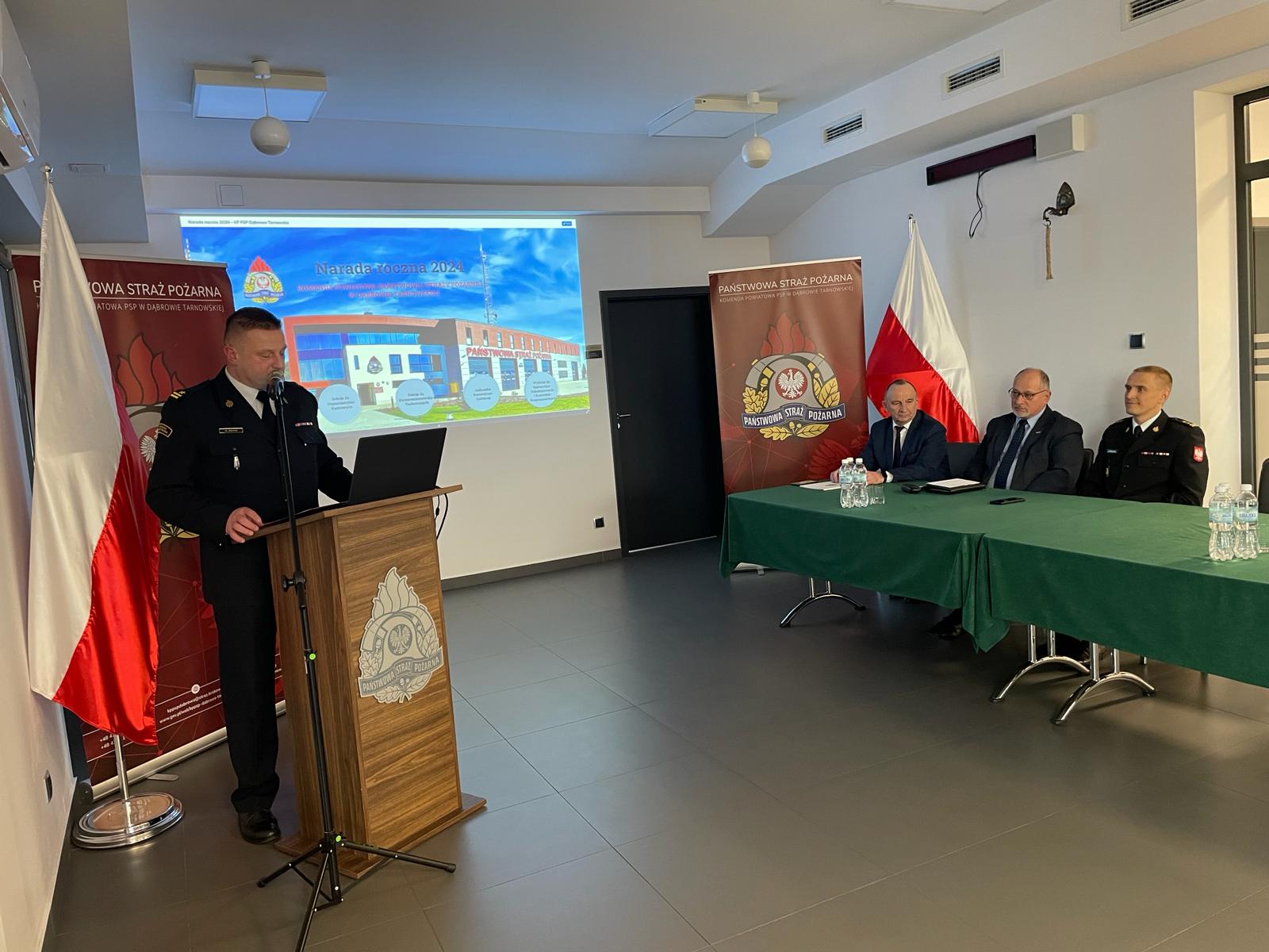 23 lutego 2024 roku w Komendzie Powiatowej Państwowej Straży Pożarnej w Dąbrowie Tarnowskiej odbyła się narada podsumowująca działalność komendy w 2023 r.