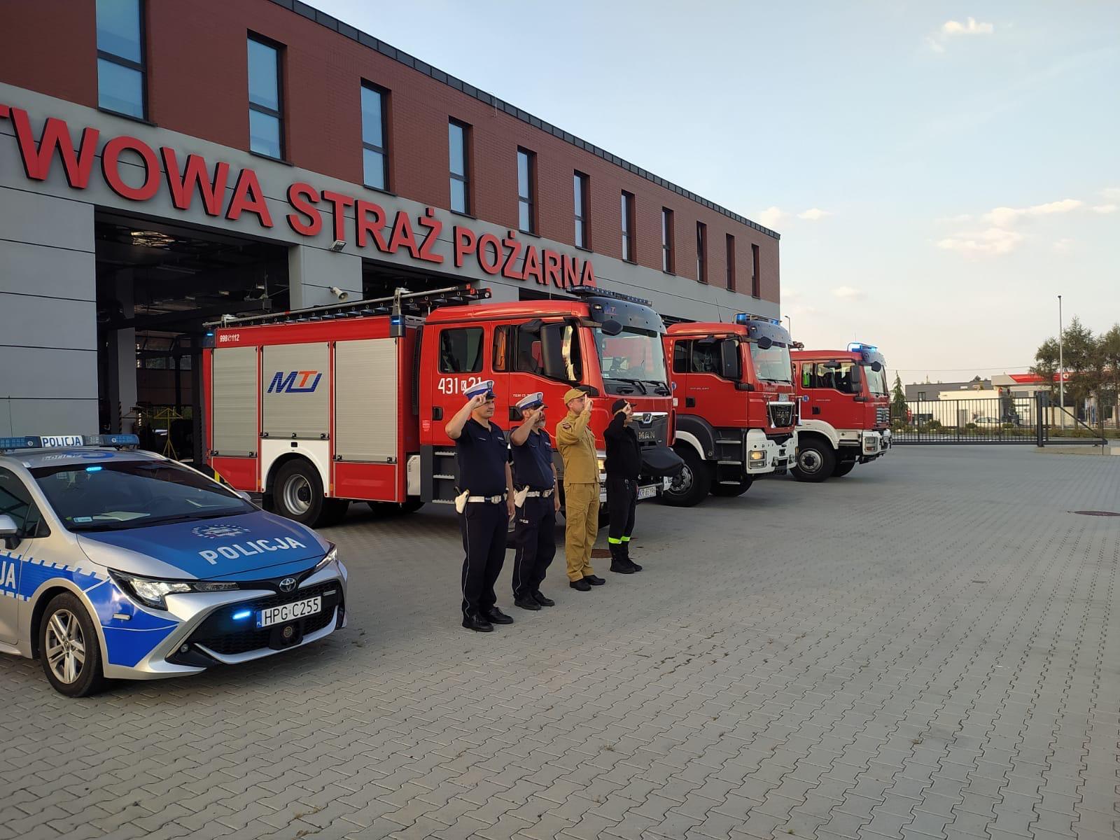 Strażacy Komendy Powiatowej PSP w Dąbrowie Tarnowskiej oraz Ochotniczych Straży Pożarnych z powiatu dąbrowskiego w niedzielny wieczór o godz. 18:00, przed swoimi remizami, oddali hołd strażakom z JRG 1 oraz JRG 2 Poznań, którzy zginęli podczas pożaru kamienicy przy ul. Kraszewskiego w Poznaniu.