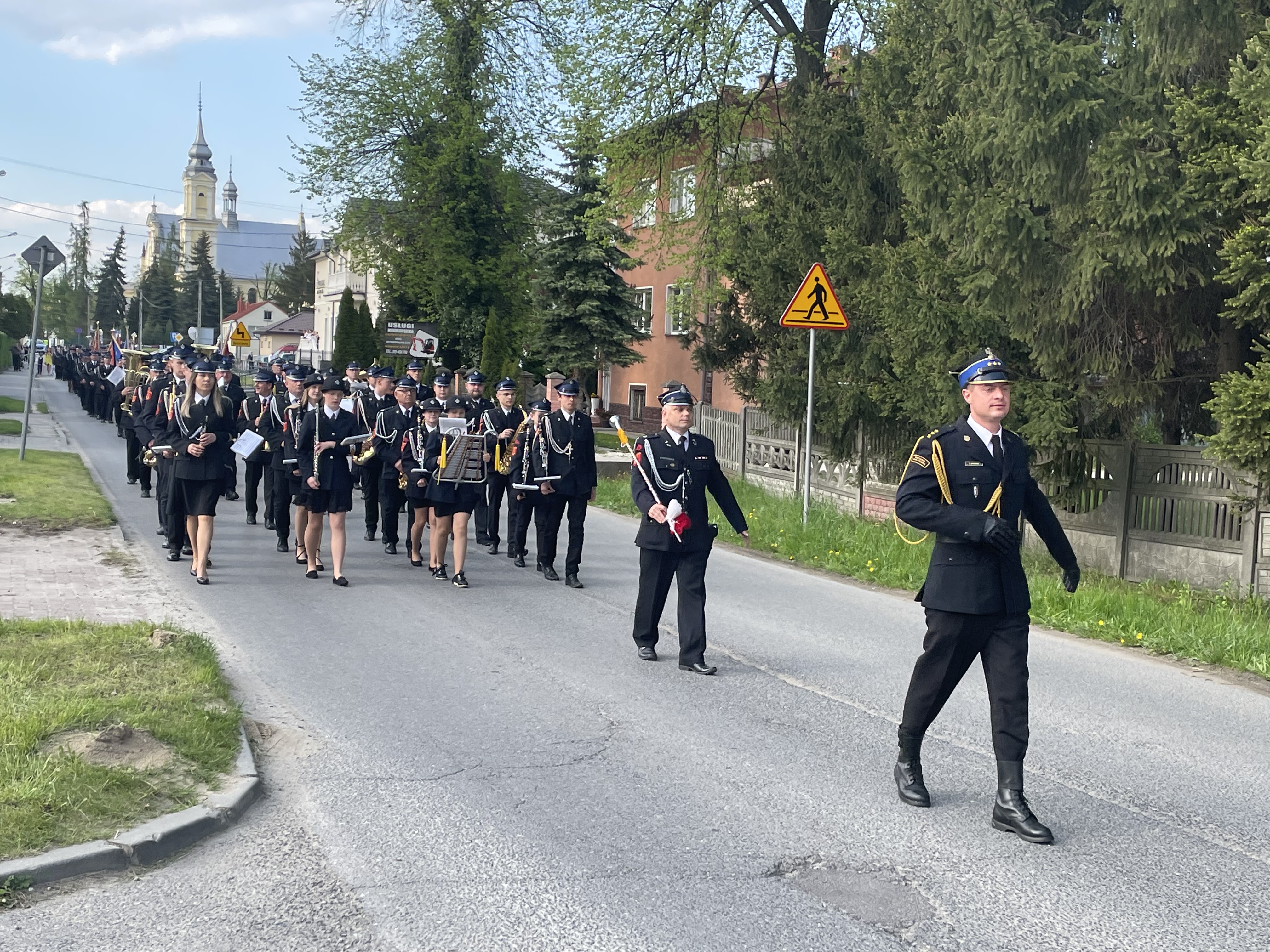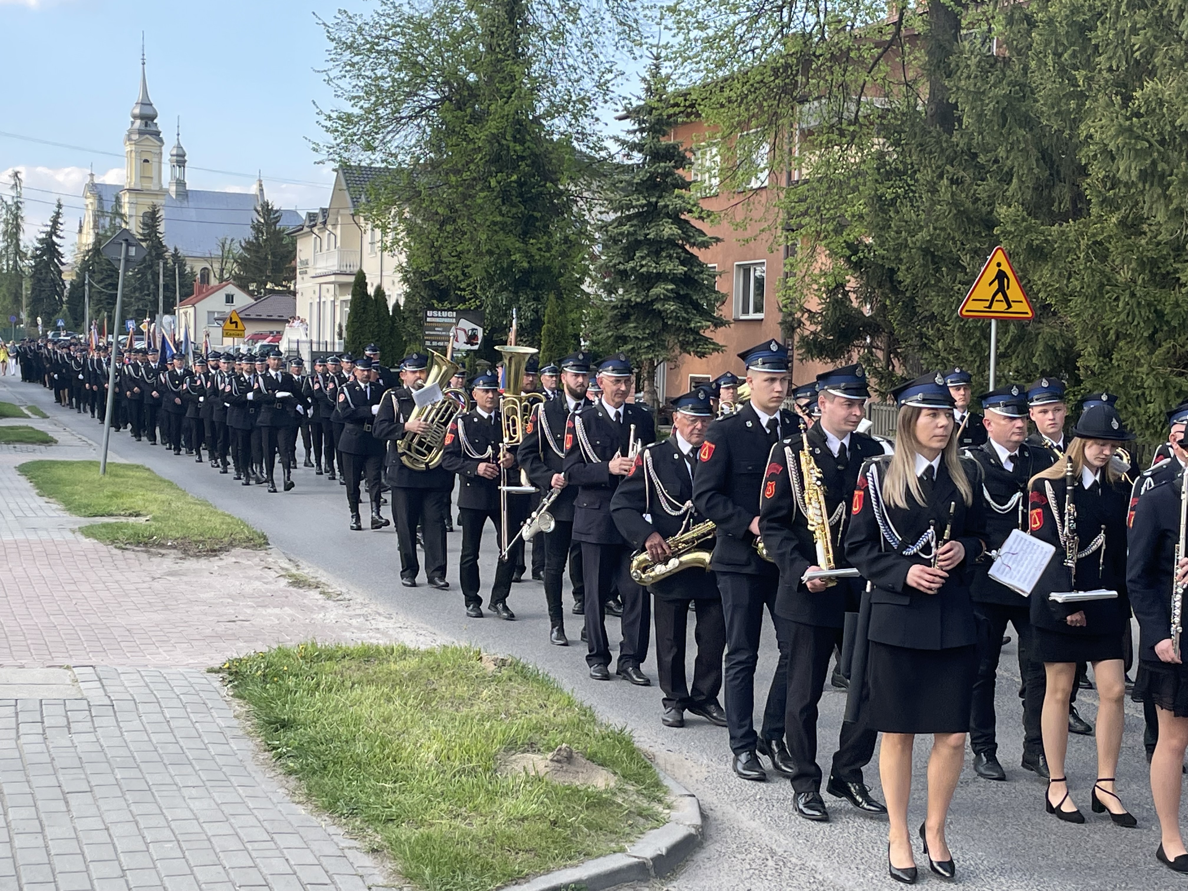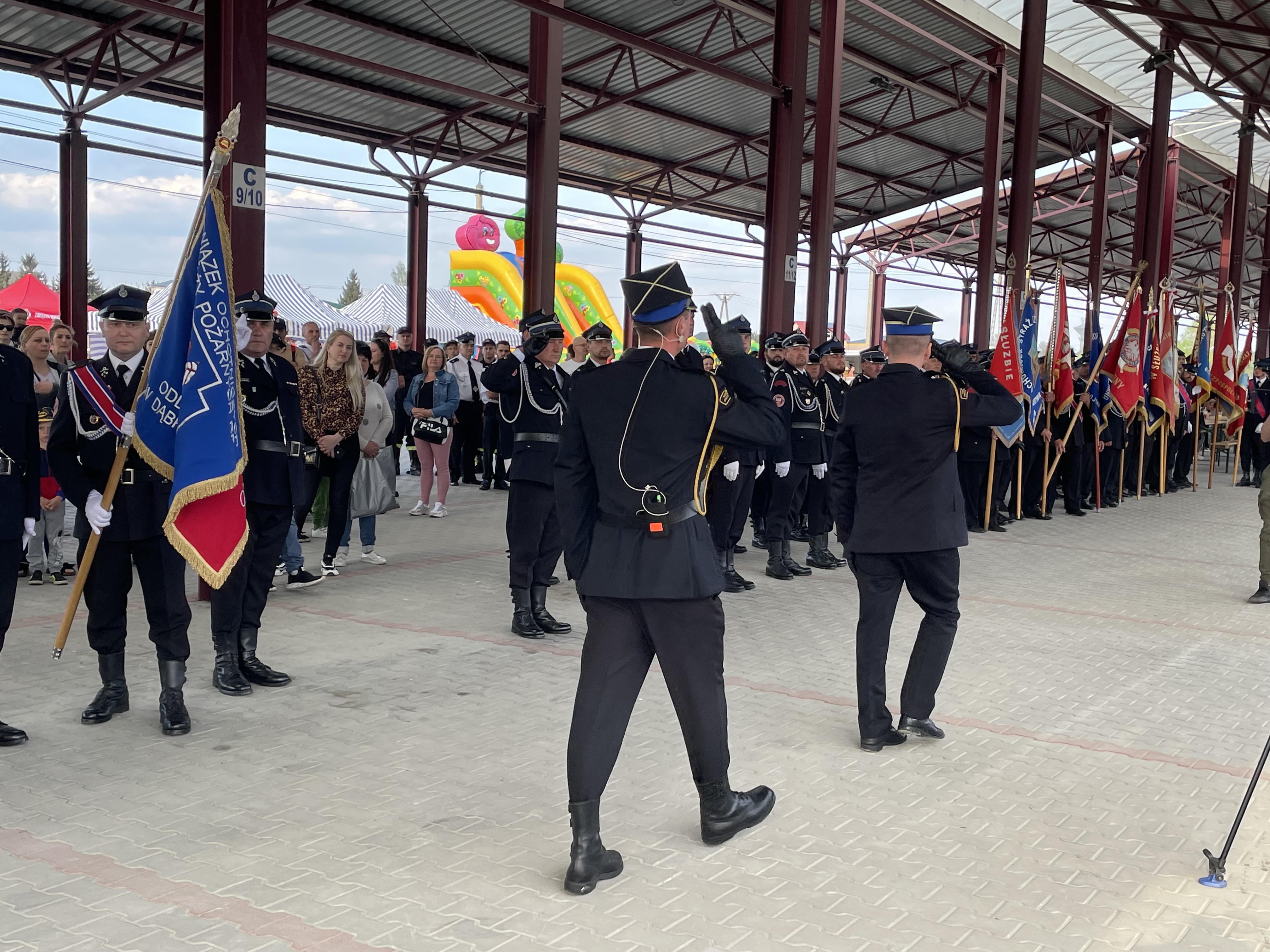 Następnie zaproszeni goście wspólnie ze strażakami prowadzeni przez Orkiestrę Dętą przy OSP Szczucin pod batutą Jarosława Dzięgla oraz Kompanię Honorową Strażaków Powiatu Dąbrowskiego i poczty sztandarowe, przemaszerowali ulicami Szczucina na plac targowy, gdzie odbyła się dalsza część uroczystości.