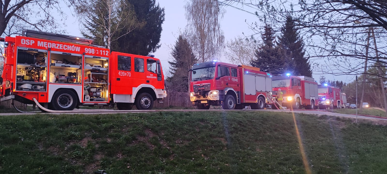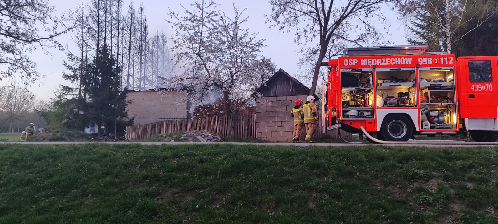 Po zlokalizowaniu pożaru tlące się siano i słomę przekopano i przelano wodą. W działaniach ratowniczo-gaśniczych udział brały zastępy: GBARt 2,5/25 i GCBA 9,5/65 z JRG Dąbrowa Tarnowska, zastęp GBA z OSP Mędrzechów, zastęp GBA z OSP Grądy, zastępy GBA i GBARt z OSP Szczucin, zastęp GLBM z OSP Wójcina oraz patrol Policji.