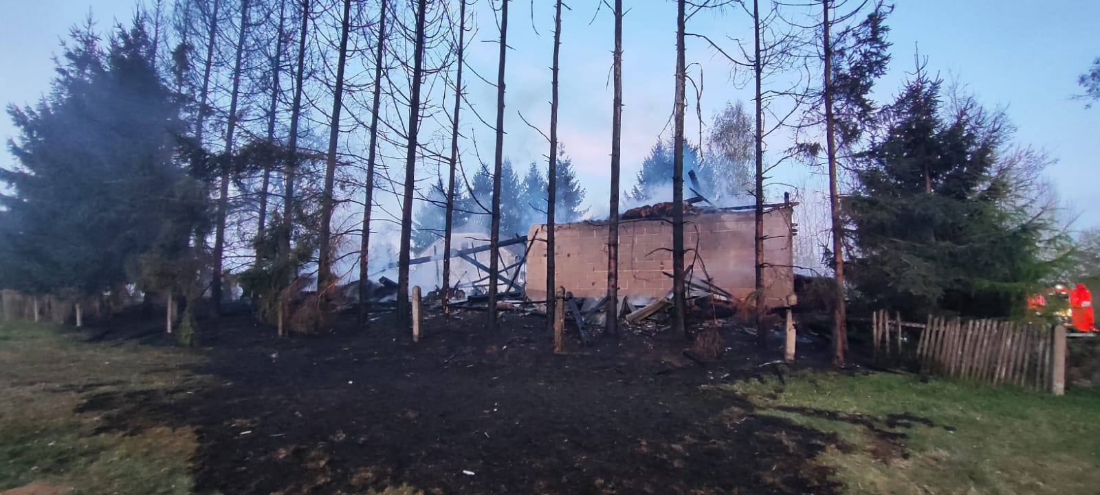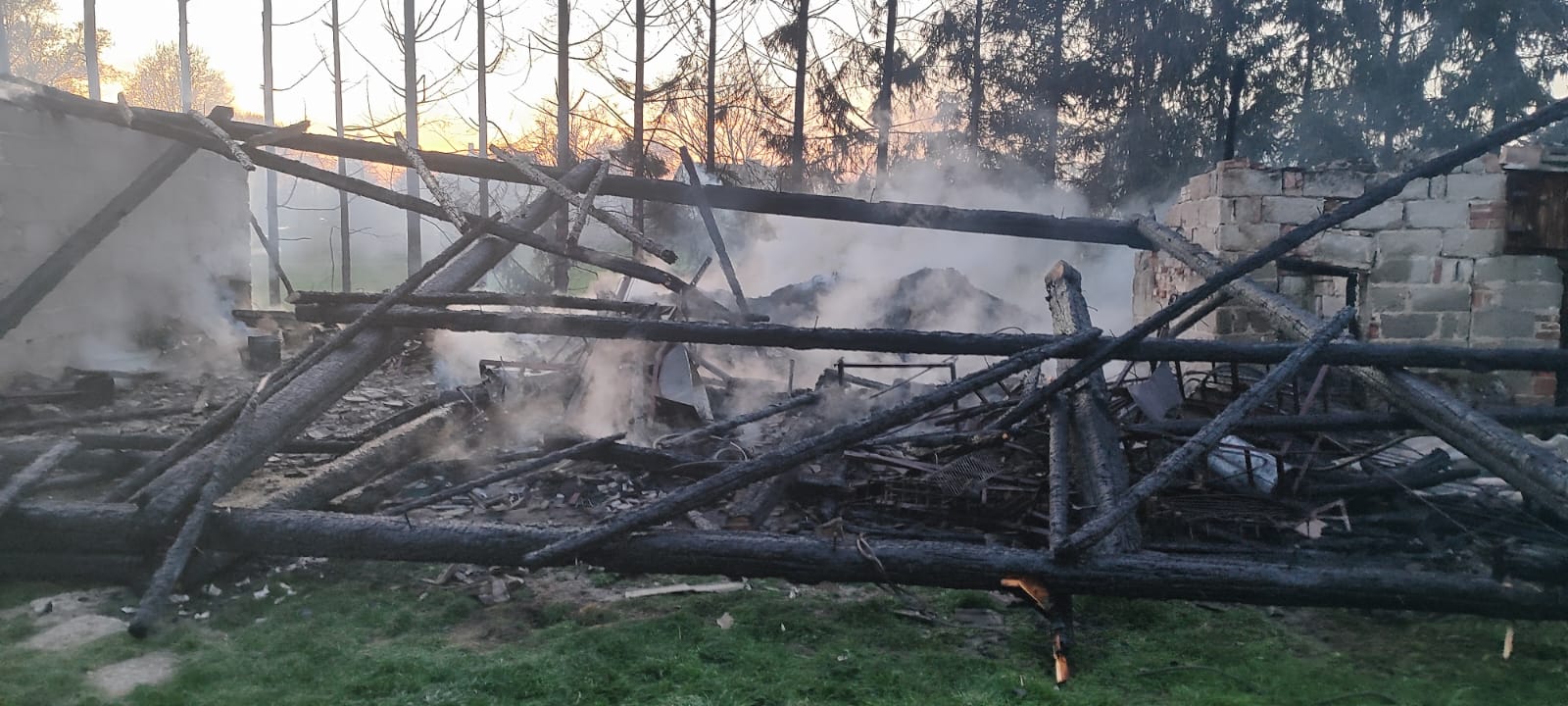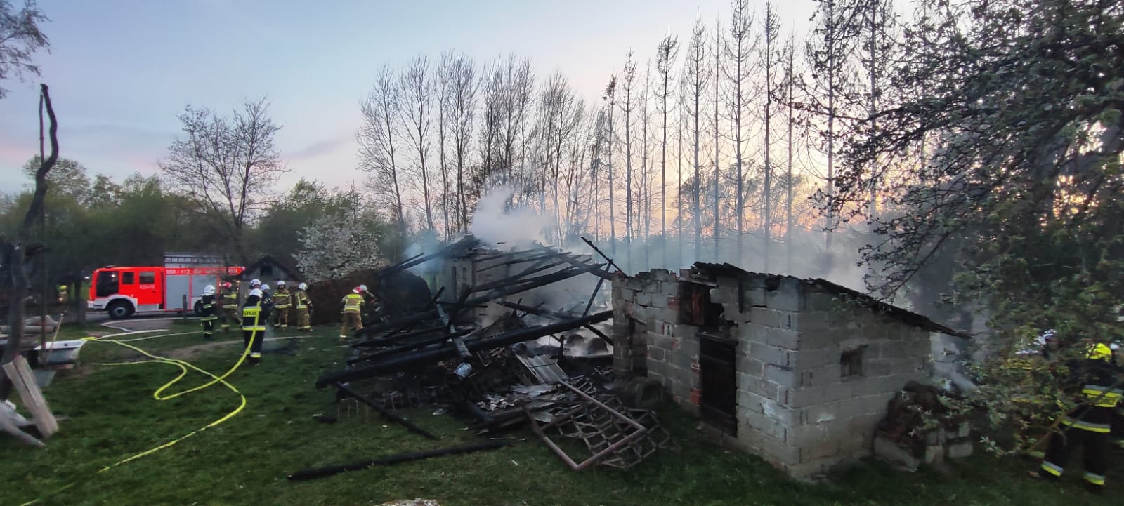 Działania Straży Pożarnej polegały na zabezpieczeniu miejsca zdarzenia oraz podaniu 4 prądów wody w natarciu na palącą się stodołę i stajnię.