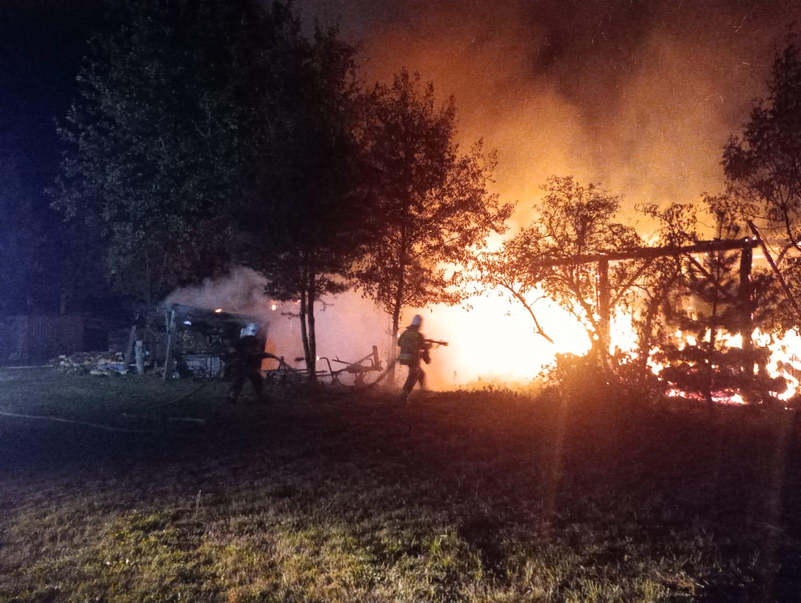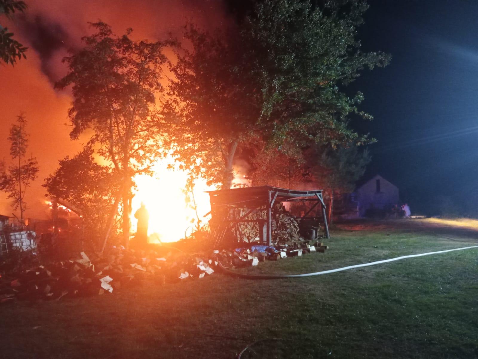 Pożar dwóch budynków gospodarczych w Dąbrówkach Breńskich