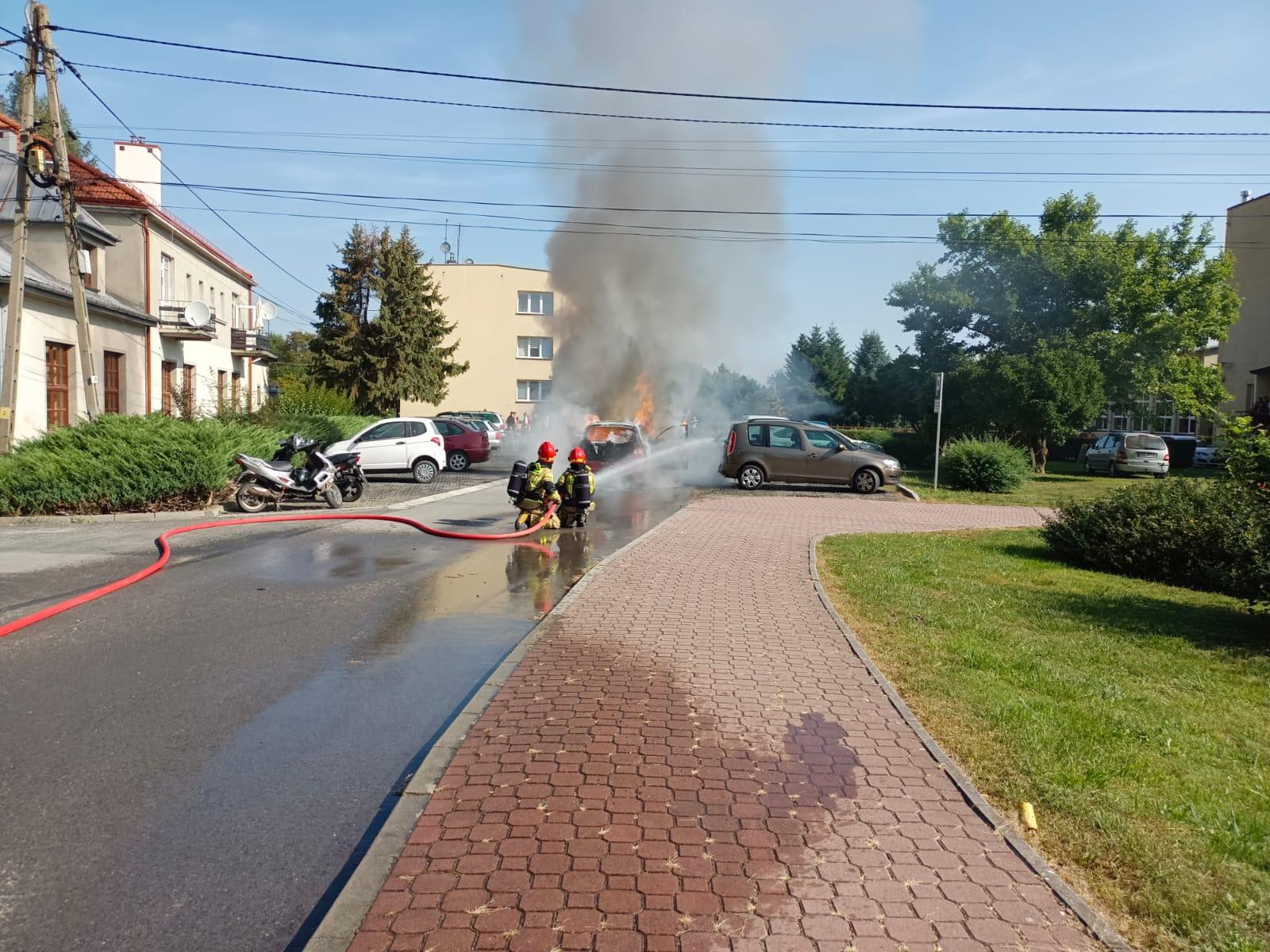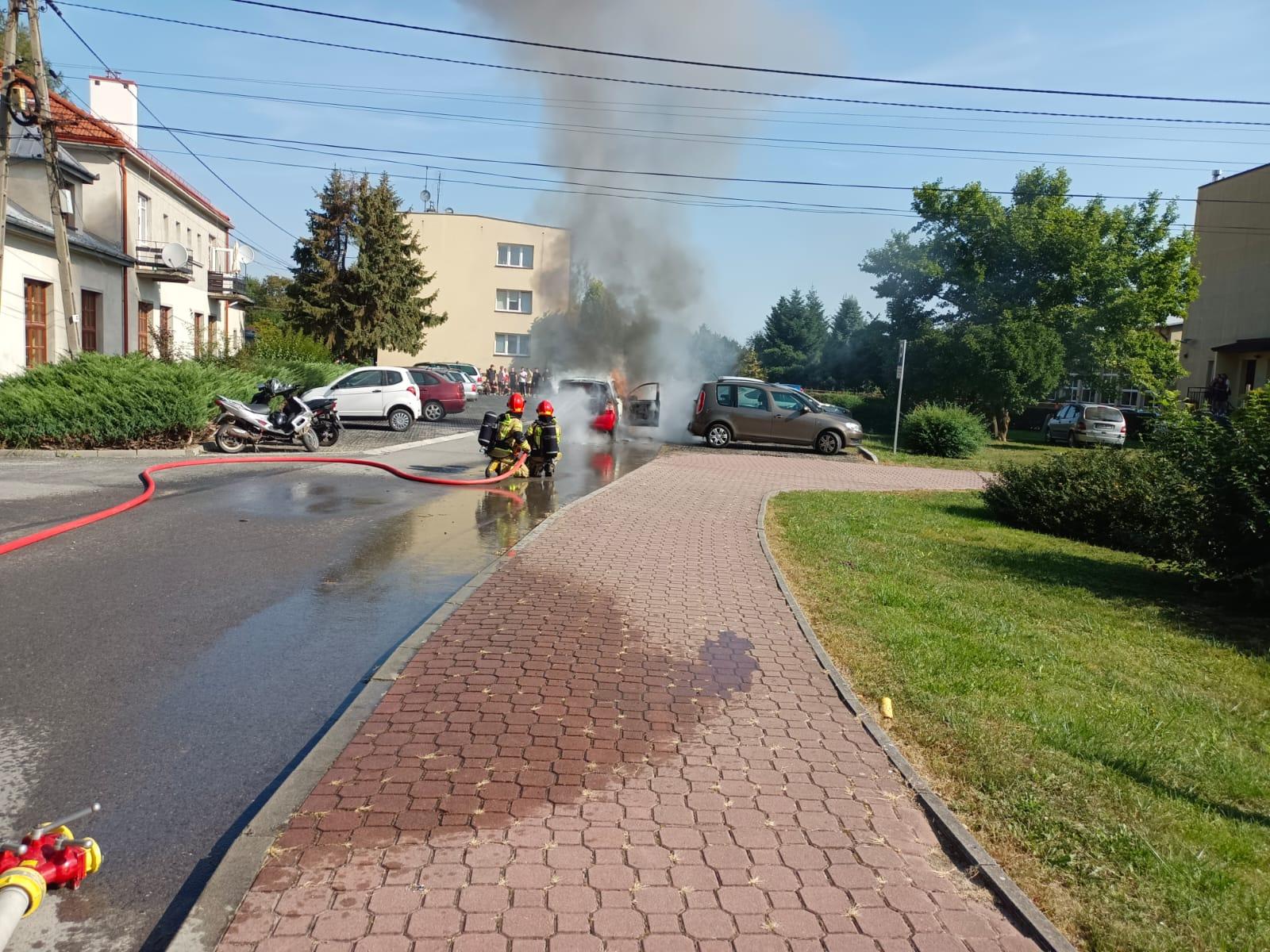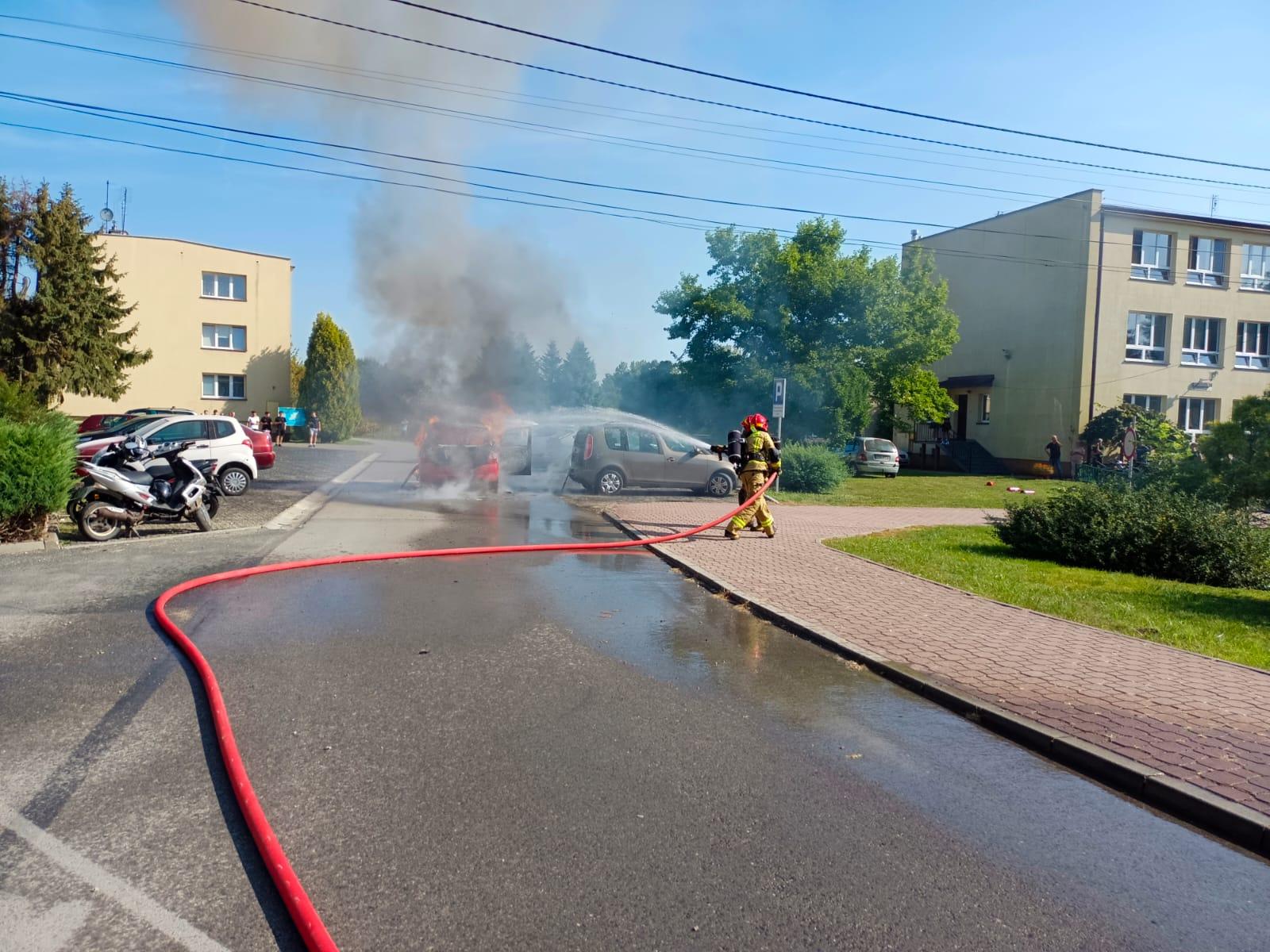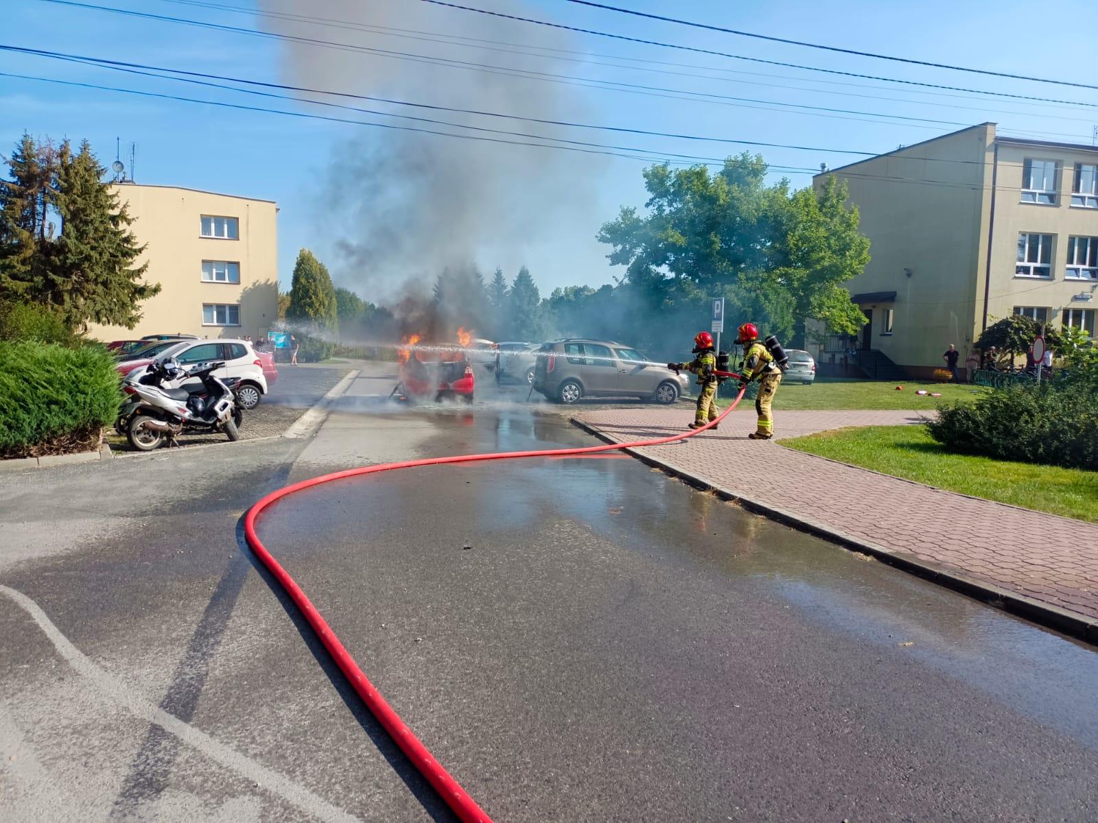 Pożar samochodu w Brniu