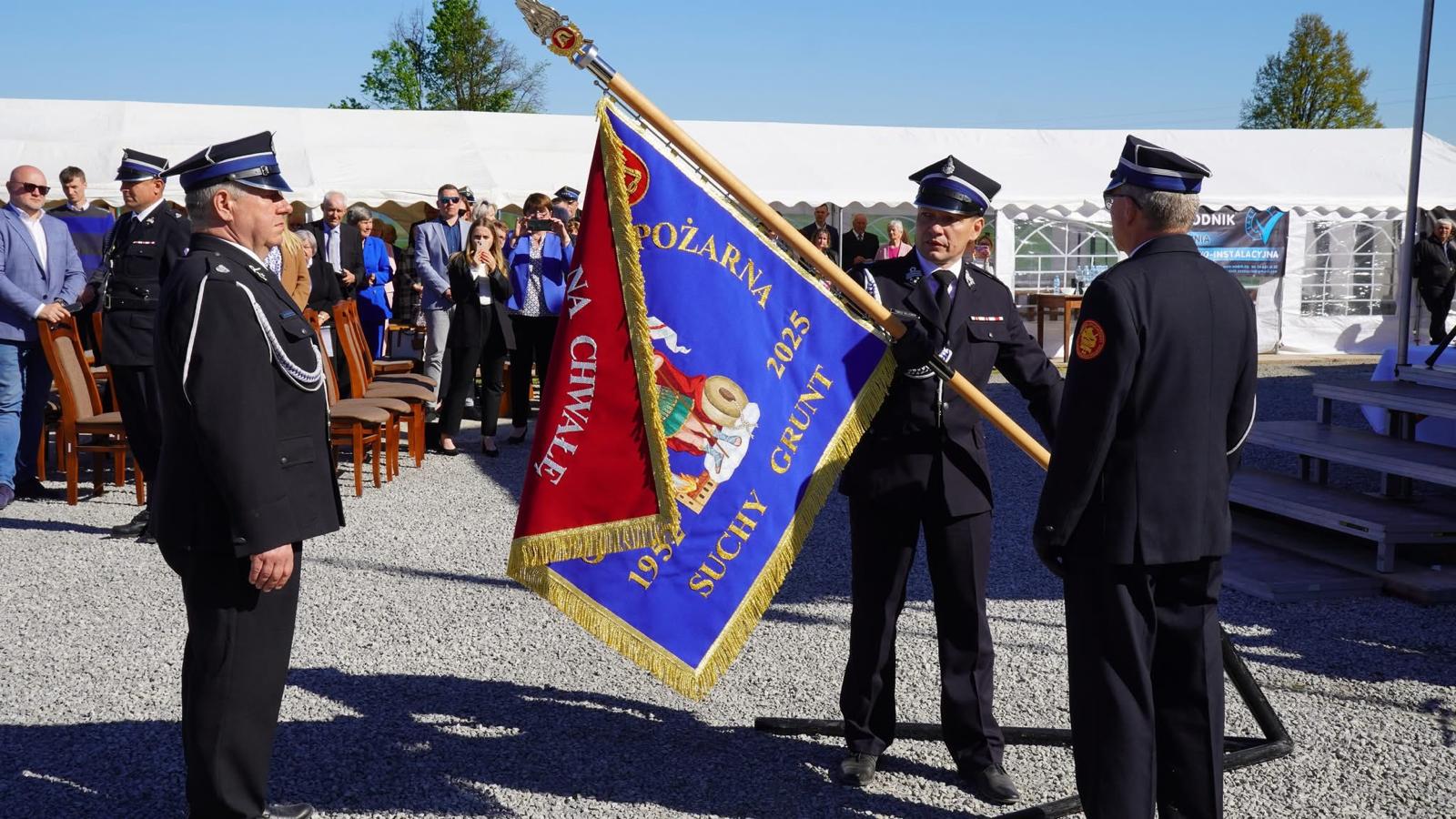 27 kwietnia 2025 r. w niedzielne popołudnie odbyła się uroczystość nadania sztandaru dla jednostki Ochotniczej Straży Pożarnej w Suchym Gruncie. Wydarzenie poprzedziła polowa Msza Święta, której przewodniczył Kapelan Powiatowy Strażaków Ks. Zygmunta Warzecha.