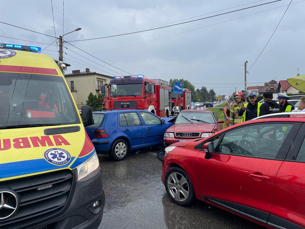 Wypadek trzech samochodów w Dąbrowie Tarnowskiej