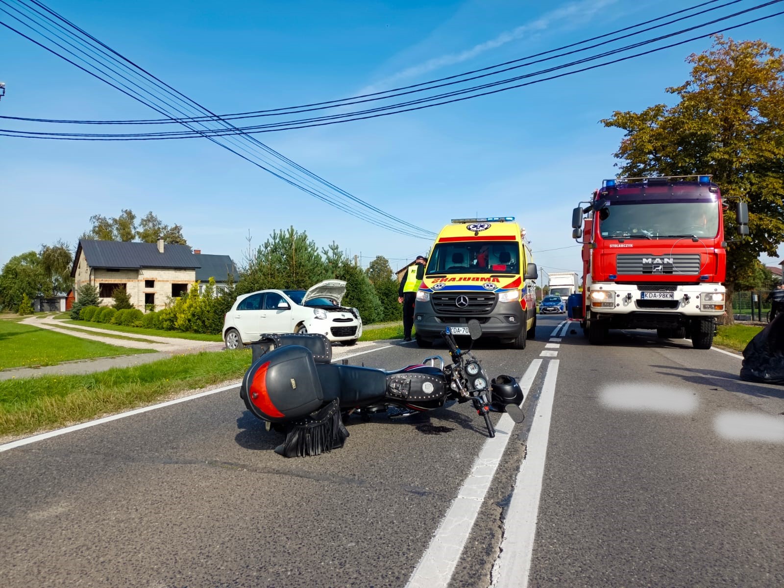 11 października br. o godzinie 12:28 do Stanowiska Kierowania Komendanta Powiatowego w Dąbrowie Tarnowskiej wpłynęło zgłoszenie o wypadku motocykla i samochodu osobowego na drodze wojewódzkiej 975 w miejscowości Morzychna. W wyniku zdarzenia poszkodowana została jedna osoba - kierujący motocyklem. Na czas działań ruch na drodze został wstrzymany.