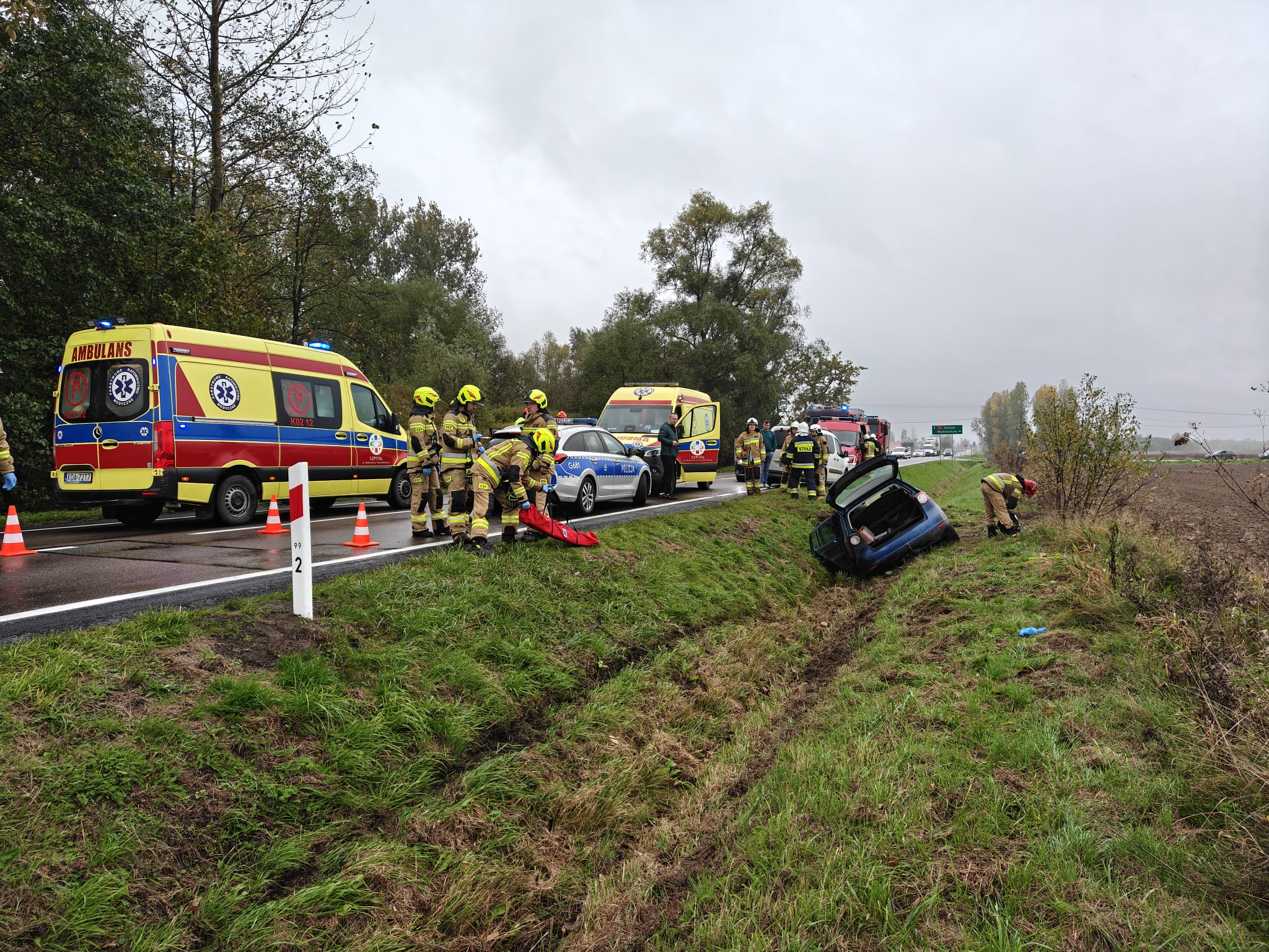 11 października 2025 roku o godz. 10:31 do Stanowiska Kierowania Komendanta Powiatowego PSP w Dąbrowie Tarnowskiej wpłynęło zgłoszenie o wypadku w miejscowości Skrzynka. W wyniku zdarzenia trzy osoby zostały poszkodowane. W działaniach udział brały: zastęp GBARt 2,5/25 i GBARt 3/30 z JRG Dąbrowa Tarnowska, zastęp SLRt z OSP Smęgorzów, zastęp GBARt z OSP Szczucin, trzy Zespoły Ratownictwa Medycznego oraz patrol Policji. Droga krajowa nr 73 była nieprzejezdna ok. 1 godziny.