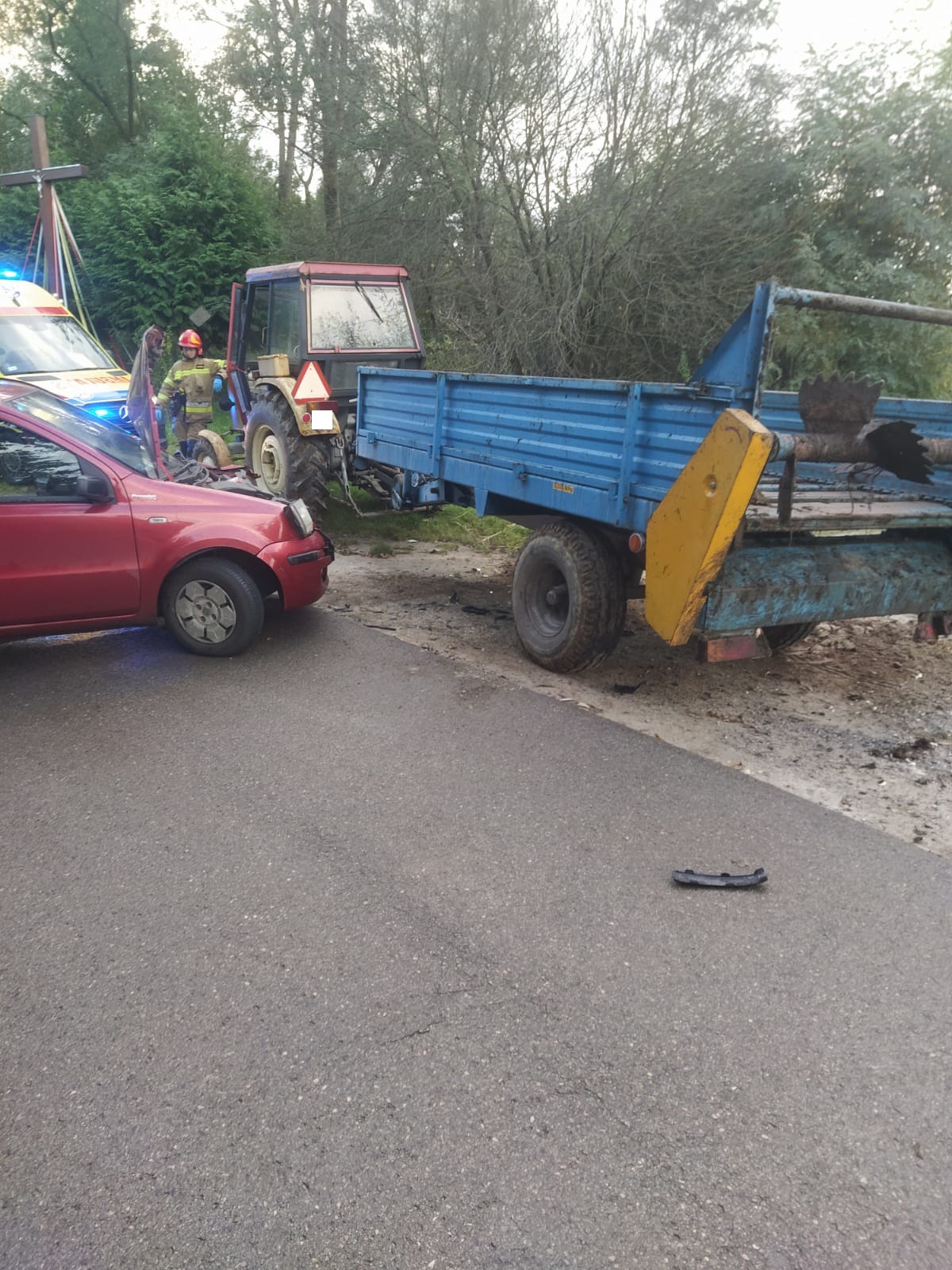 16 października 2023 r. ok godz. 16:37 doszło do wypadku z udziałem samochodu osobowego i ciagnika rolniczego z rozrzutnikiem. Zdarzenie miało miejsce na drodze gminnej w miejscowości Smęgorzów. W zdarzeniu poszkodowana została jedna osoba. W działaniach udział brały zastępy: GBARt 2,5/25 z JRG Dąbrowa Tarnowska, zastep SLRt z OSP Smęgorzów, Zespół Ratownictwa Medycznego oraz patrol Policji.