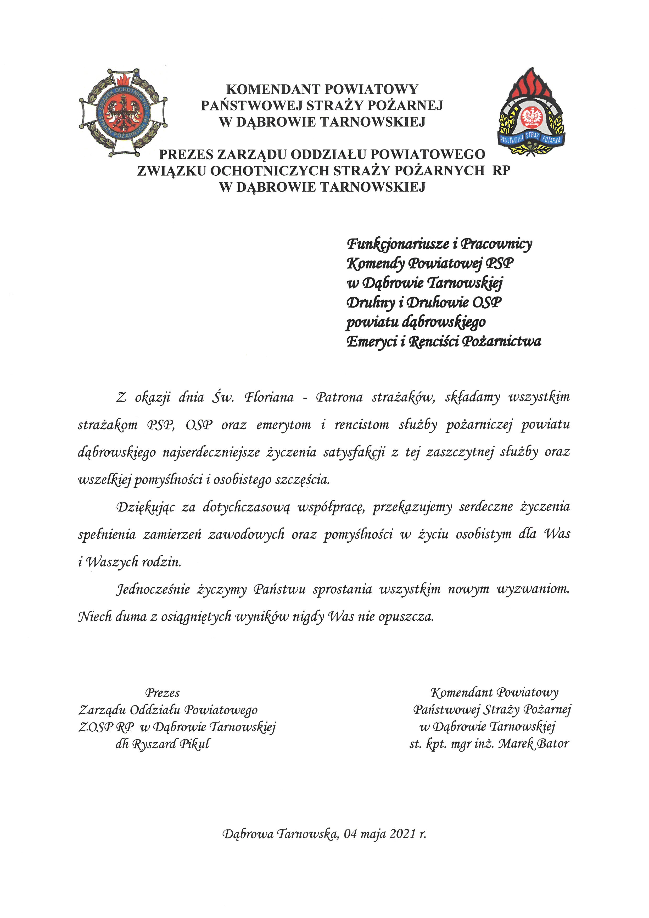 Życzenia Komendanta Powiatowego PSP i Prezesa Zarządu Oddziału Powiatowego ZOSP RP z okazji Dnia Strażaka 04.05.2021 Zdjęcia (1) Pokaż zdjęcie 1 z galerii.
