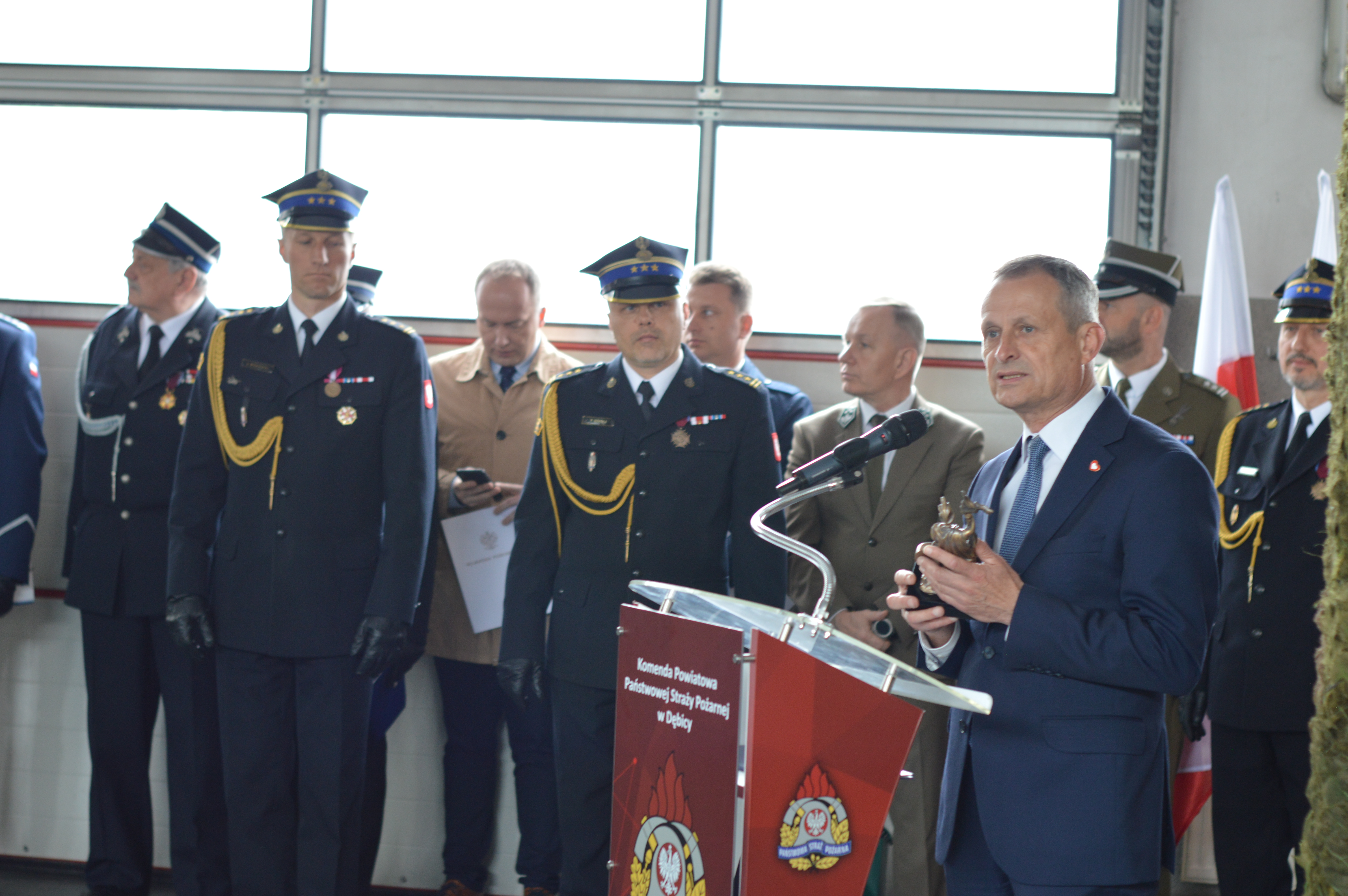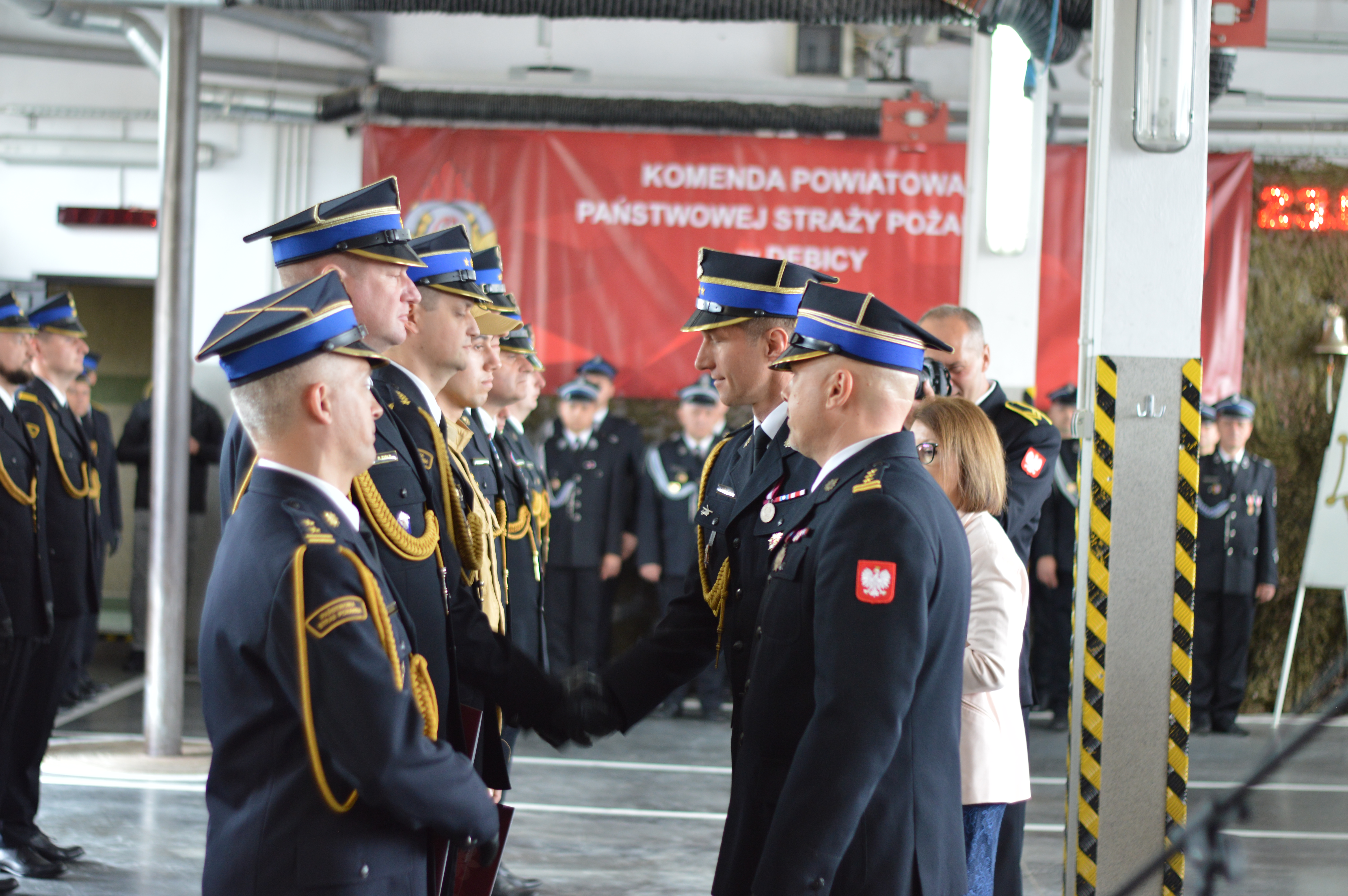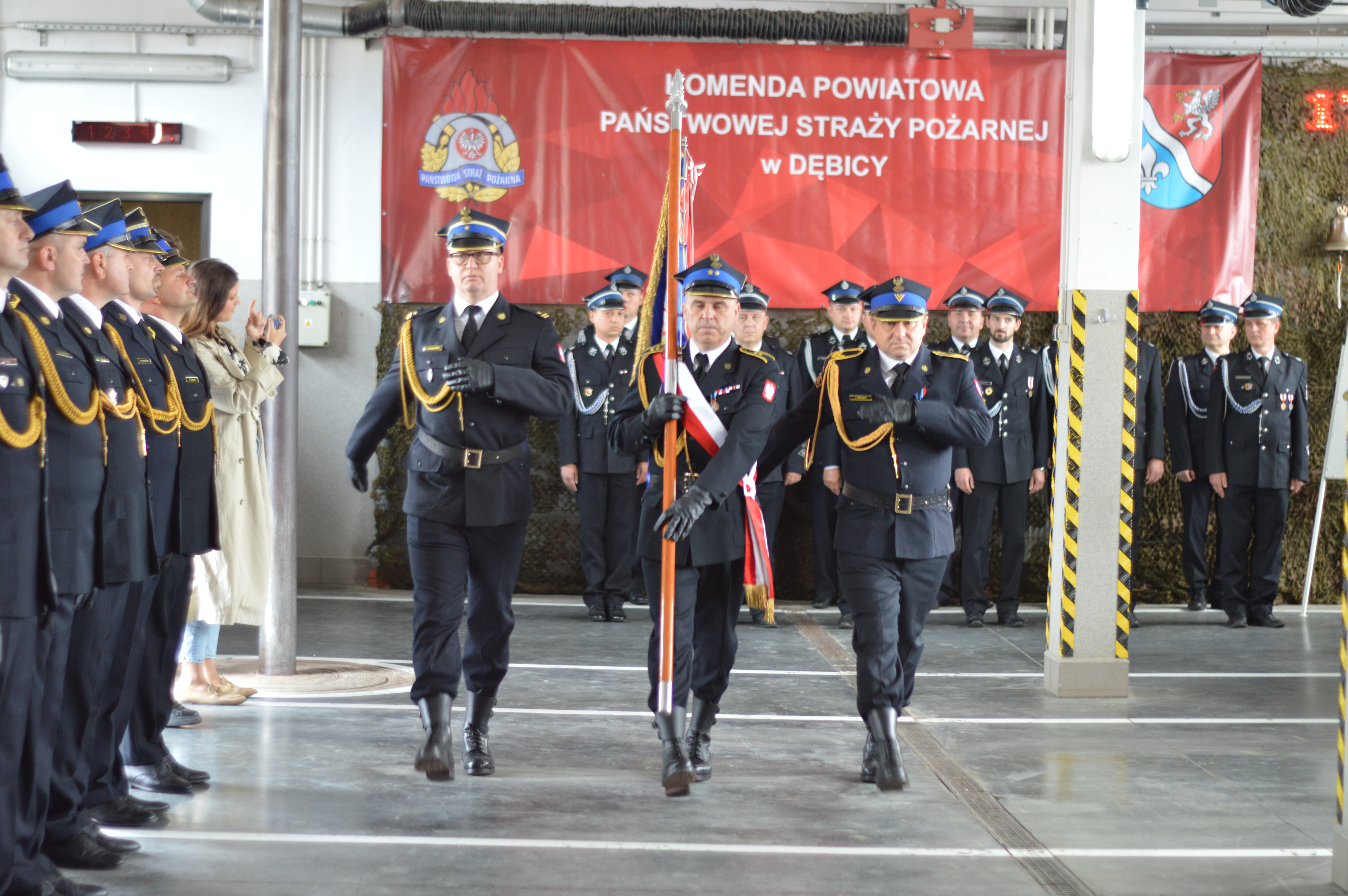 Po odśpiewaniu hymnu państwowego i przemówieniu komendanta powiatowego PSP w Dębicy przystąpiono do wręczenia odznaczeń i awansów na wyższe stopnie służbowe.