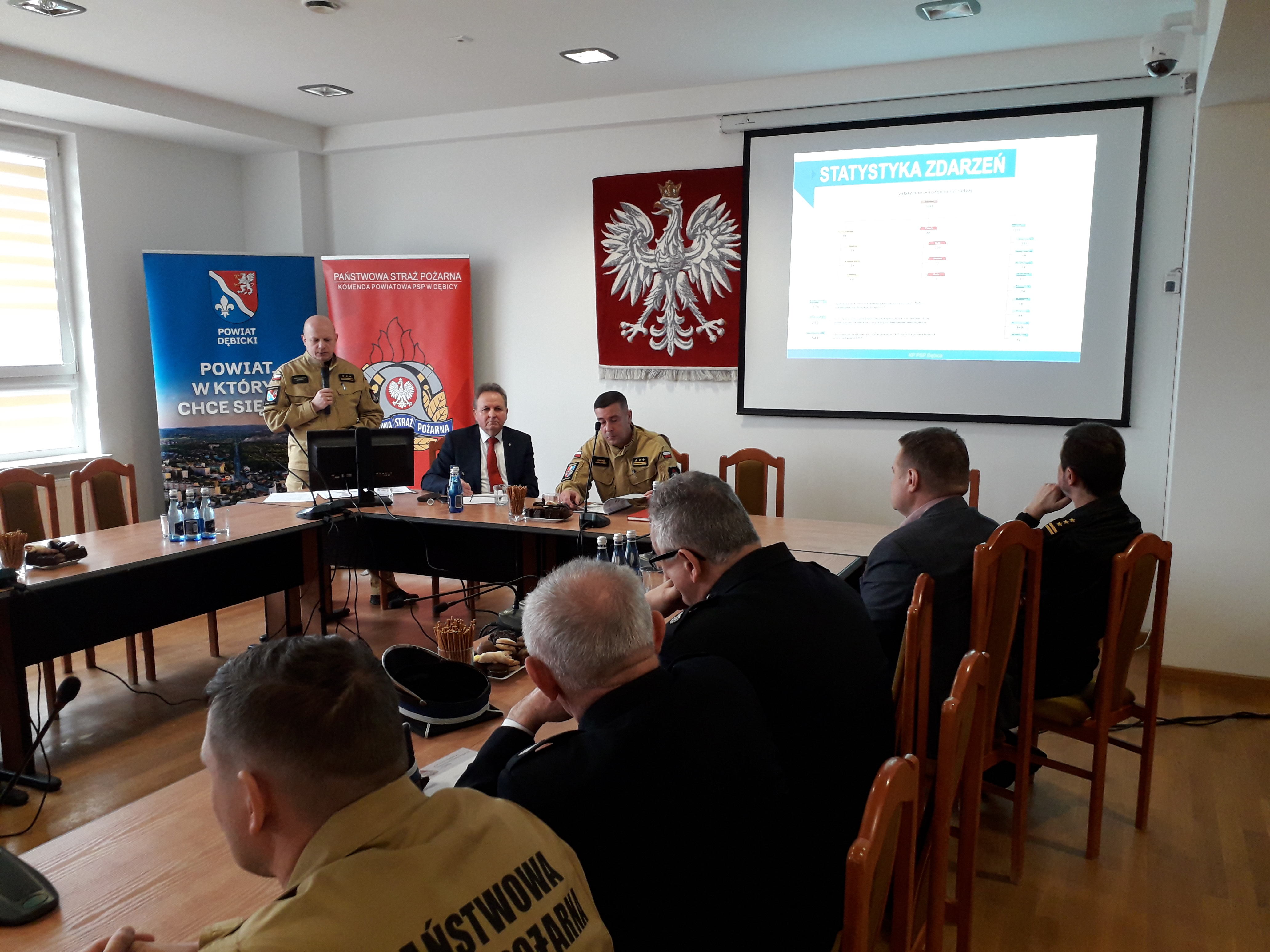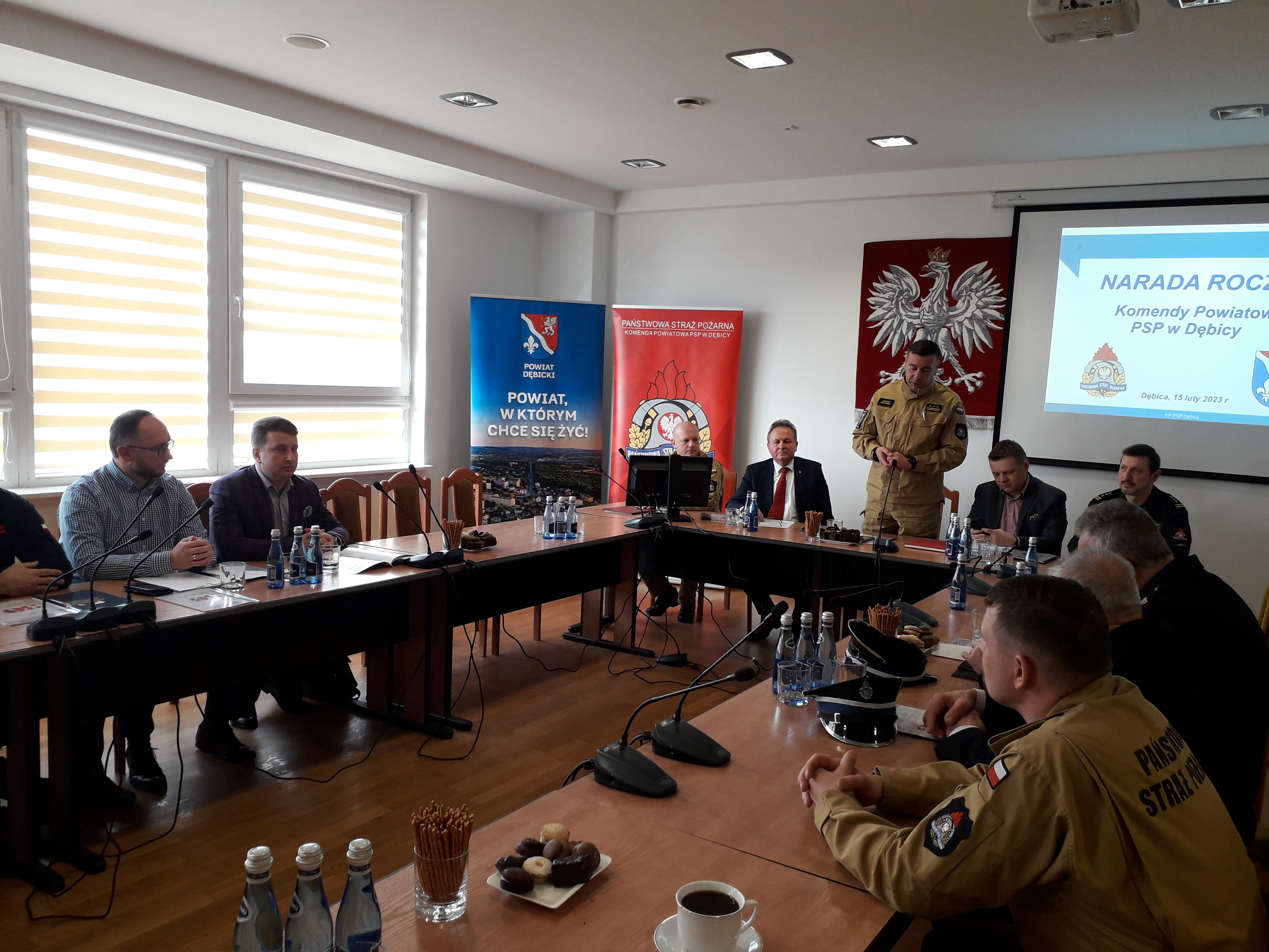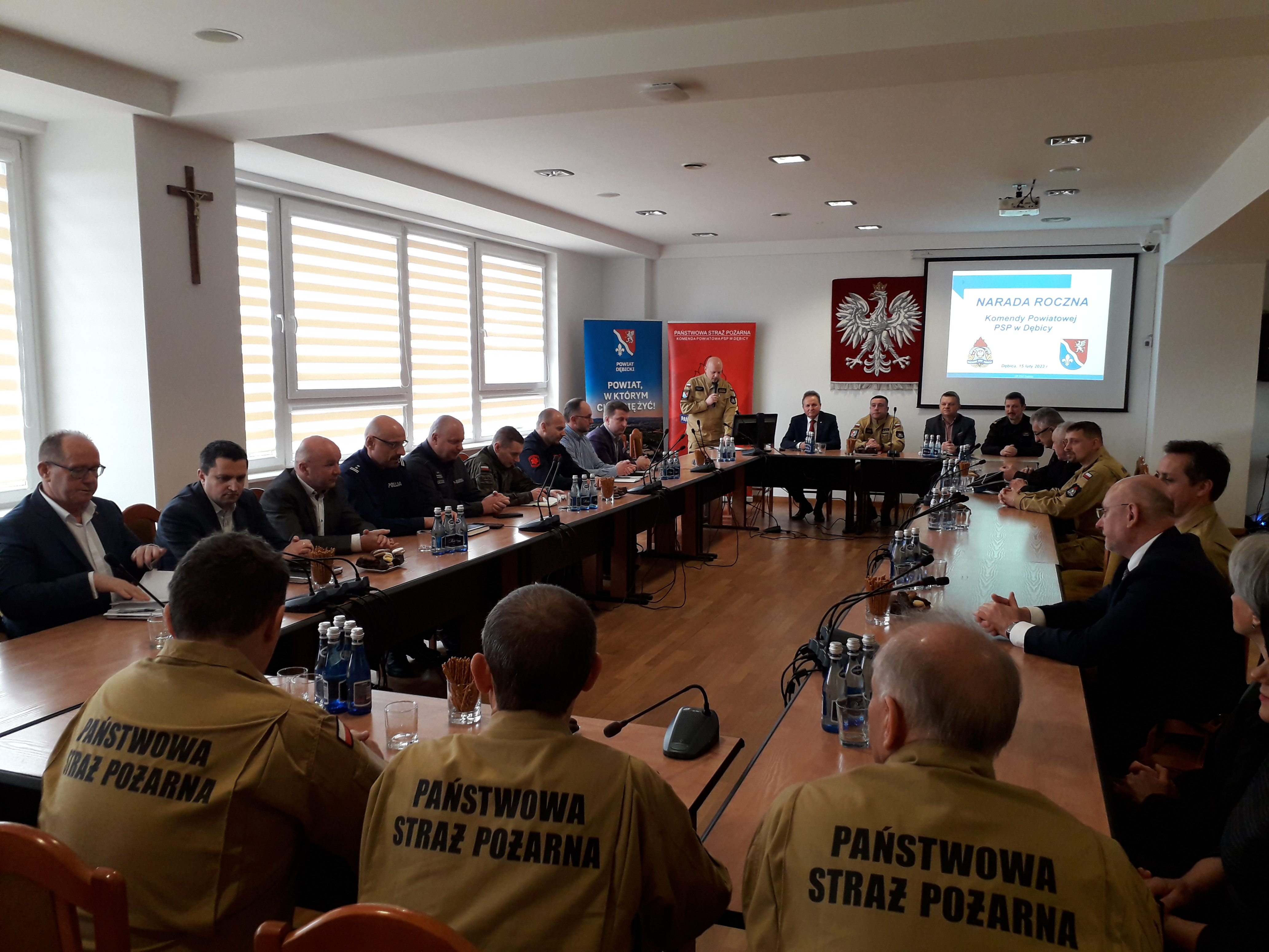 15 lutego w budynku starostwa powiatowego w Dębicy odbyła się narada roczna podsumowująca działalności Komendy Powiatowej Państwowej Straży Pożarnej w Dębicy i jednostek OSP w 2022 roku.