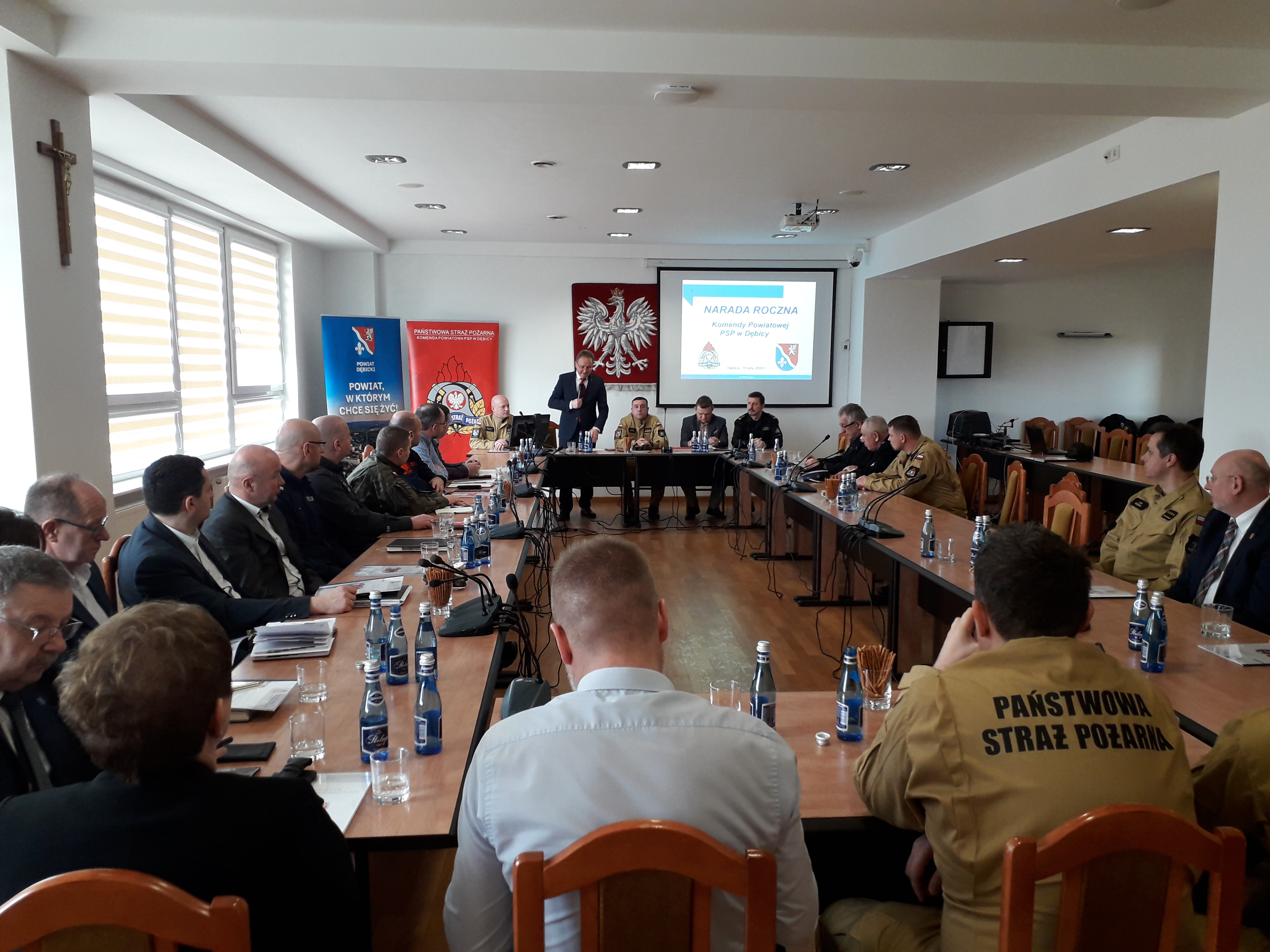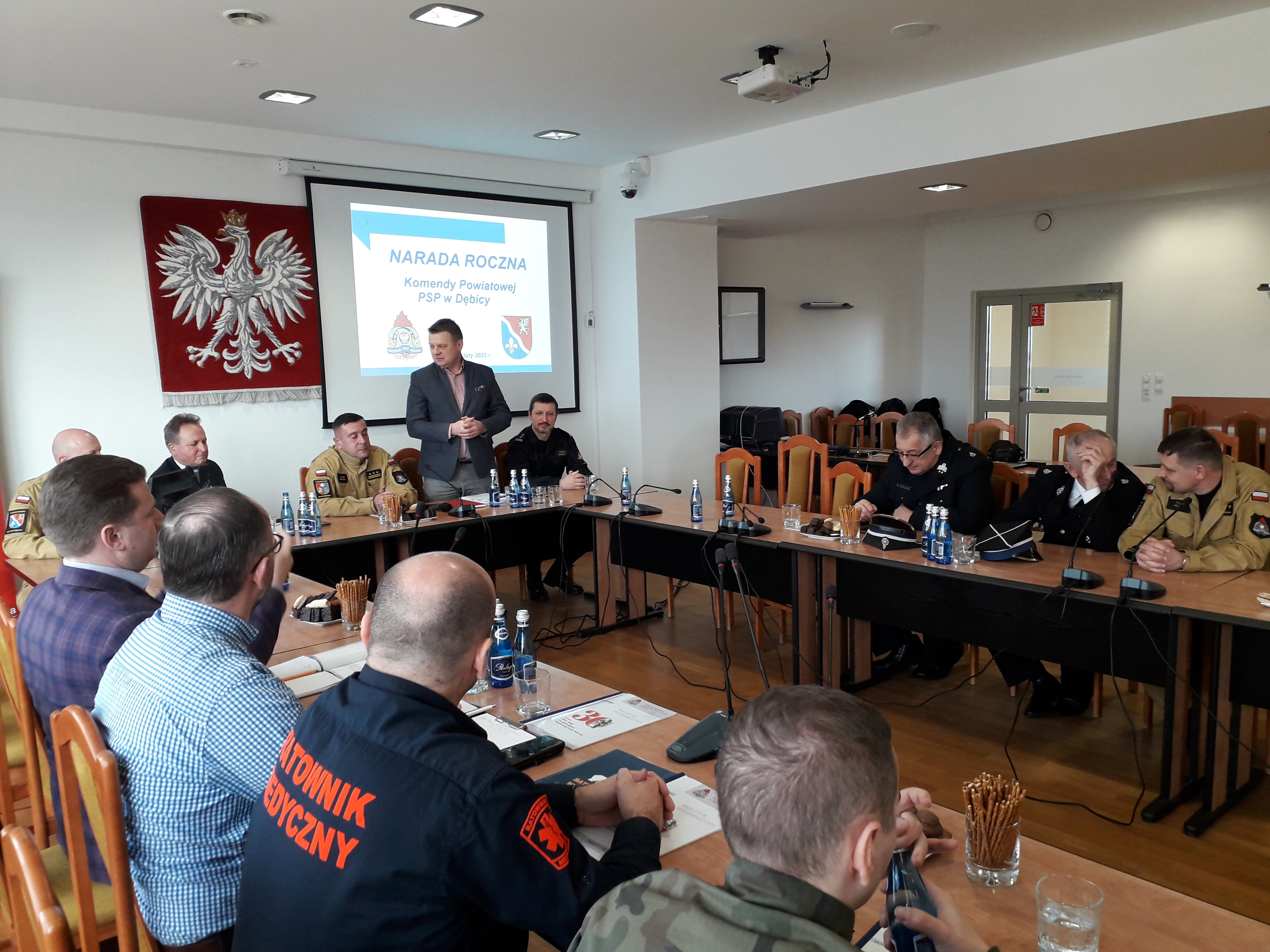 W naradzie udział wzięli między innymi: poseł na Sejm Jan Warzecha, zastępca podkarpackiego komendanta wojewódzkiego PSP st. bryg. Janusz Jabłoński, wicestarosta powiatu dębickiego Adam Pieniążek, zastępca diecezjalnego duszpasterza straży pożarnych, a zarazem kapelan powiatowy OSP RP ks. Józef Jasiurkowski, prezes Zarządu Oddziału Powiatowego ZOSP RP druh Stanisław Bryg, przedstawiciel biura poselskiego posła Krzysztofa Sobolewskiego, burmistrzowie i wójtowie gmin powiatu dębickiego, szefowie instytucji i służb, które na co dzień współpracują z komendą, przedstawiciel związków zawodowych oraz funkcjonariusze komendy.