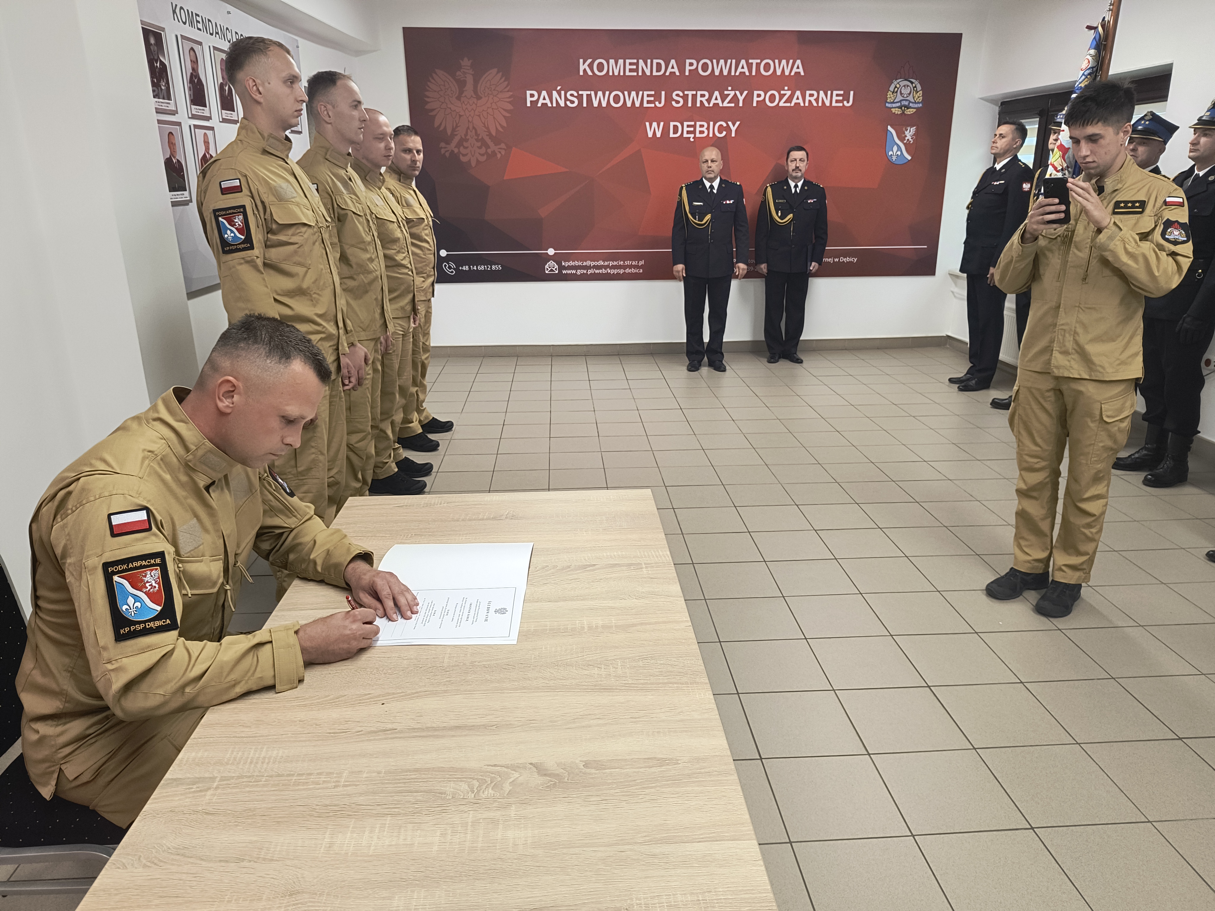 11.09.2025 roku w Komendzie Powiatowej Państwowej Straży Pożarnej w Dębicy odbyła się uroczysta zbiórka z okazji ślubowania nowoprzyjętych funkcjonariuszy Państwowej Straży Pożarnej. Ślubowanie rozpoczynające się od słów: „Ja, obywatel Rzeczypospolitej Polskiej, świadom podejmowanych obowiązków strażaka, uroczyście ślubuję ....” złożyli: