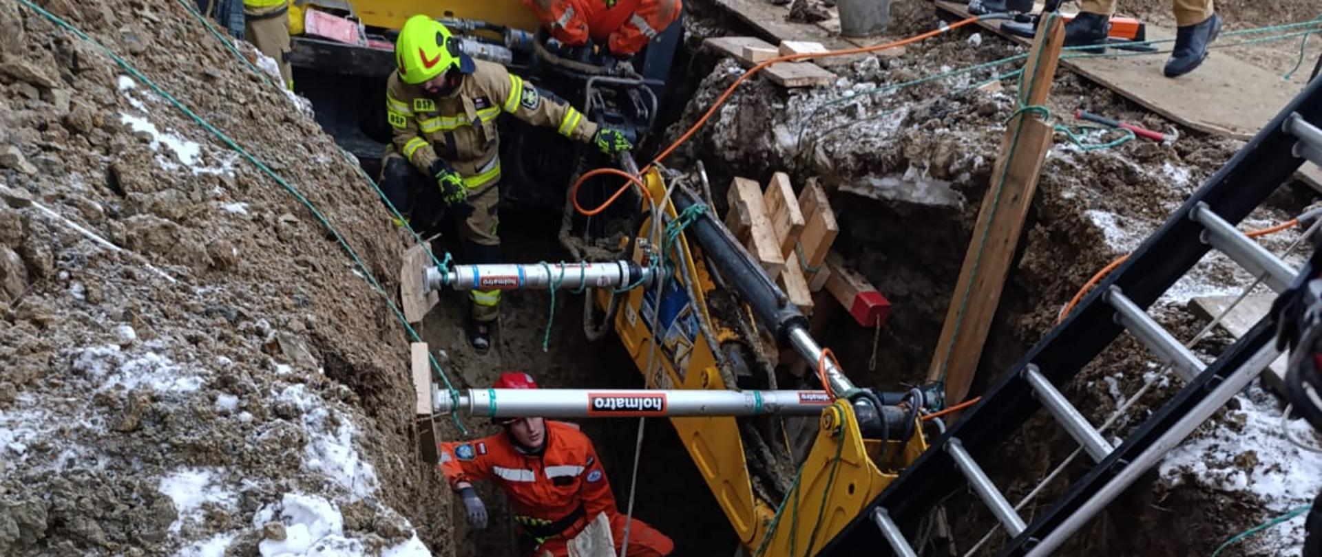 Udział dębickich strażaków w akcji ratowania mężczyzny przysypanego ziemią w studni