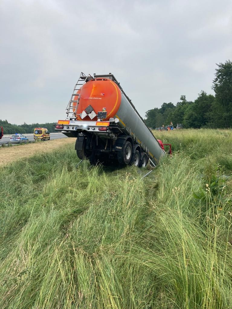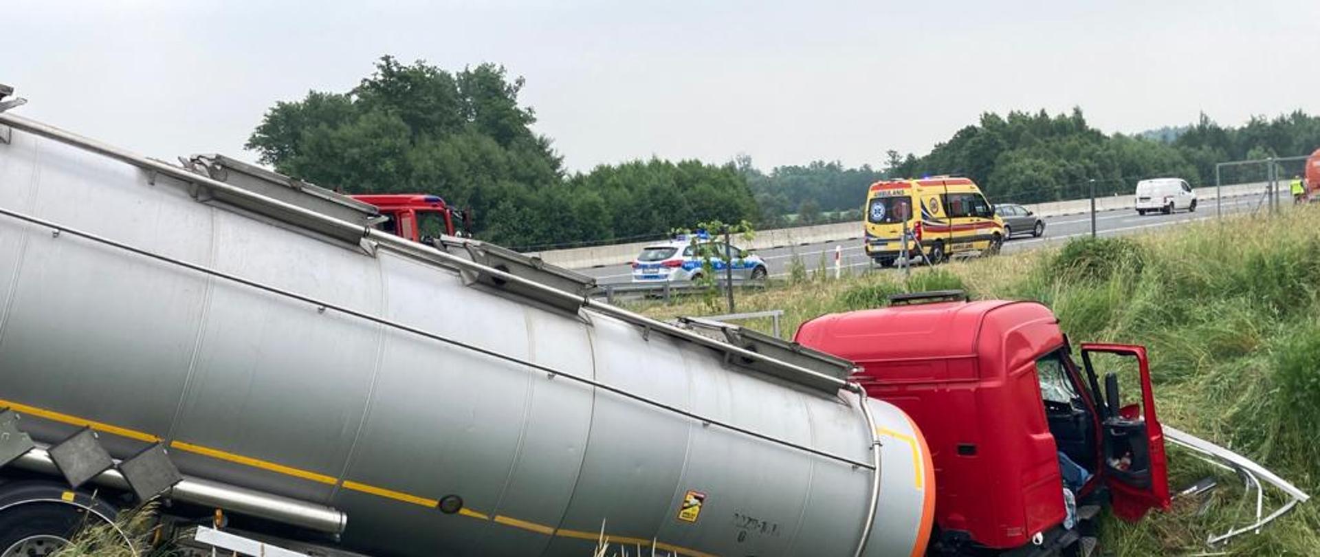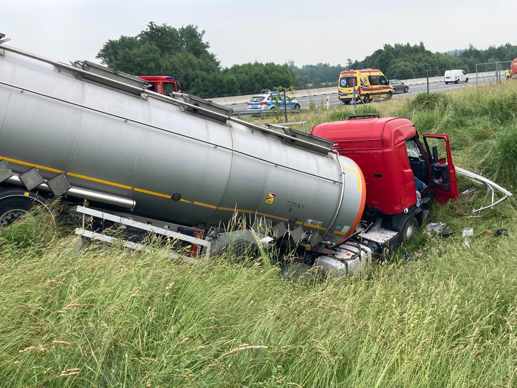 Wypadek z udziałem autocysterny na autostradzie A4