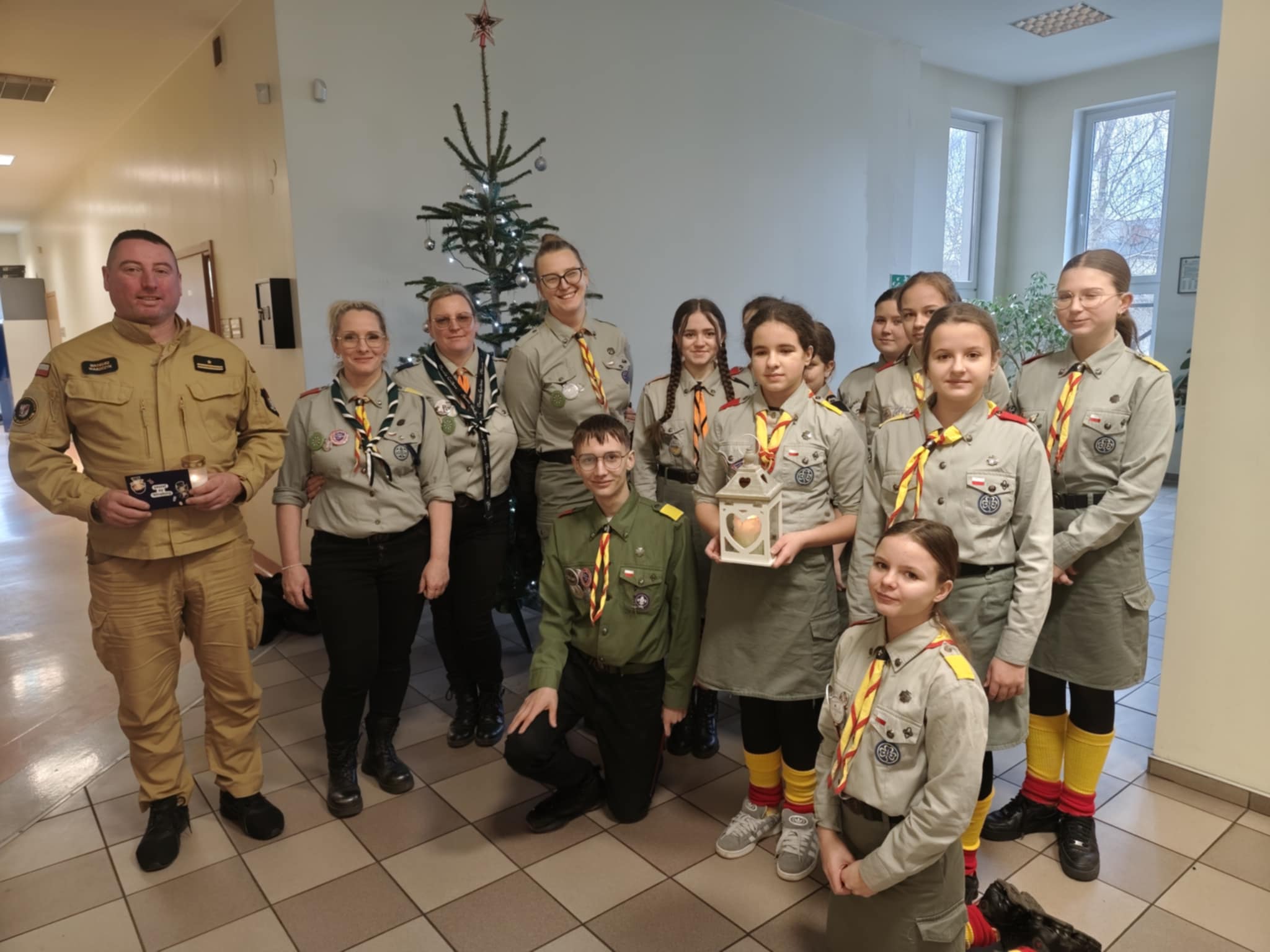 22 grudnia 2025 r. harcerze wręczyli Zastępcy Komendanta Państwowego Państwowej Straży Pożarnej w Drawsku Pom. Panu mł. bryg. Mateuszowi Waszczykowi „ Betlejemskie Światło Pokoju” wraz z życzeniami świątecznymi.