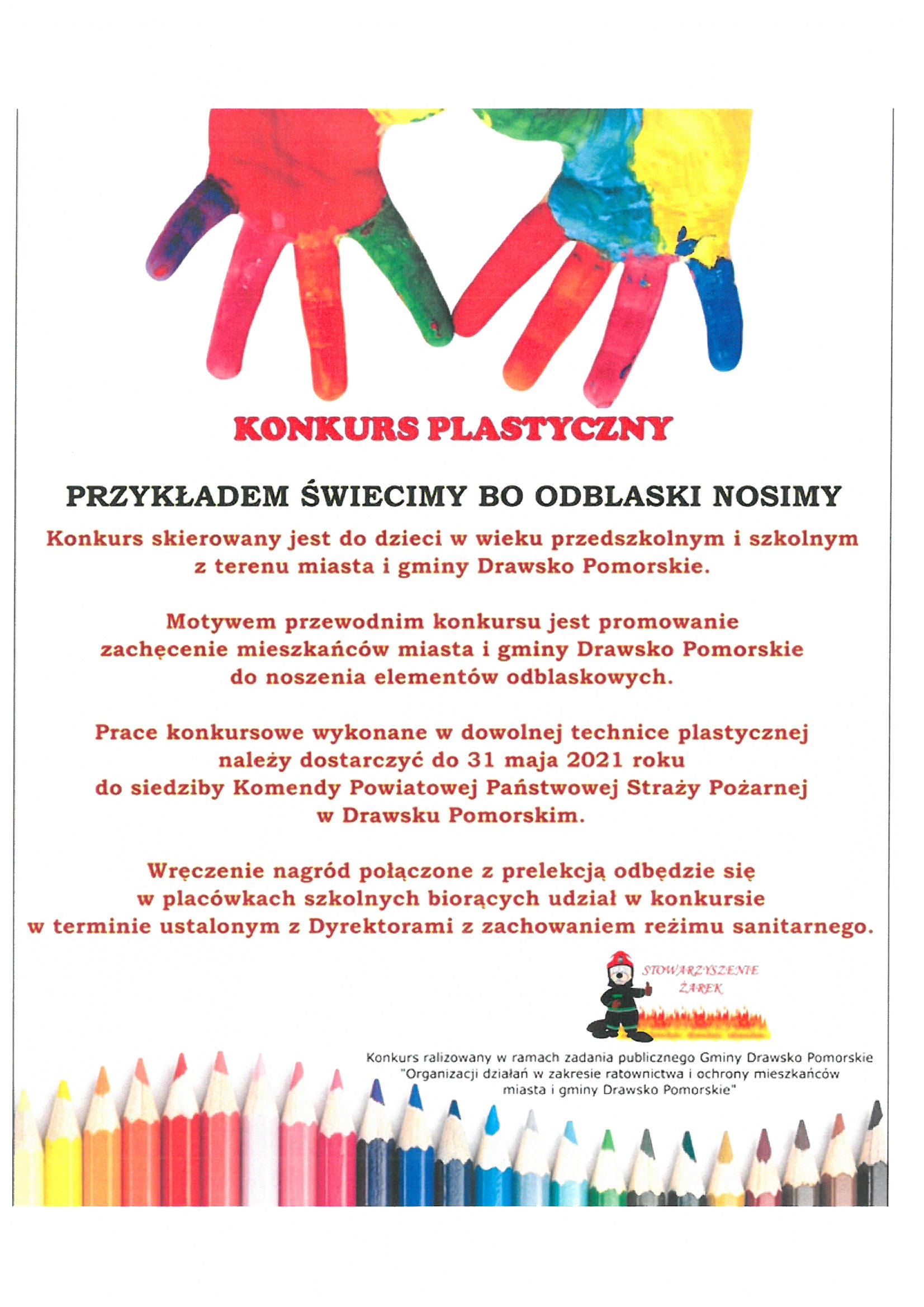W dniu 15 czerwca 2021r. funkcjonariusze Komendy Powiatowej Państwowej Straży Pożarnej w Drawsku Pomorskim wręczyli nagrody dzieciom, które wzięły udział w konkursie plastycznym pt. „Przykładem świecimy bo odblaski nosimy” zorganizowanym przez Stowarzyszenie „Żarek” oraz Komendę Powiatową Państwowej Straży Pożarnej w Drawsku Pomorskim.