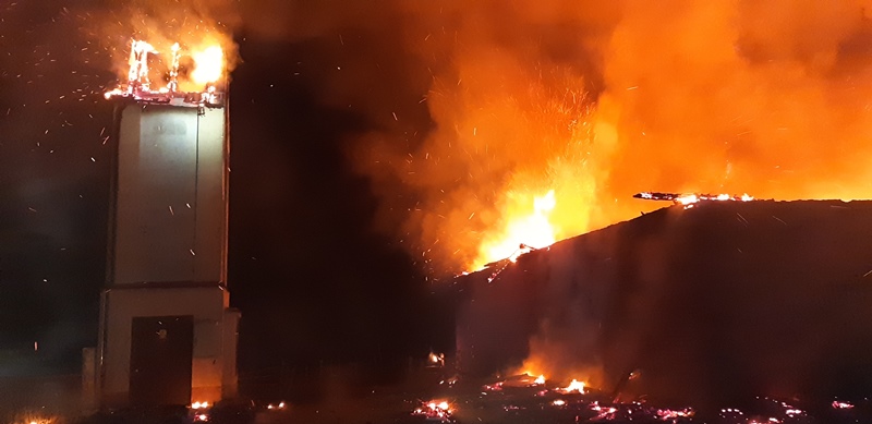 Po przybyciu na miejsce zdarzenia stwierdzono, że pali się budynek gospodarczy wypełniony częściowo słomą oraz budynek trafostacji.