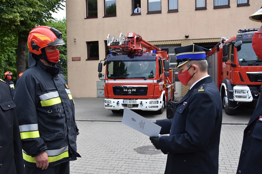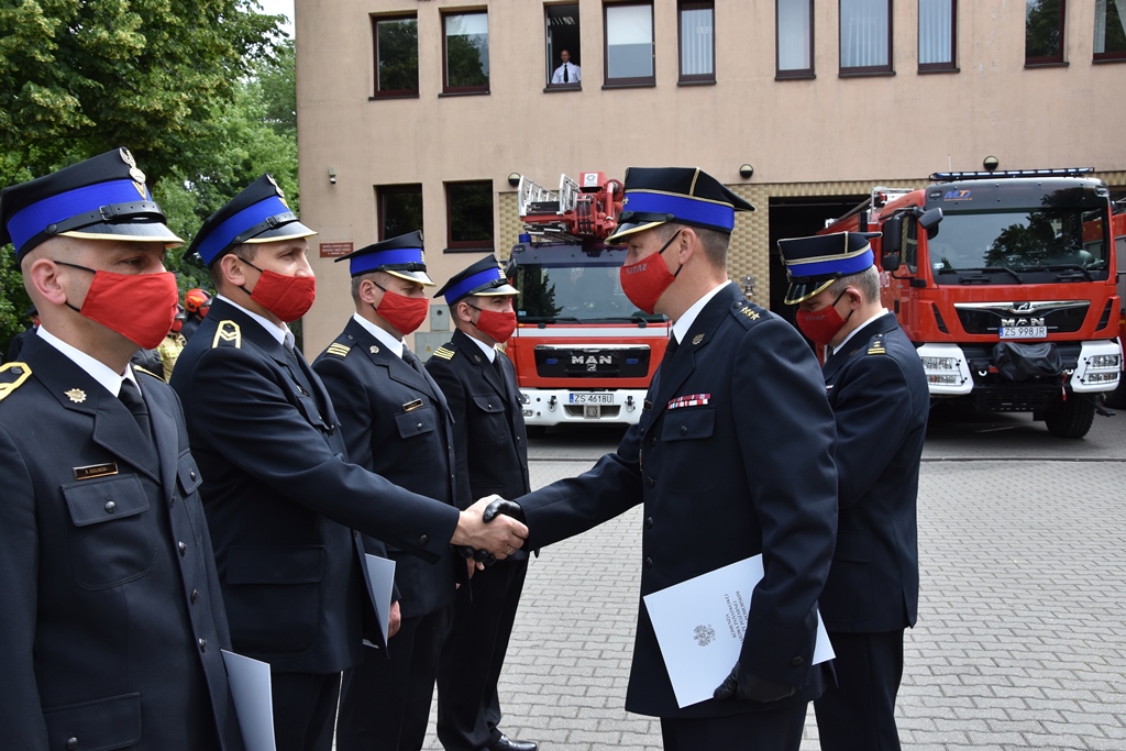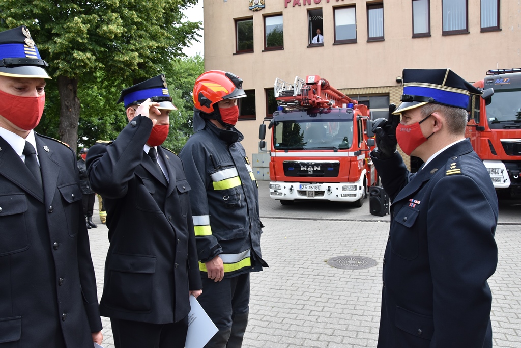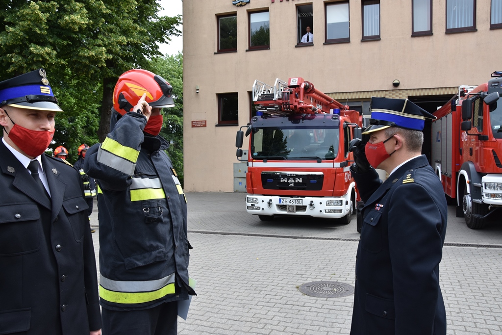 W dniu 1 lipca 2020 roku w siedzibie Komendy Powiatowej Państwowej Straży Pożarnej w Drawsku Pomorskim odbyła się uroczysta zbiórka z okazji ślubowania funkcjonariuszki rozpoczynającej służbę w PSP str. Anety Kiśleńczuk oraz wręczenia aktów mianowania na wyższe stanowiska służbowe.