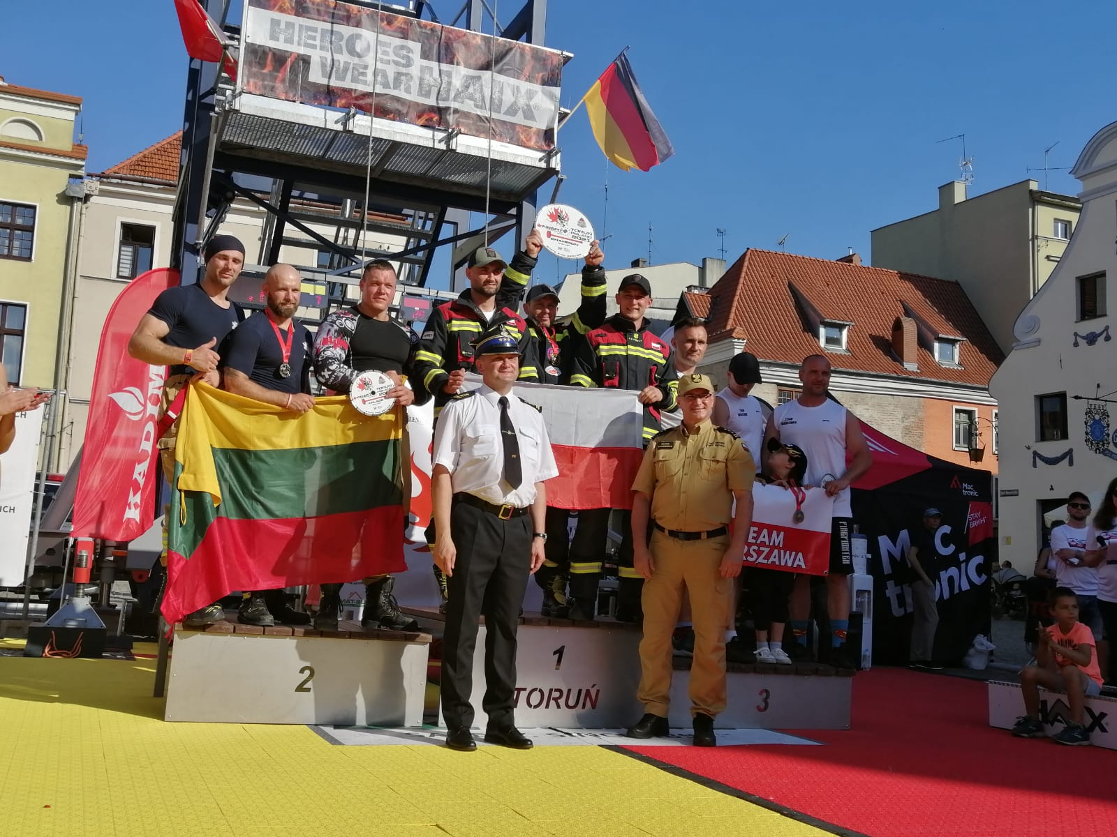 W miniony weekend w Toruniu odbyły się również Międzynarodowe Mistrzostwa Polski FIREFIT. Do rywalizacji w trzech konkurencjach przystąpiło ok. 120 zawodników z wielu krajów. Młodszy kapitan Mateusz Wesołowski reprezentując KP PSP w Drawsku Pomorskim wraz z drużyną zwyciężył w kategorii TEAM oraz wywalczył srebrny medal w kategorii sztafeta, ulegając jedynie w finale bardzo mocnej drużynie z Litwy.