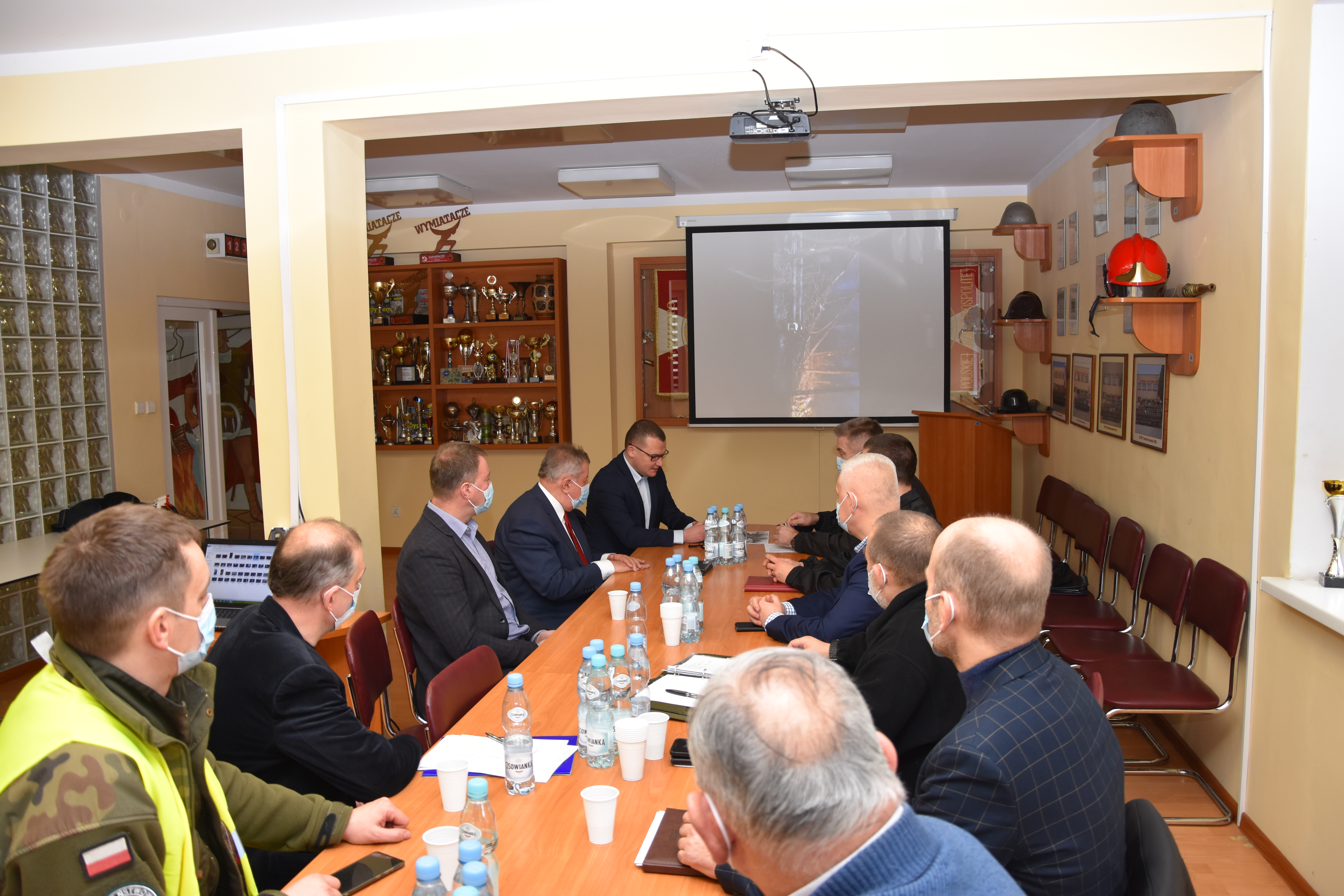w spotkaniu Powiatowego Zespołu Zarządzania Kryzysowego odbywającego się na terenie Komendy Powiatowej Państwowej Straży Pożarnej w Drawsku Pomorskim w związku z usuwaniem skutków anomalii pogodowych, która przetoczyła się przez powiat drawski w nocy z 29 na 30 stycznia br.