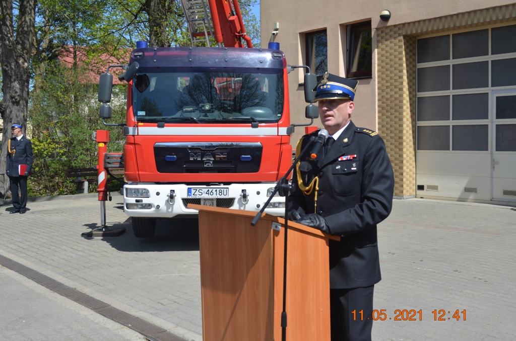 Zachodniopomorski Komendant Wojewódzki Państwowej Straży Pożarnej st. bryg. Jarosław Tomczyk w trakcie swojego przemówienia podziękował za ofiarną służbę strażaków Państwowej Straży Pożarnej, Ochotniczych Straży Pożarnych i Wojskowych Straży Pożarnych. Zwrócił również uwagę wysoki poziom realizowanych przez jednostki ochrony przeciwpożarowej standardowych działaniach, ale również w zakresie przeciwdziałania koronawirusa SARS-COV-2. Odniósł się również do wzorowej współpracy z władzami samorządowymi, Lasami Państwowymi, Instytucjami oraz dowództwem Centrum Szkolenia Wojsk Lądowych, na którym rokrocznie ćwiczy kilkadziesiąt tysięcy żołnierzy wojsk NATO.