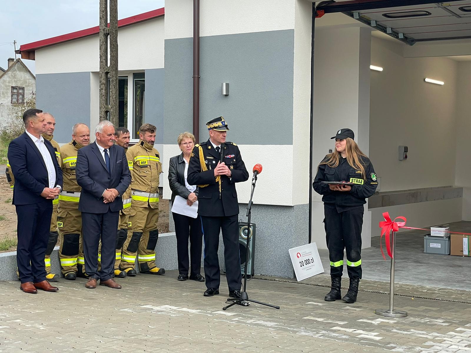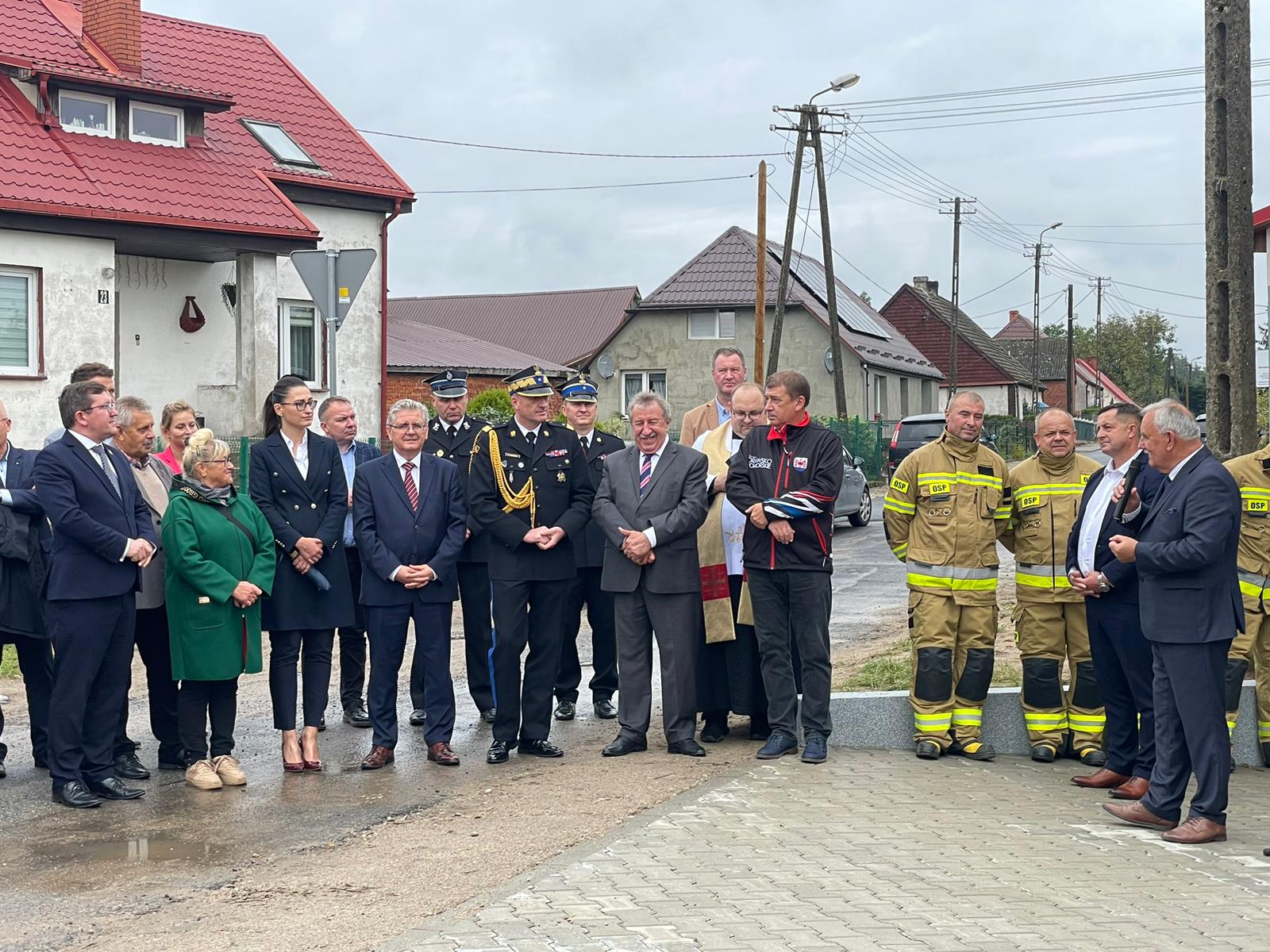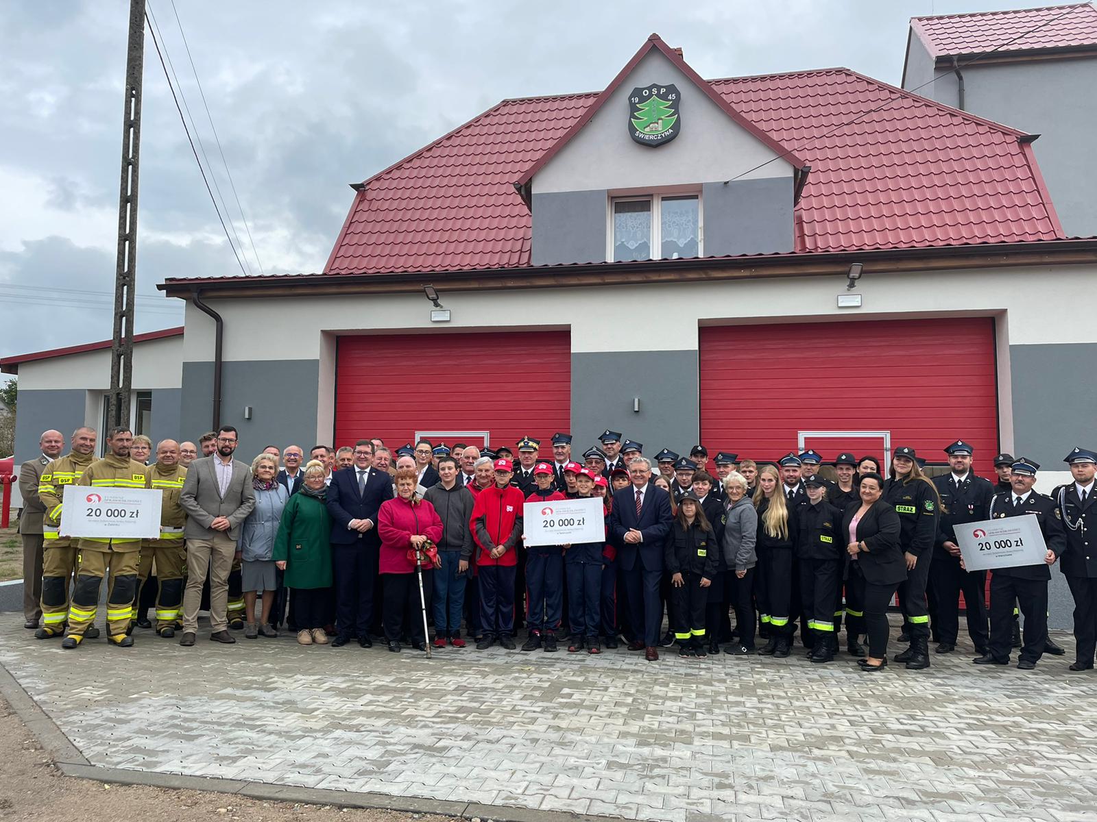 Uroczysta zbiórka z okazji otwarcia nowego pomieszczenia garażowego w jednostce OSP w Wierzchowie a także otwarcia zmodernizowanej i rozbudowanej siedziby OSP w Świerczynie