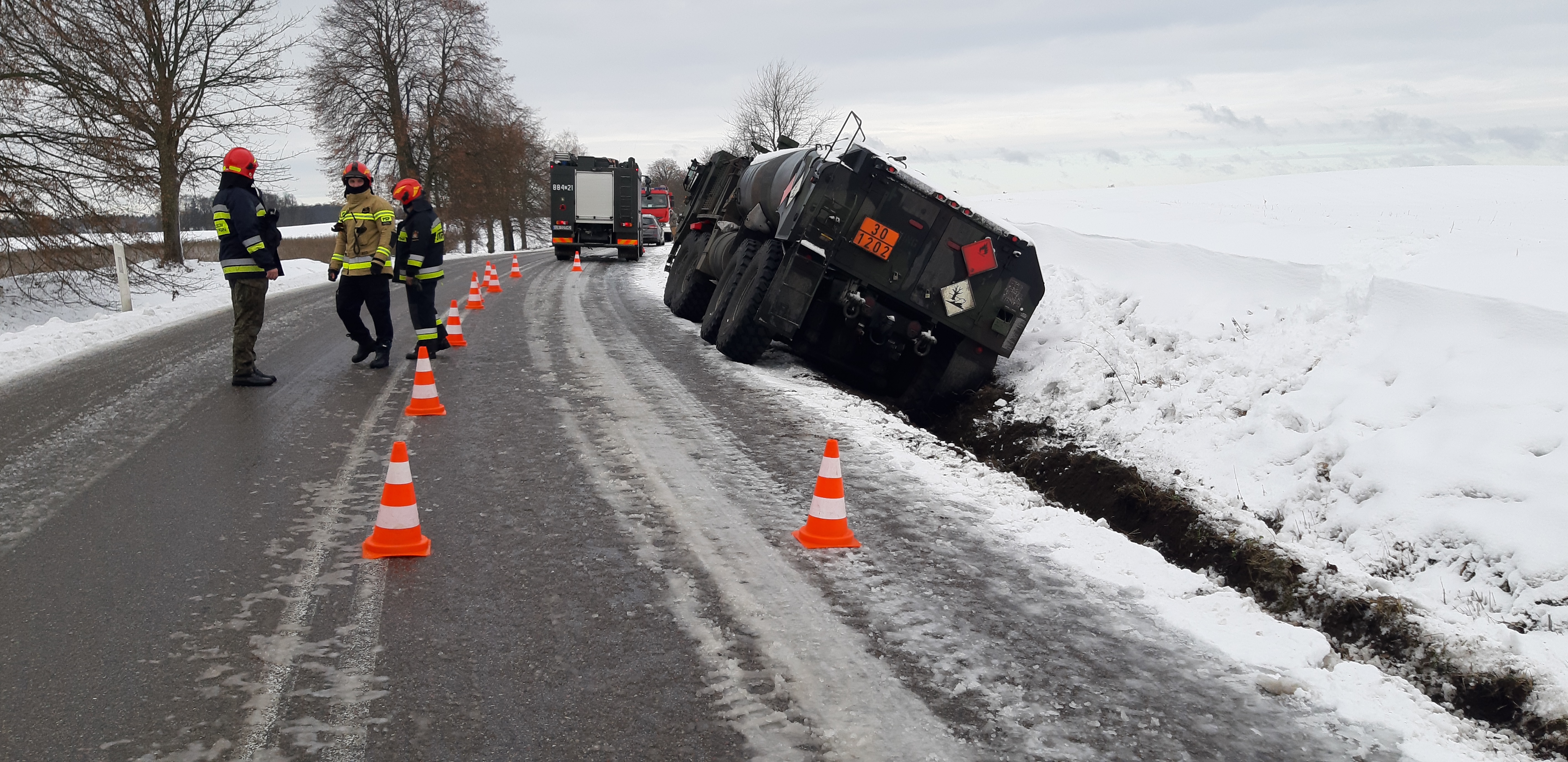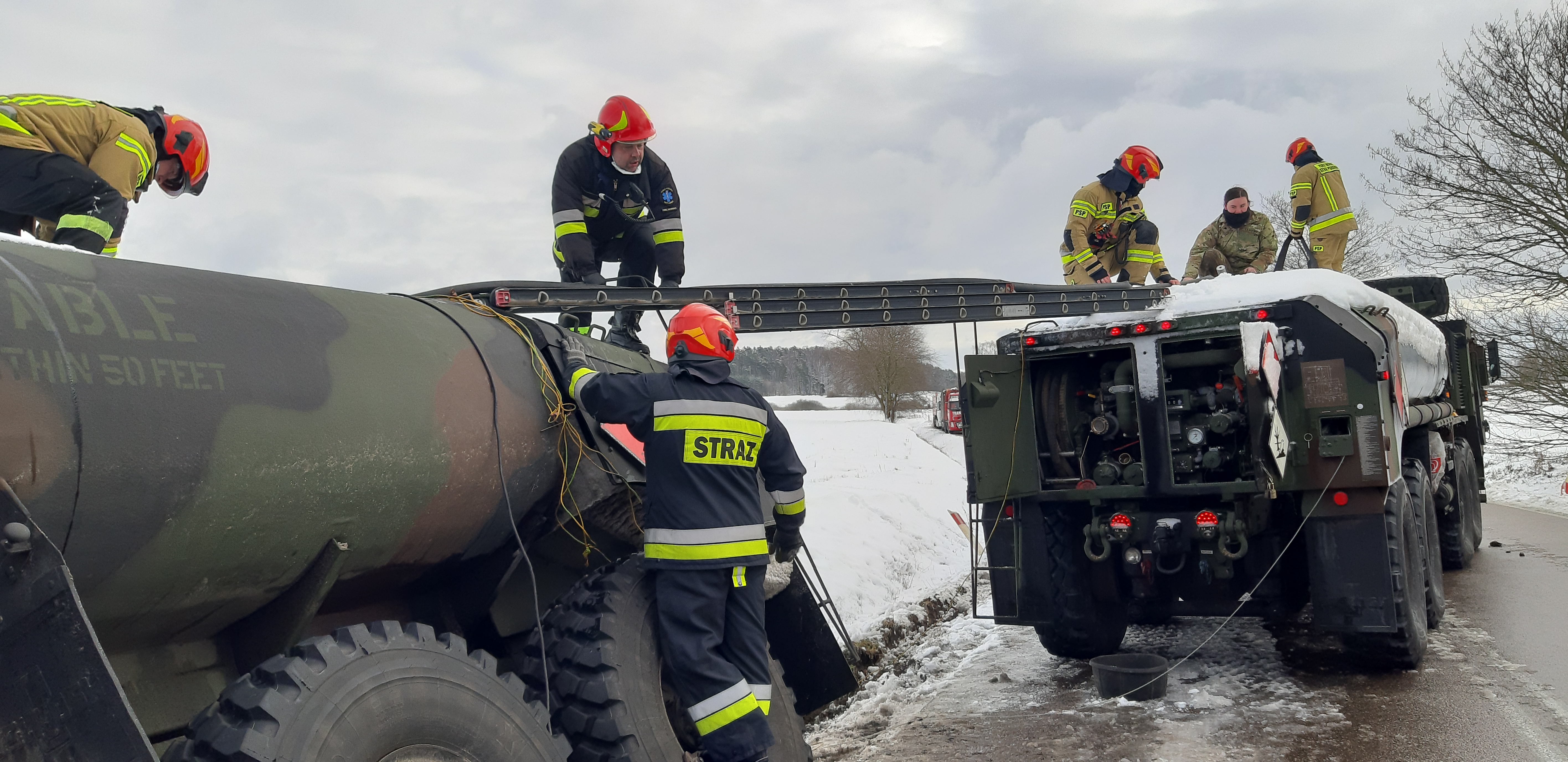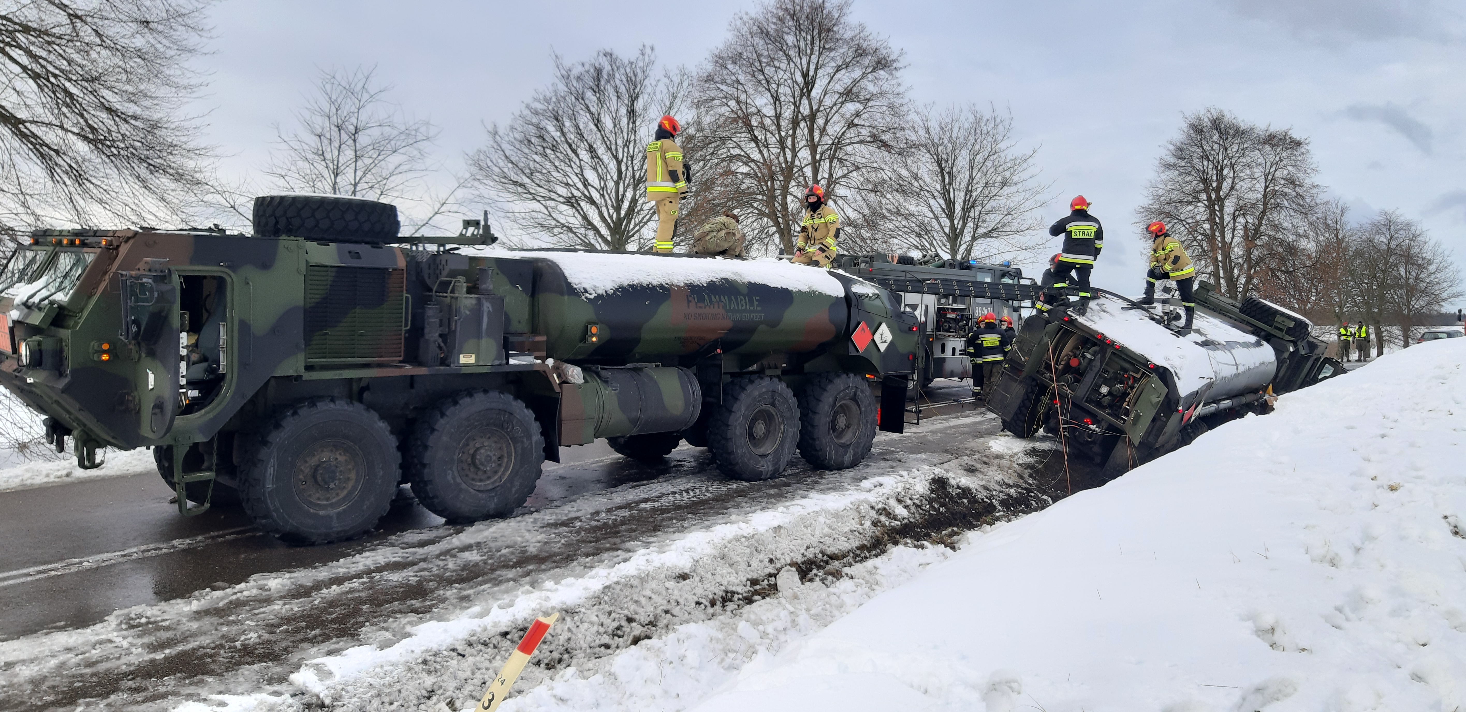 W dniu 4 lutego 2021 roku o godzinie 10.43 do Stanowiska Kierowania Komendanta Powiatowego Państwowej Straży Pożarnej w Drawsku Pomorskim wpłynęło zgłoszenie o wypadku komunikacyjnym z udziałem cysterny wojsk armii Stanów Zjednoczonych Ameryki na drodze wojewódzkiej 175 w okolicach miejscowości Pomierzyn gm. Kalisz Pomorski.