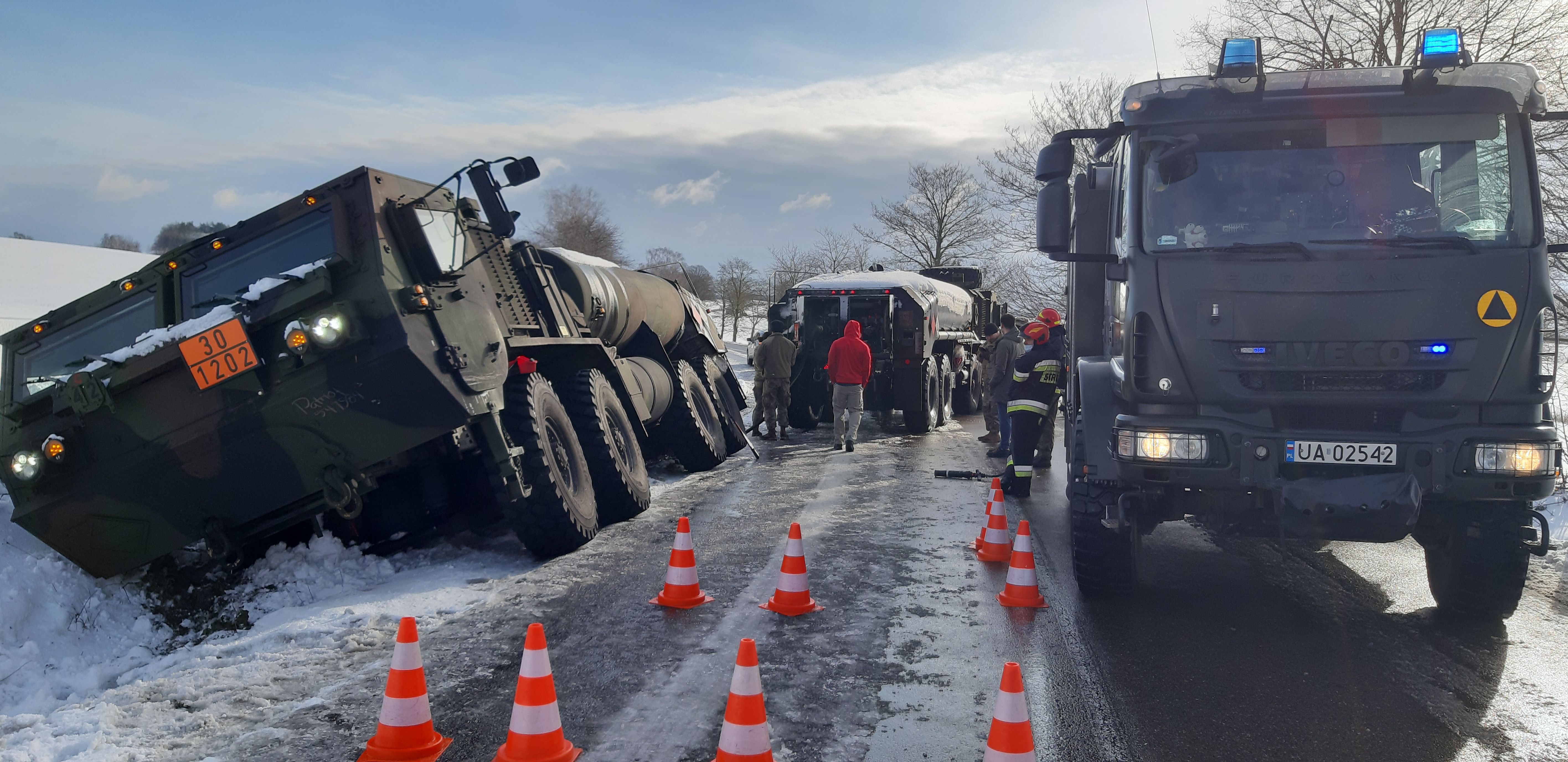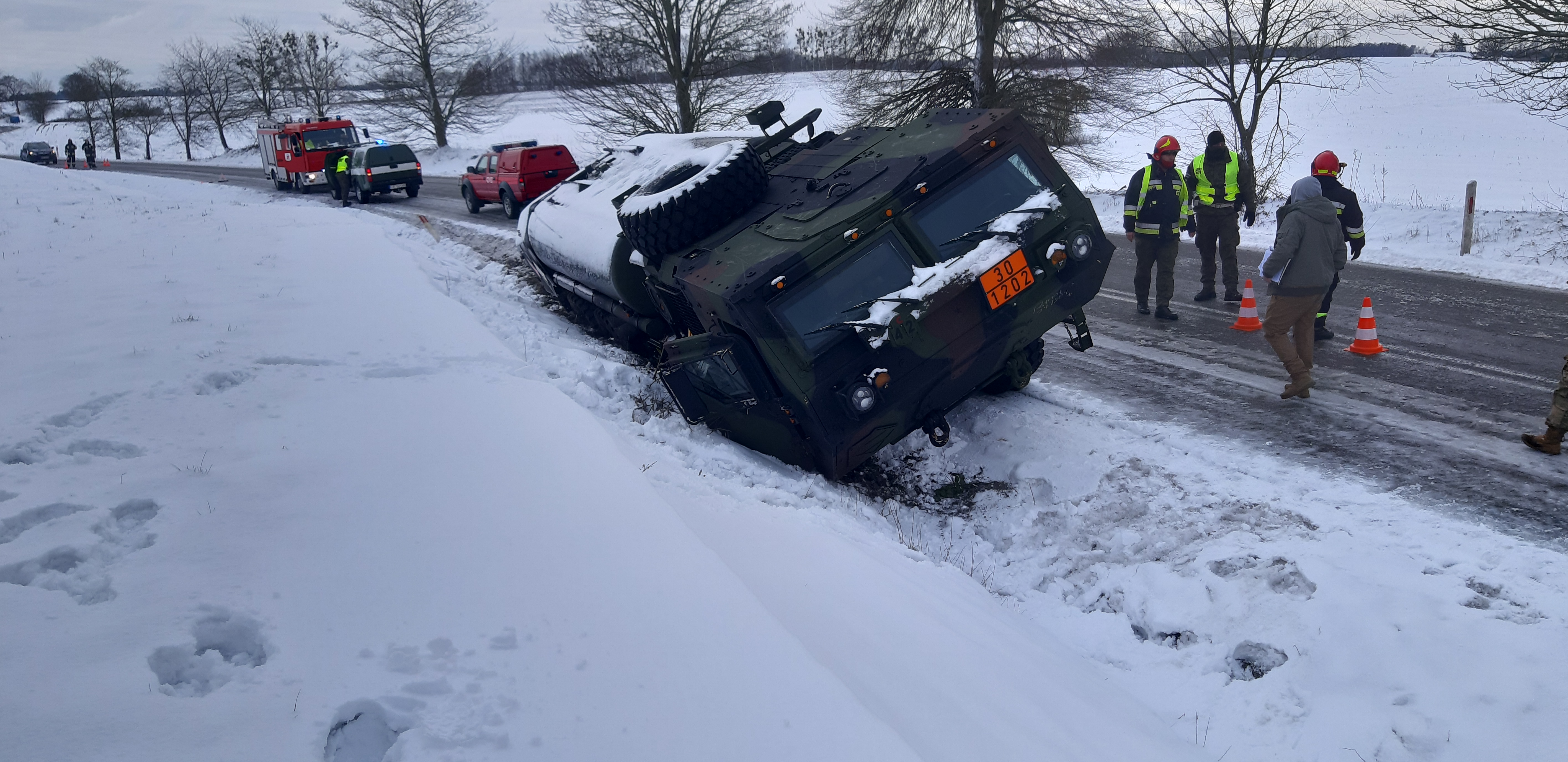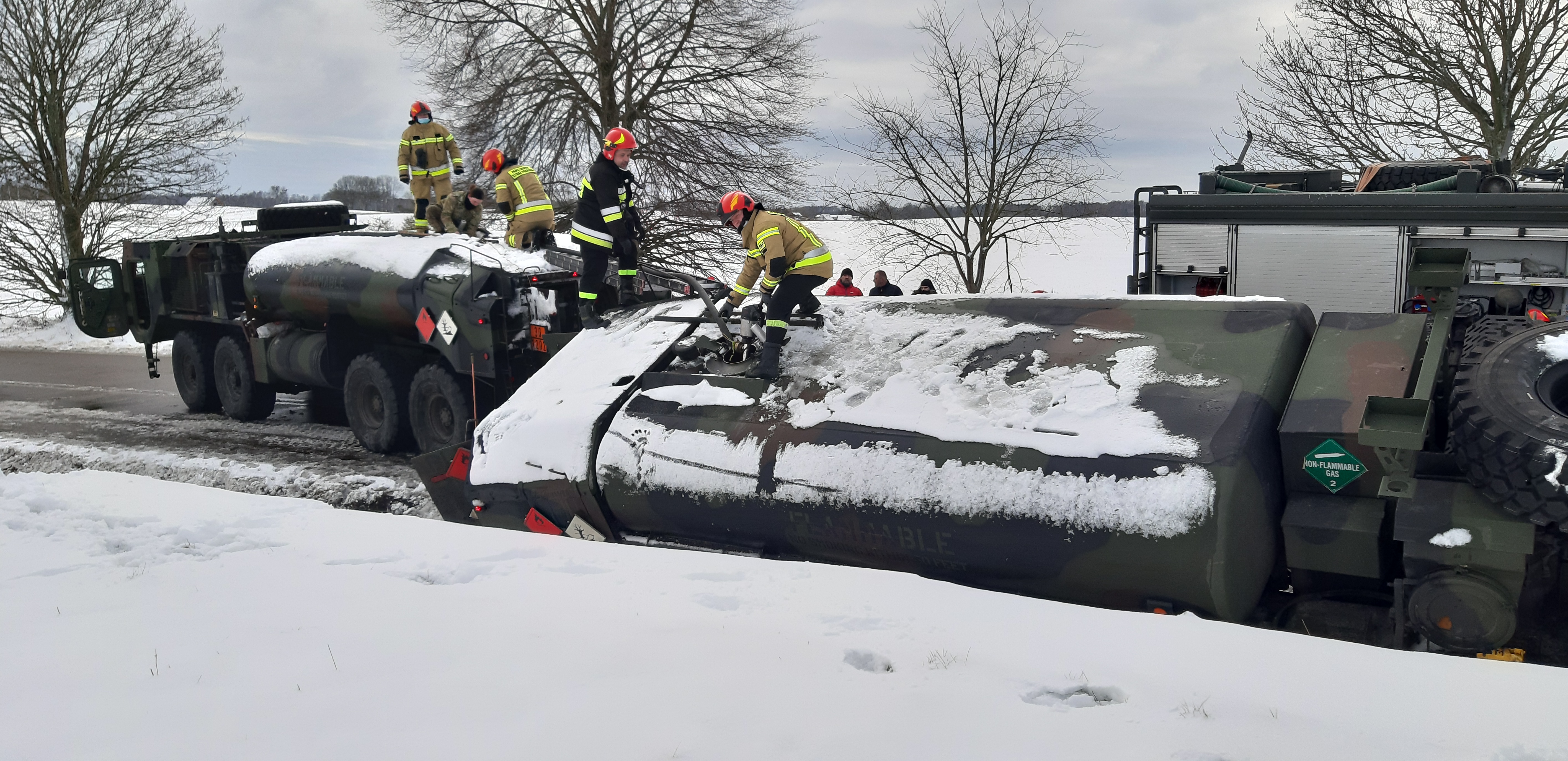 W dniu 4 lutego 2021 roku o godzinie 10.43 do Stanowiska Kierowania Komendanta Powiatowego Państwowej Straży Pożarnej w Drawsku Pomorskim wpłynęło zgłoszenie o wypadku komunikacyjnym z udziałem cysterny wojsk armii Stanów Zjednoczonych Ameryki na drodze wojewódzkiej 175 w okolicach miejscowości Pomierzyn gm. Kalisz Pomorski.
