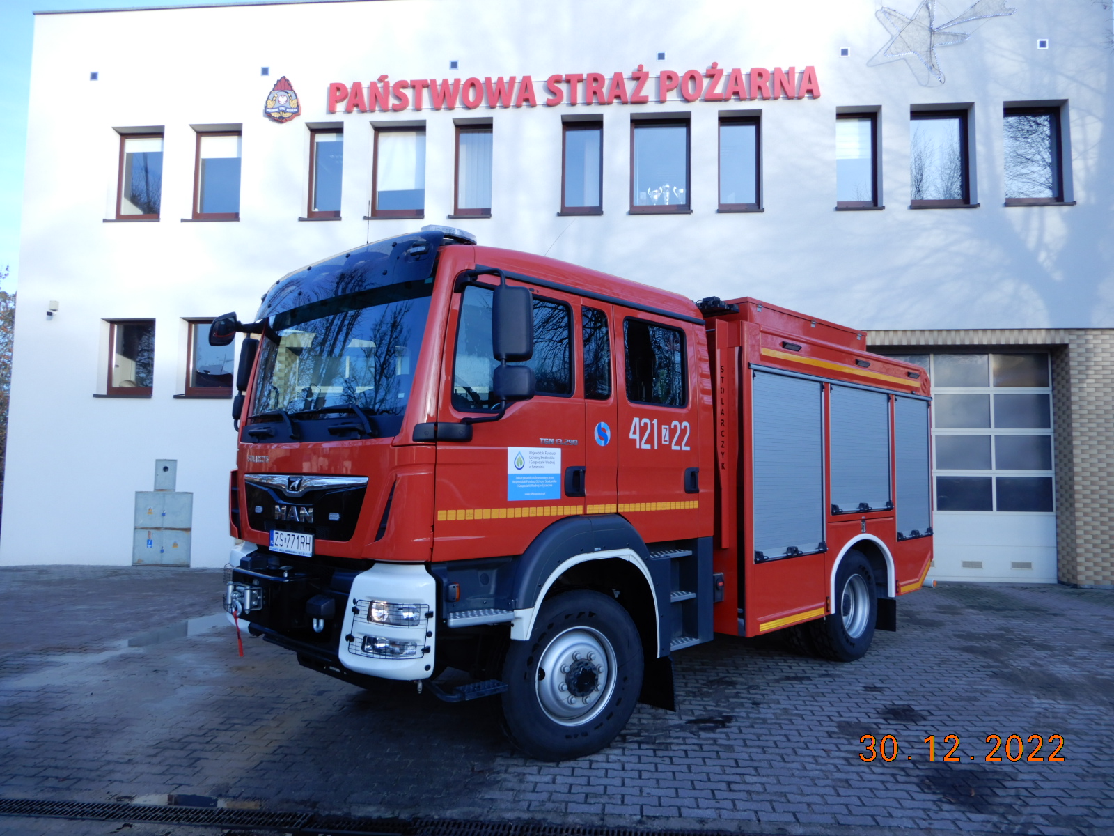 KP PSP w Drawsku Pom. pozyskała w październiku 2022 r. nowy pojazd pożarniczy typ GBA 3,5/16 na podwoziu MAN 4x4, zabudowa wykonana przez firmę „STOLARCZYK”